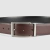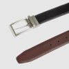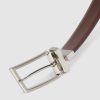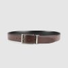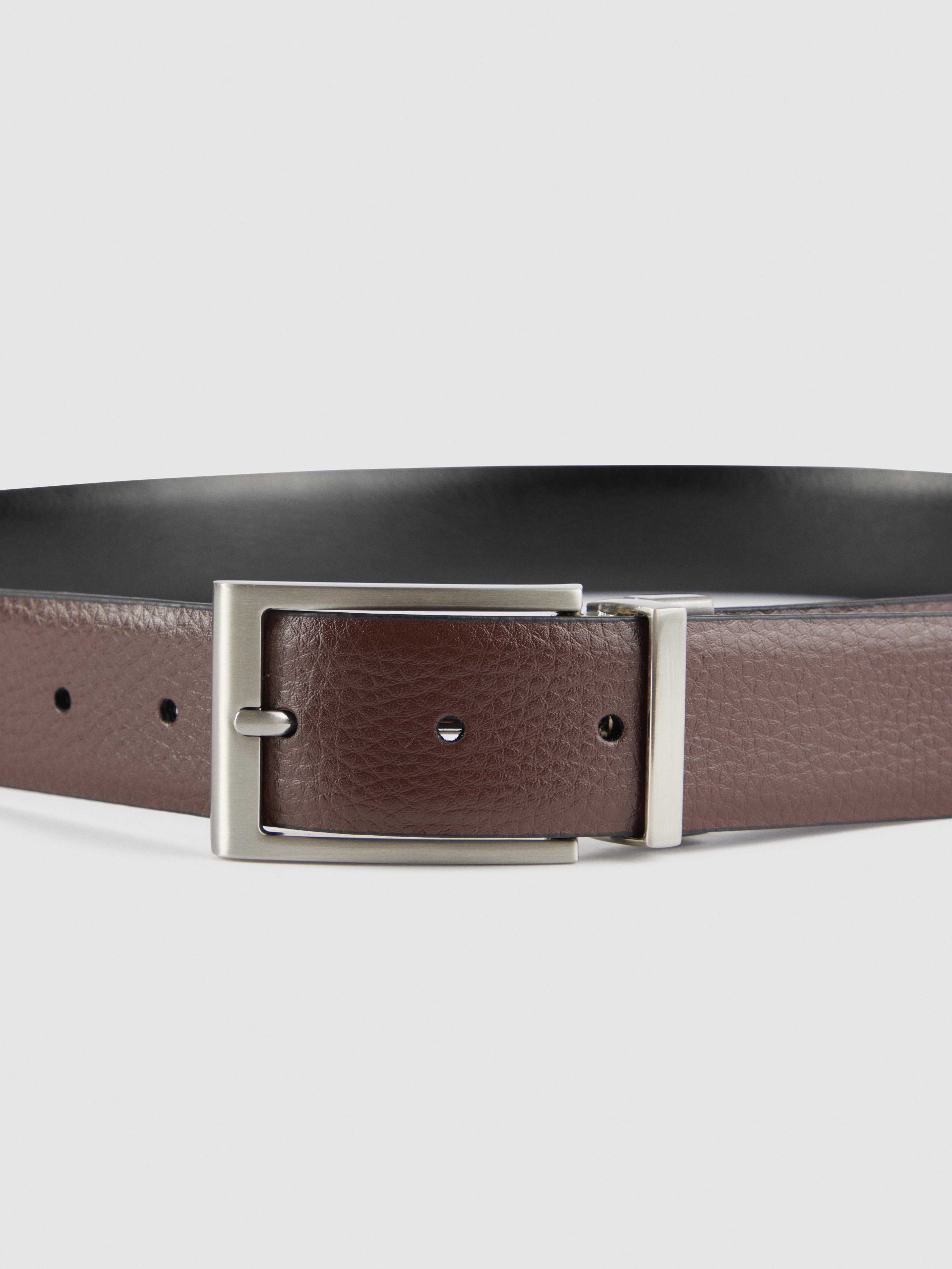Cinturón rugoso de diseño reversible en color negro por un lado y marrón por el otro. Cuenta con cierre mediante hebilla y pasador metálicos.