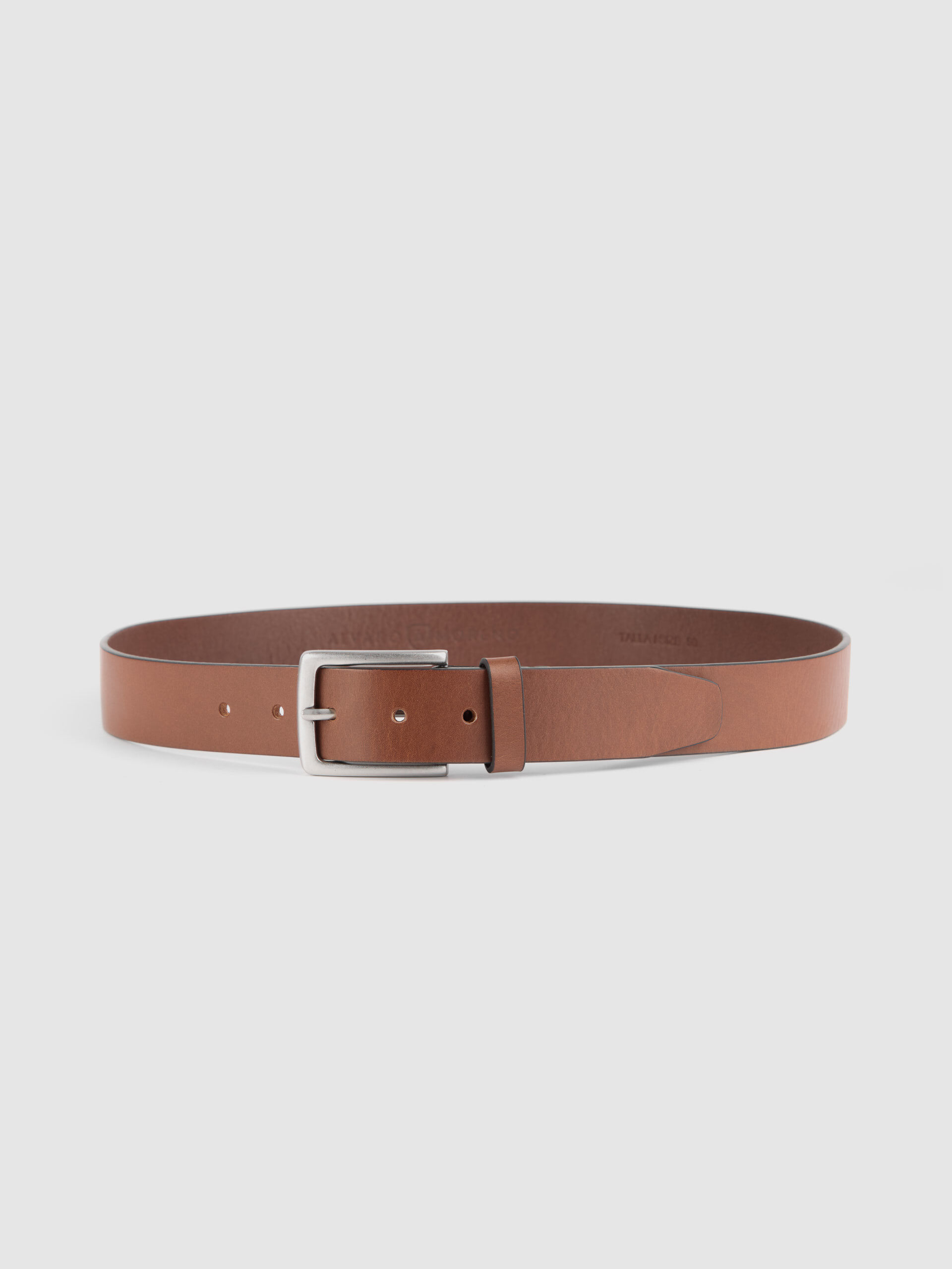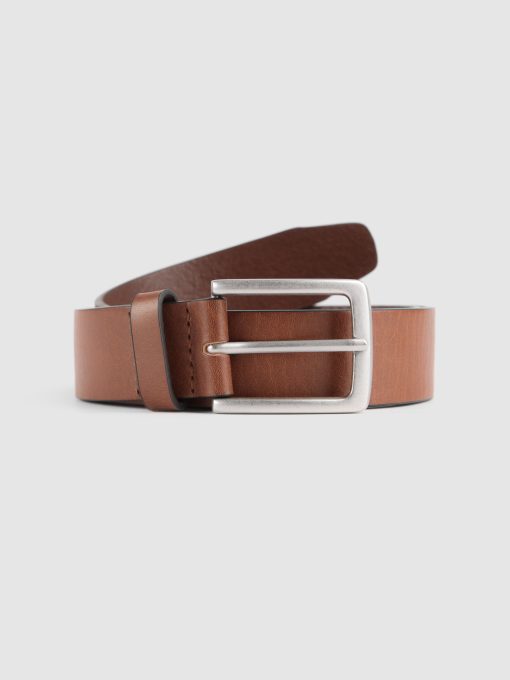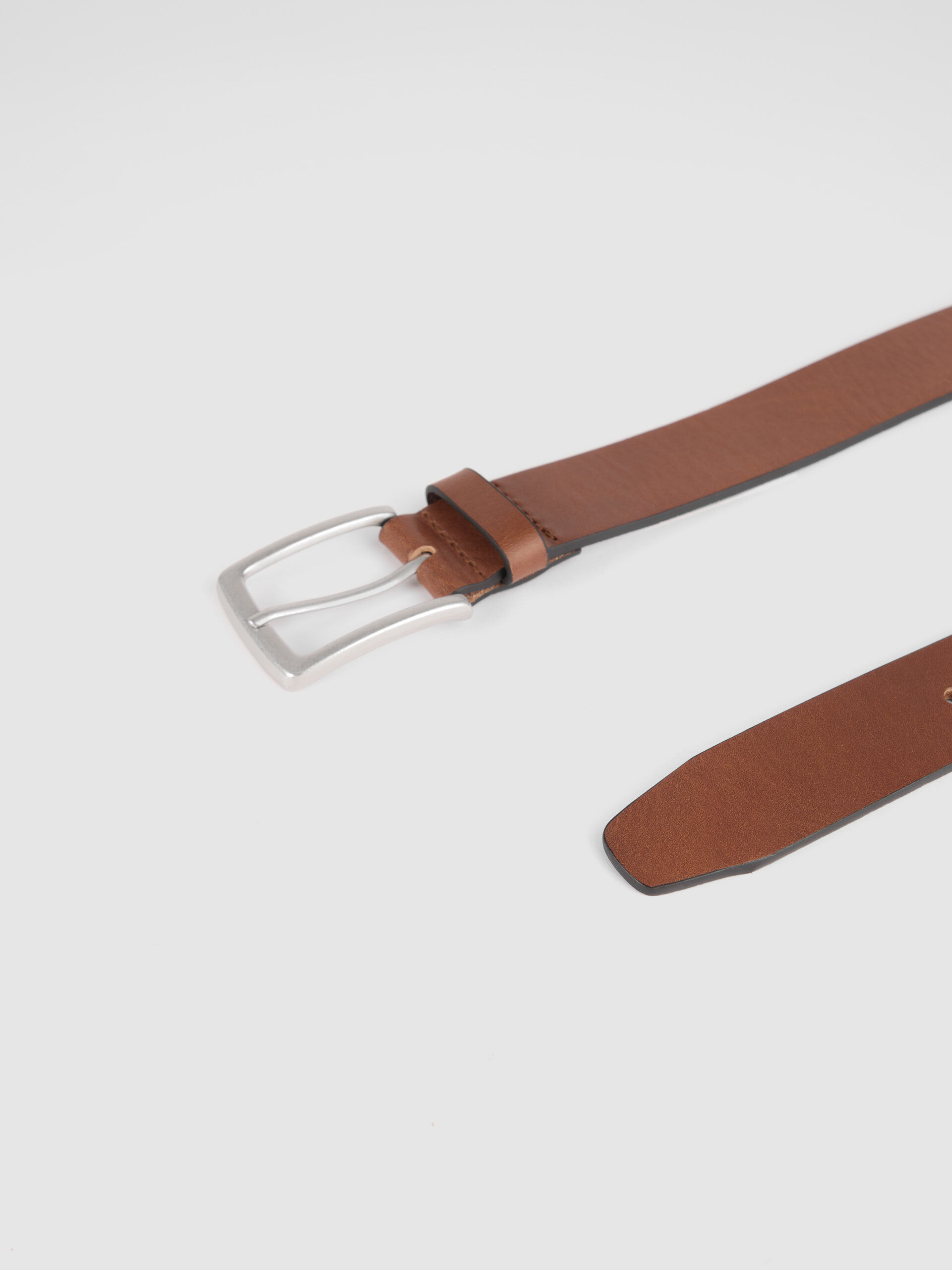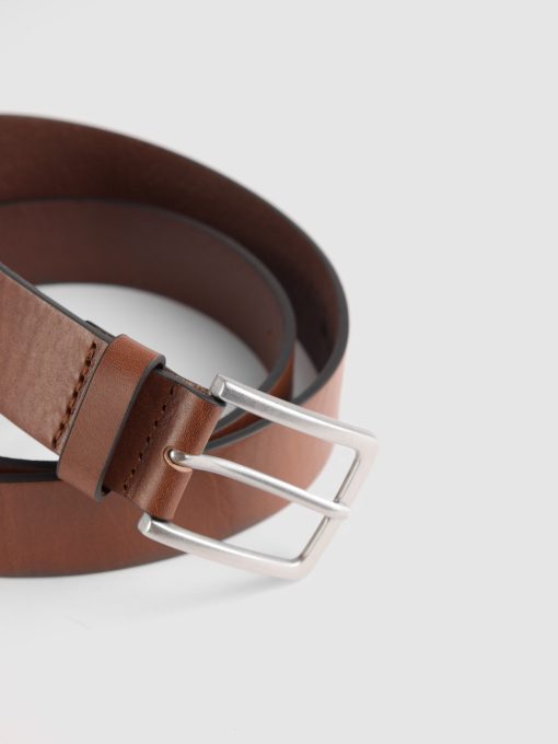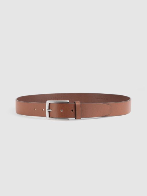 Cinturón listo estilo casual confeccionado en cuero con cierre mediante hebilla metálica a contraste y pasador al tono. Detalles y pespuntes al tono.