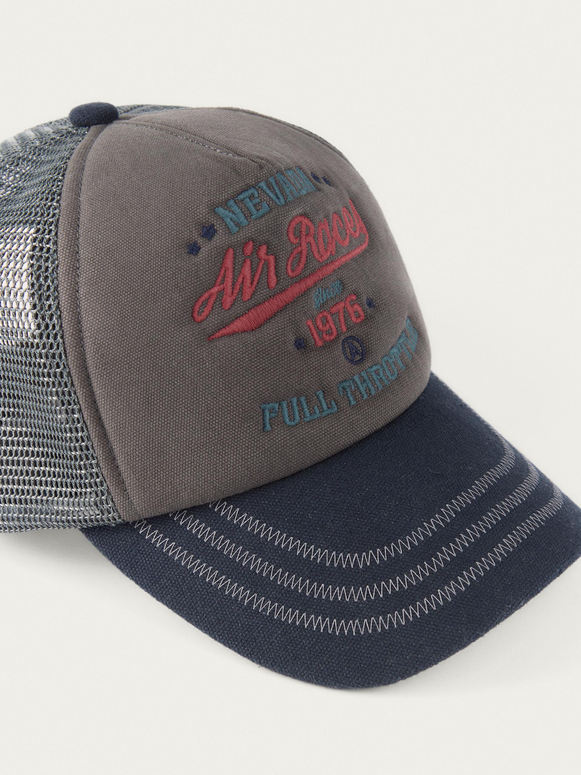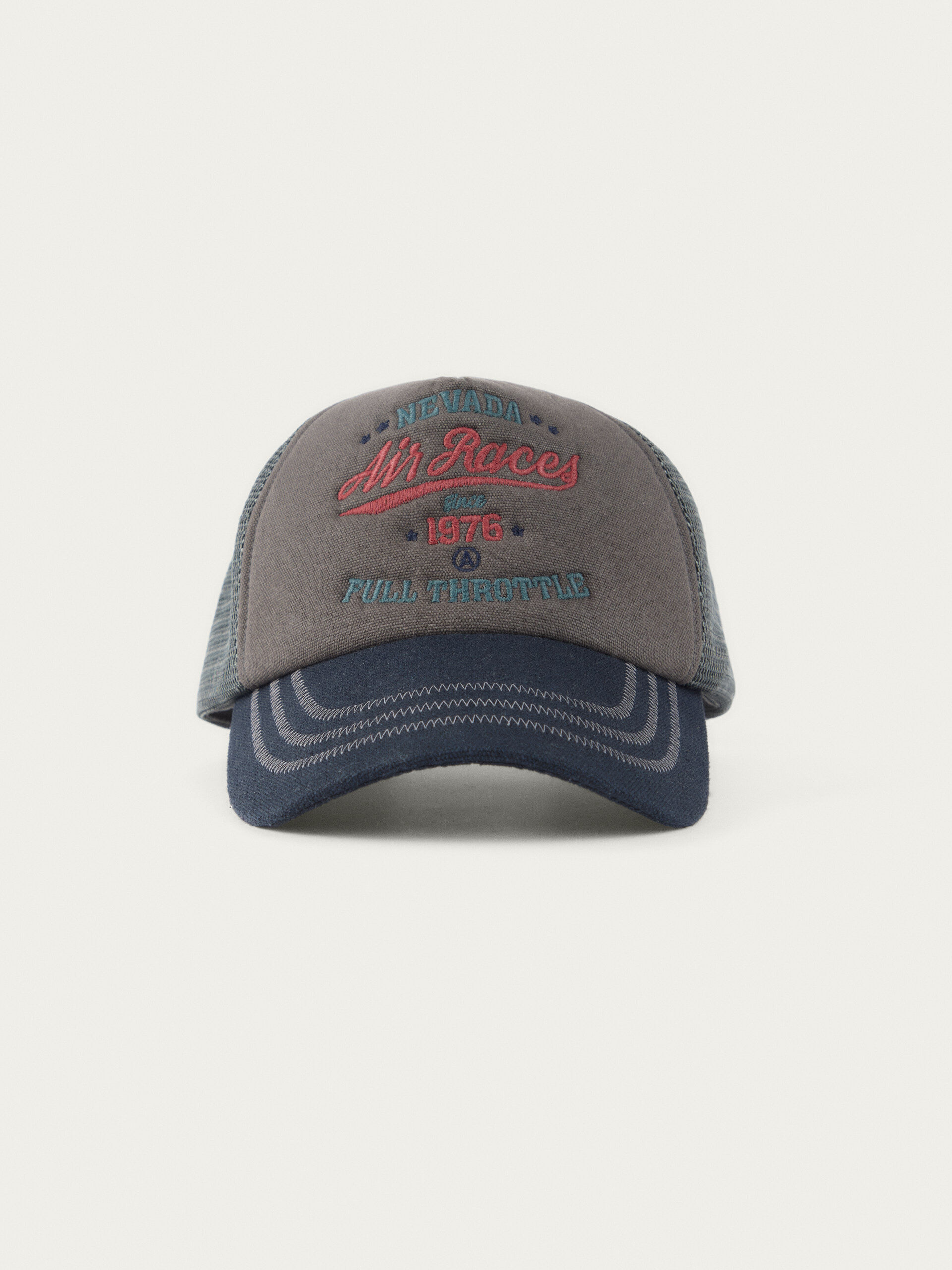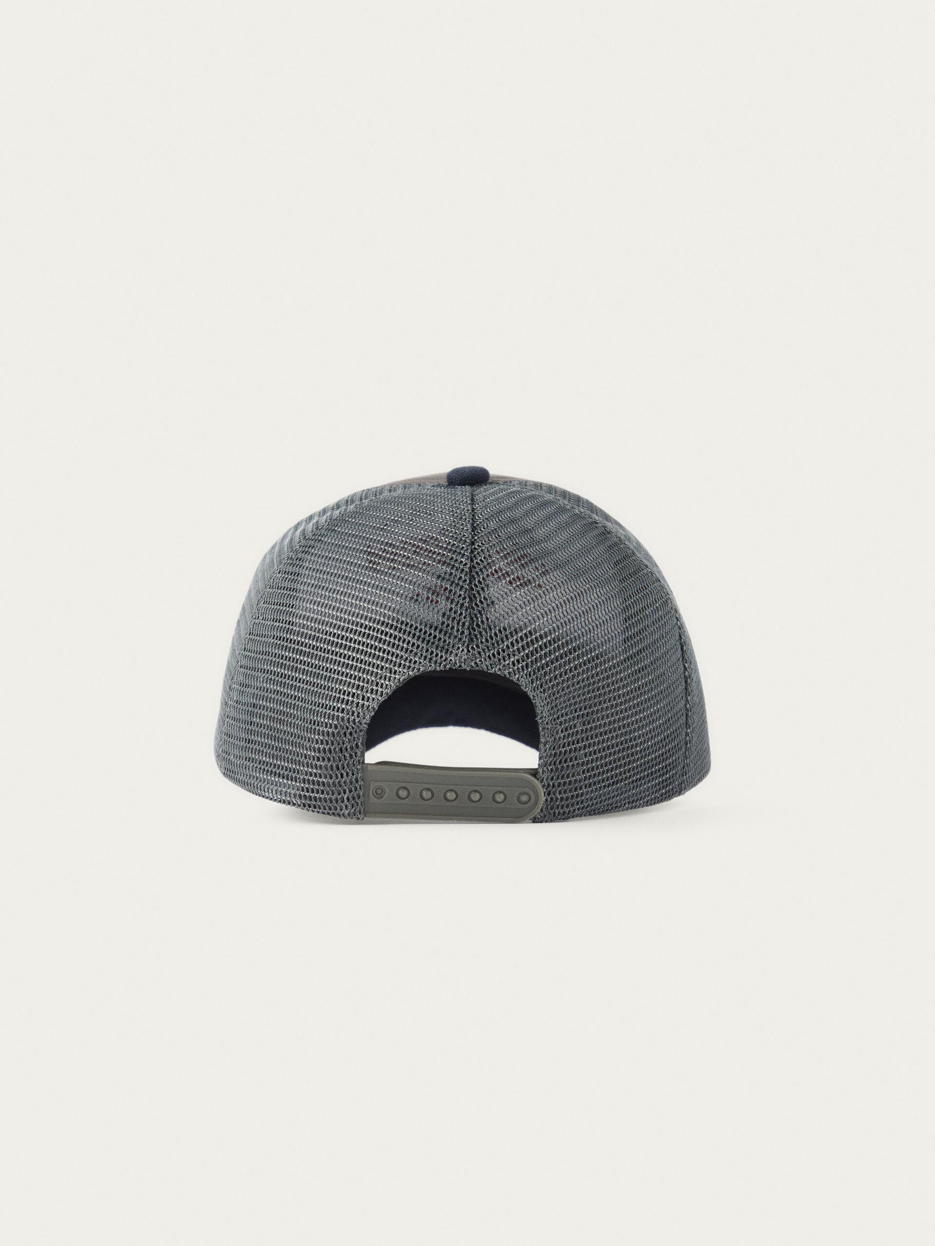 Gorra estilo trucker con parte trasera estilo rejilla. Cuenta con detalle personalizado en el frontal y ajustador en la parte trasera.