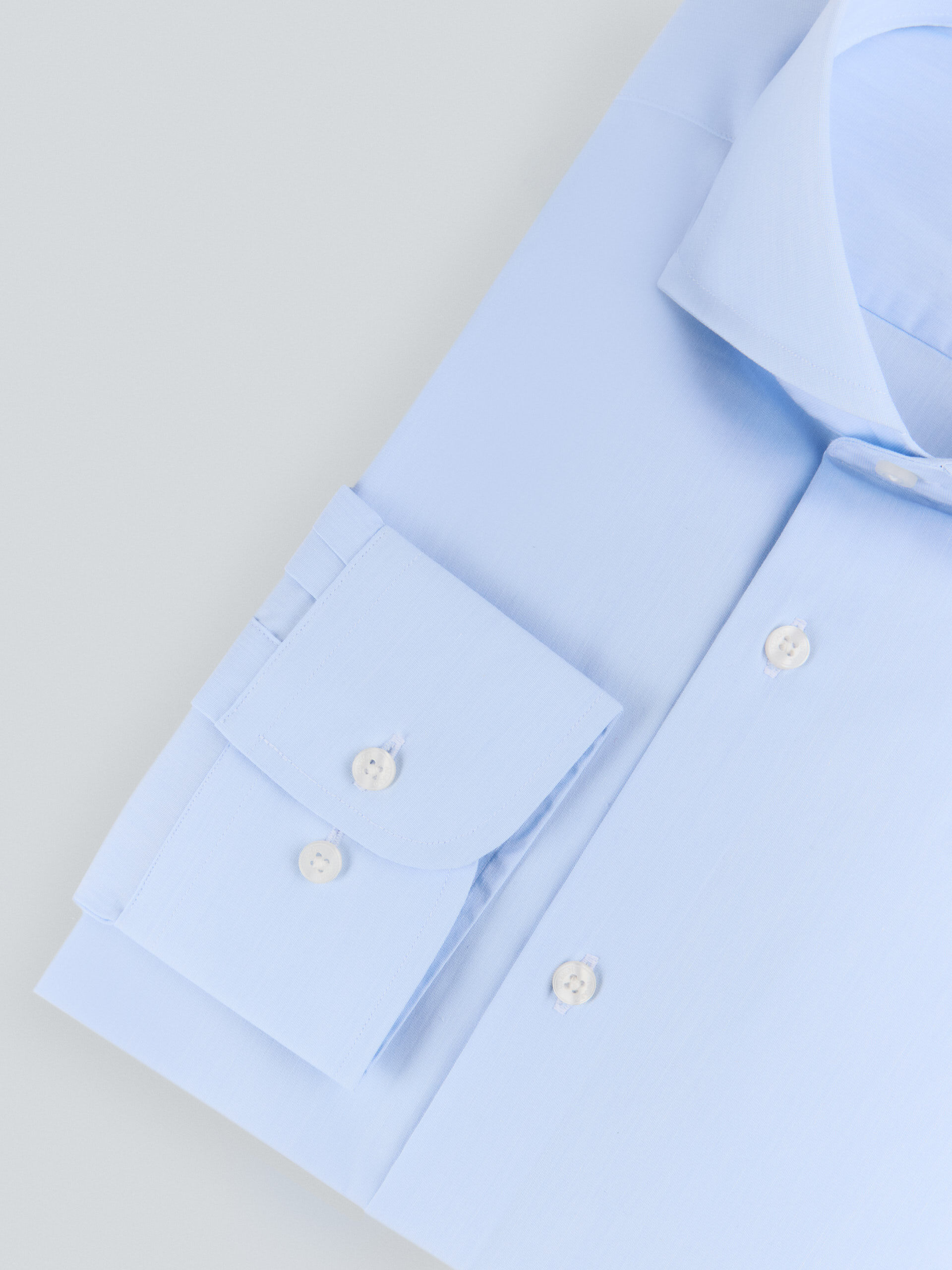 Camisa de vestir de corte slim fit. Cuenta con cuello italiano, manga larga con puños simples y logo de la marca grabado en el frontal.