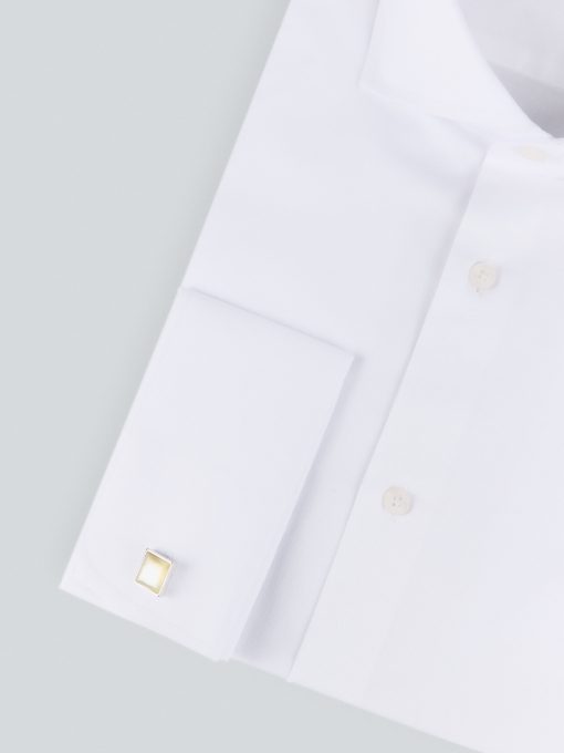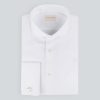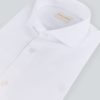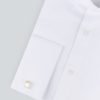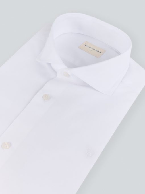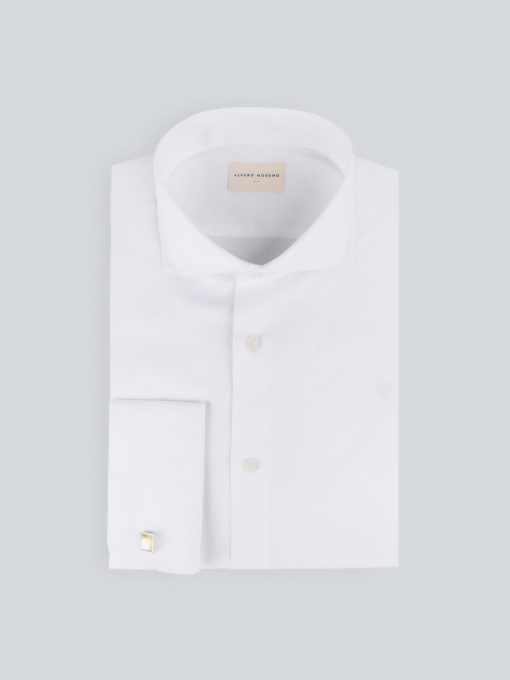 Camisa de vestir con corte slim fit que presenta diseño a rayas en posición diagonal. Cuenta con cuello italiano, manga larga con puños dobles para gemelos y logo de la marca grabado en el frontal.