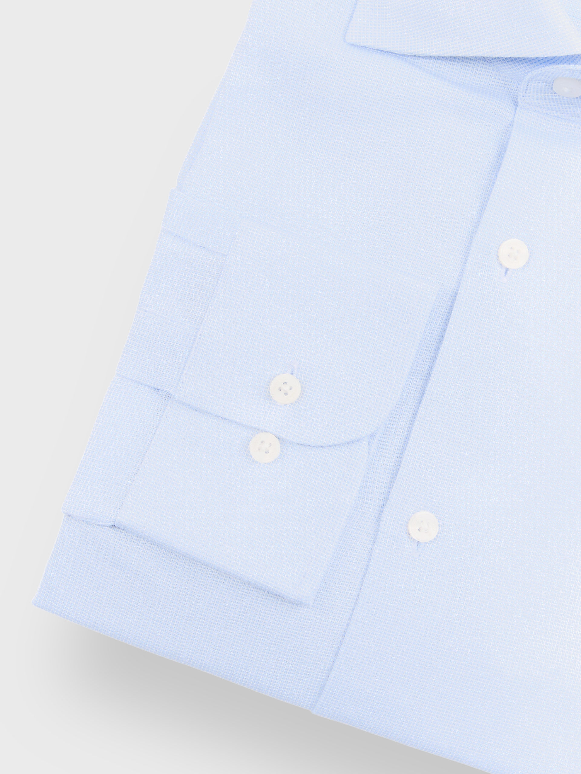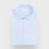 Camisa de vestir con una suave estructura en su tejido. Confeccionada en algodón con cuello italiano, puños con cierre simple y logo de la marca grabado al tono en el frontal. Corte slim fit.
