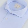 Camisa de vestir con una suave estructura de espiga en su tejido. Confeccionada en algodón con cuello italiano, puños con cierre simple y logo de la marca grabado al tono en el frontal. Corte slim fit.