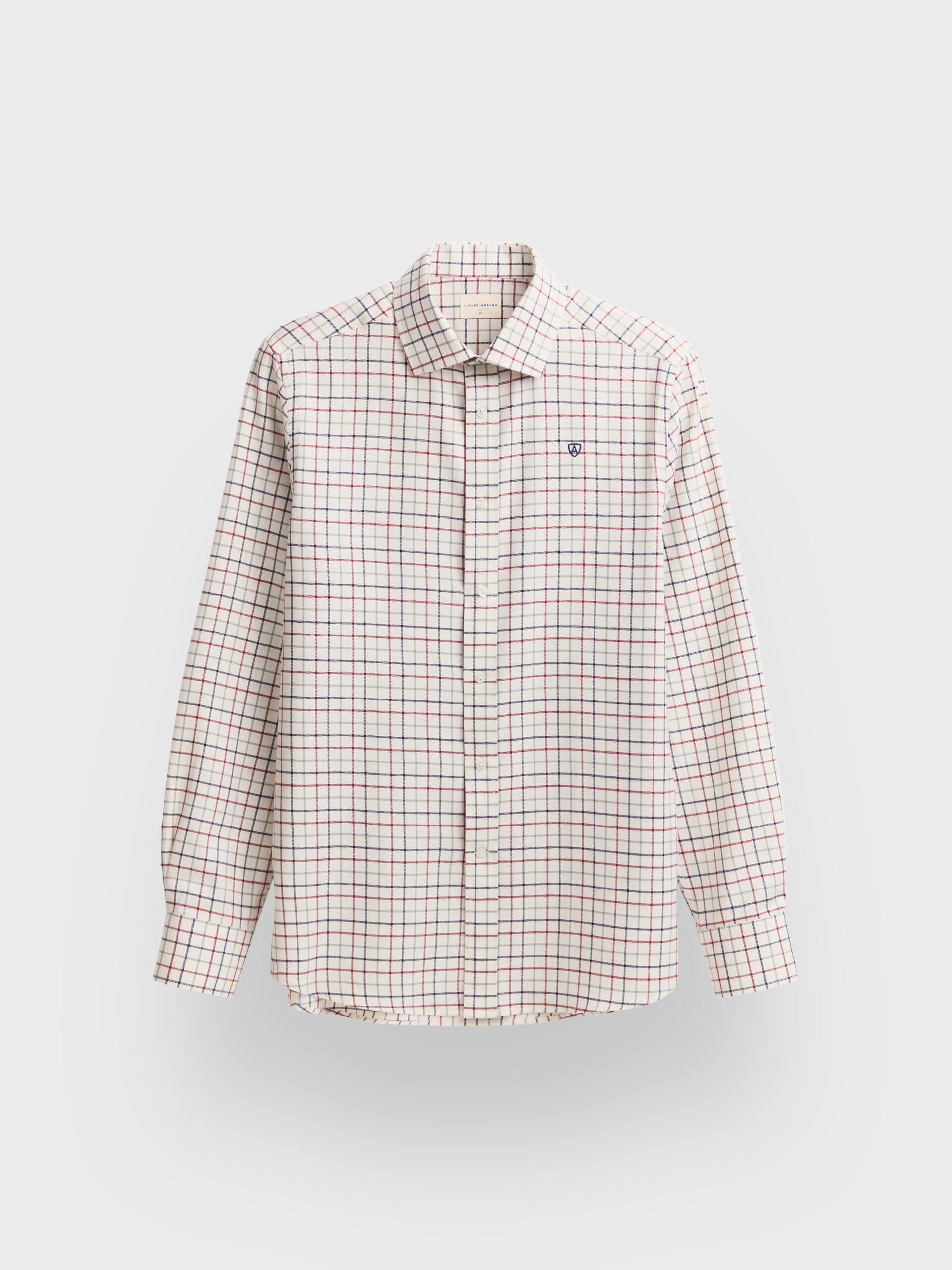 Camisa a cuadros confeccionada en tejido de franela. Cuenta con cuello clásico de botón, manga larga con puños simples y logo de la marca grabado en el frontal. Corte regular fit.