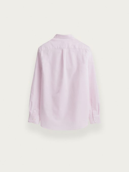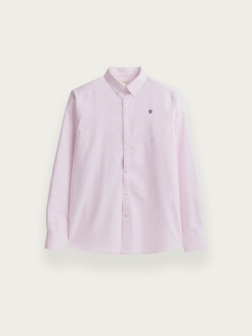 Camisa de estilo lisa y corte regular fit confeccionada en 100% algodón. Cuenta con cuello botón, manga larga con puños simples y logo de la marca grabado en el frontal a contraste.