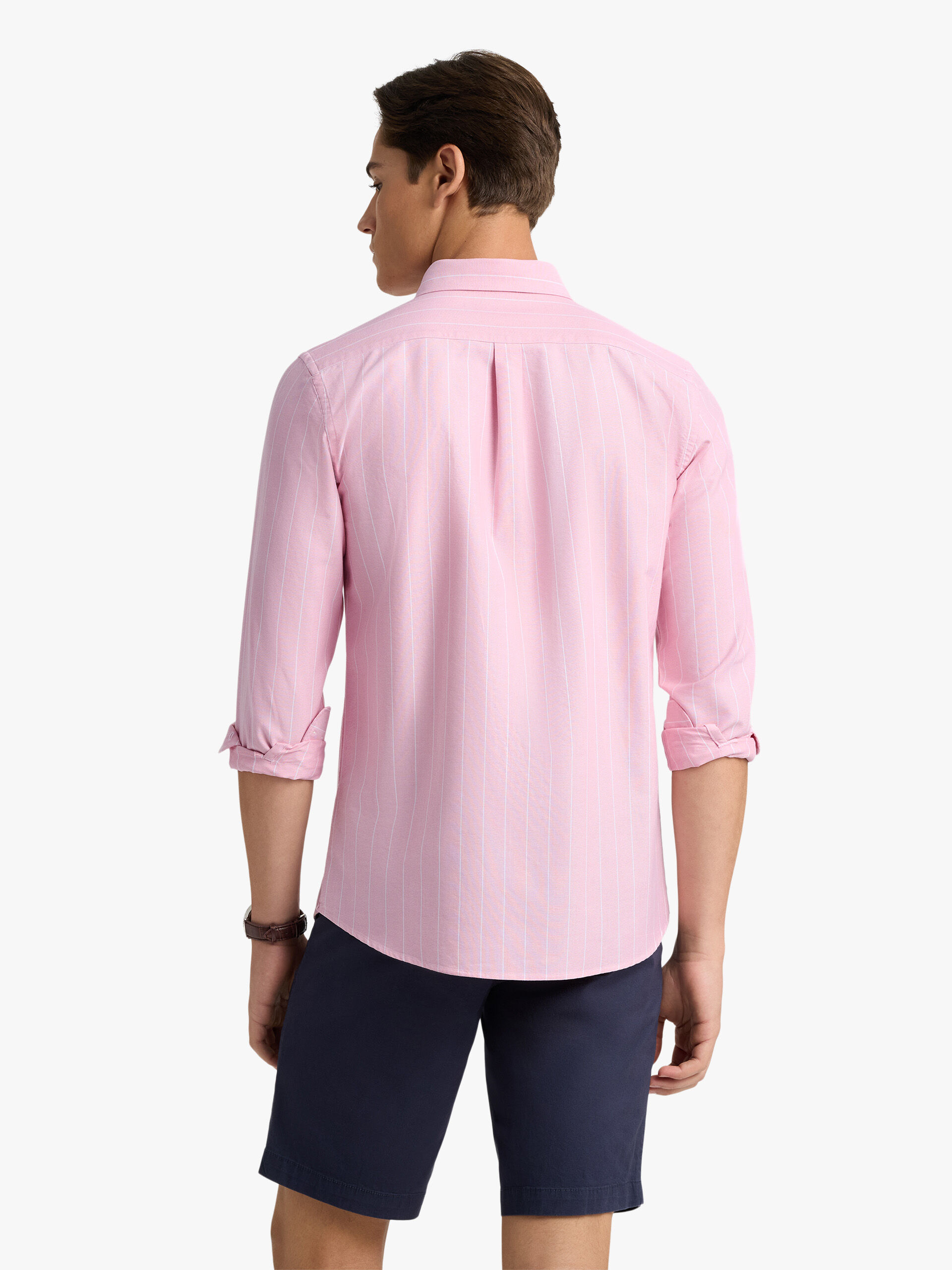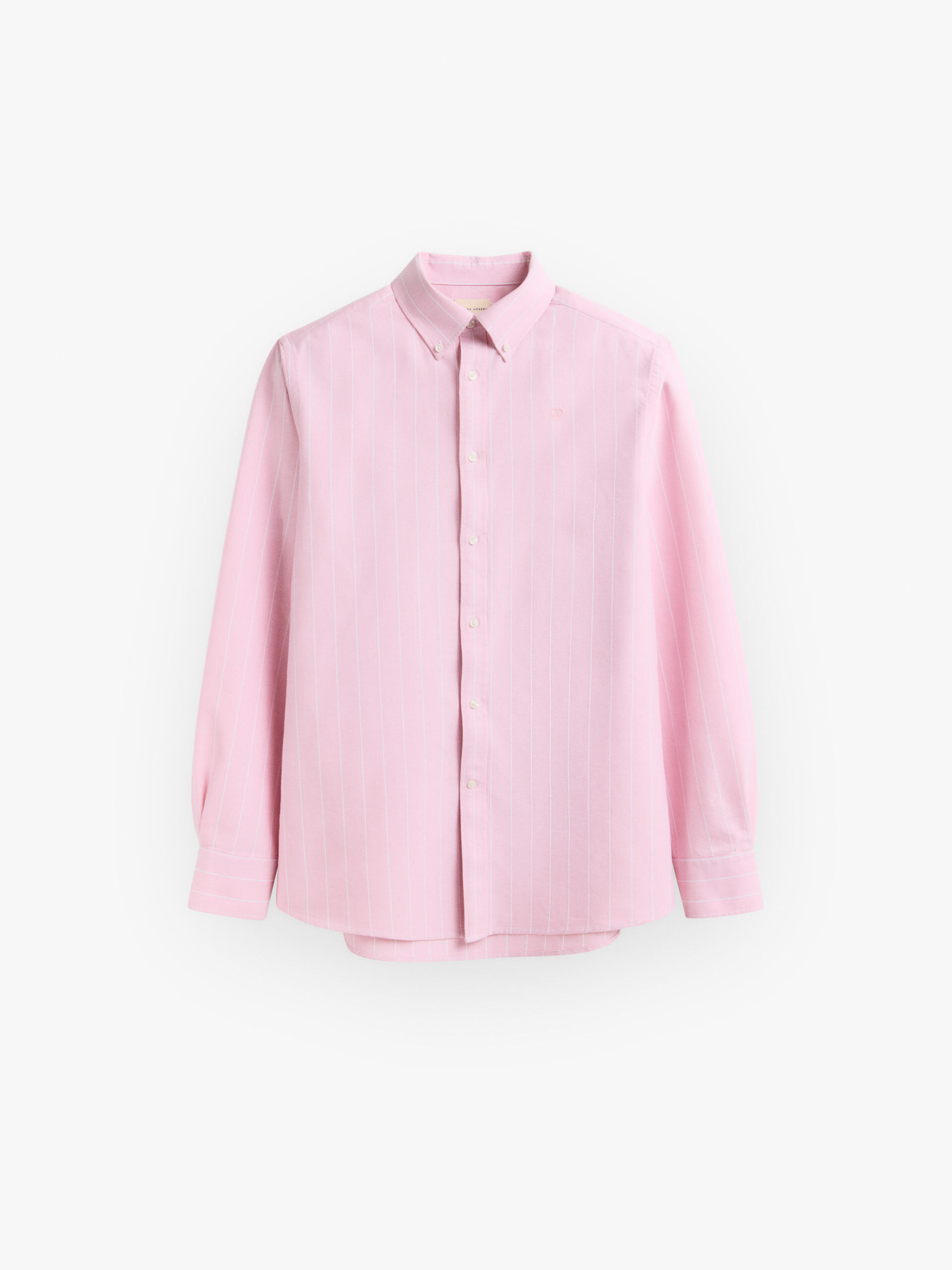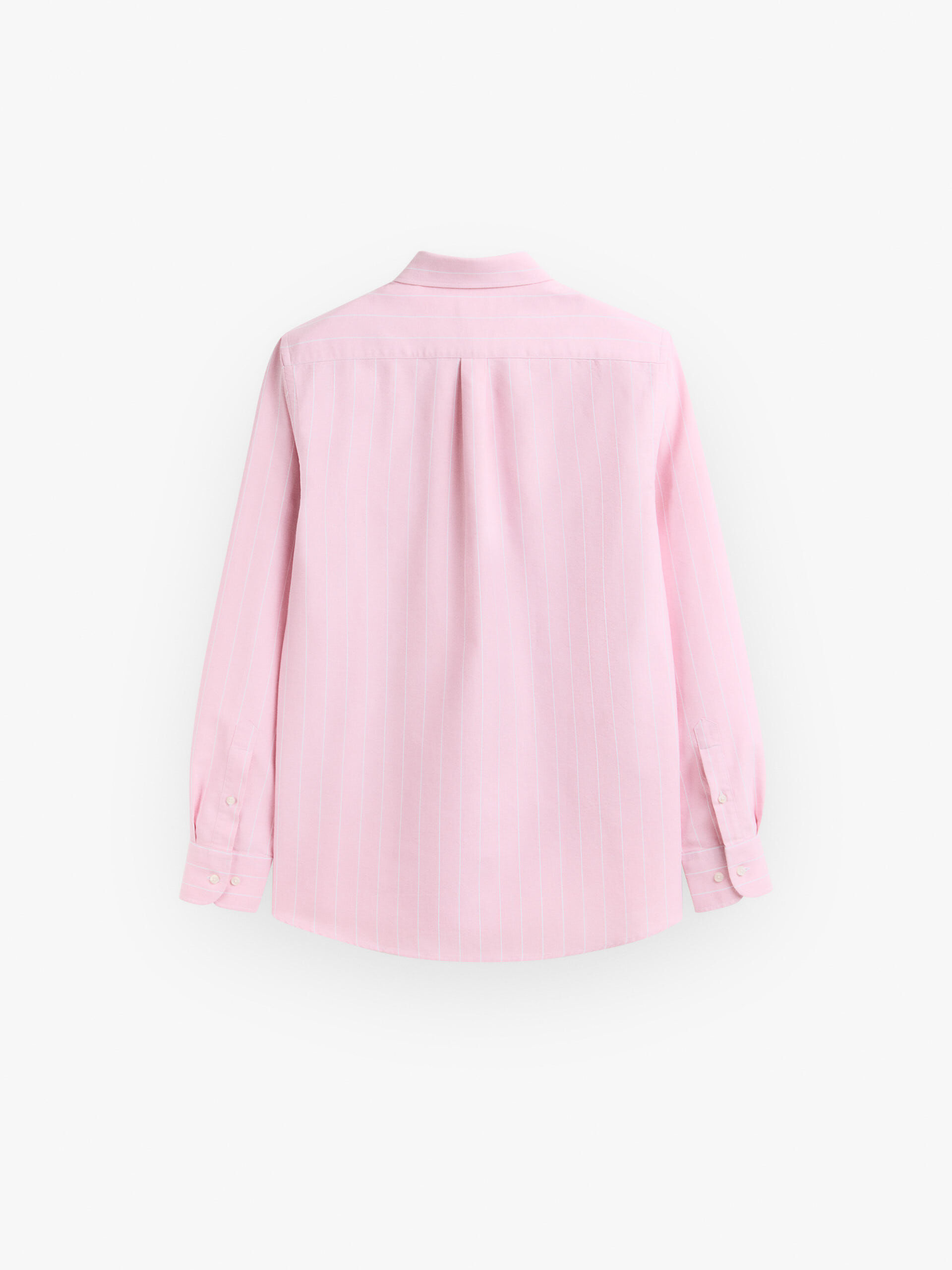 Camisa con diseño a rayas de corte regular fit. Cuenta con cuello de botón, manga larga con puños simples y logo de la marca grabado en el frontal.