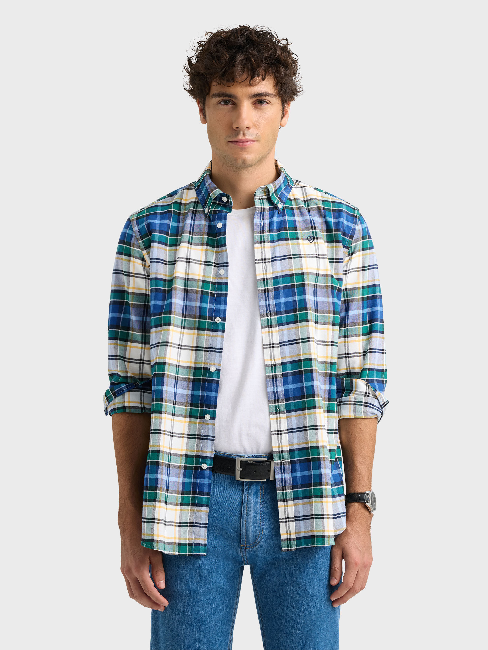 Camisa a cuadros confeccionada en tejido de franela. Cuenta con cuello clásico de botón, manga larga con puños simples y logo de la marca grabado en el frontal. Corte regular fit.