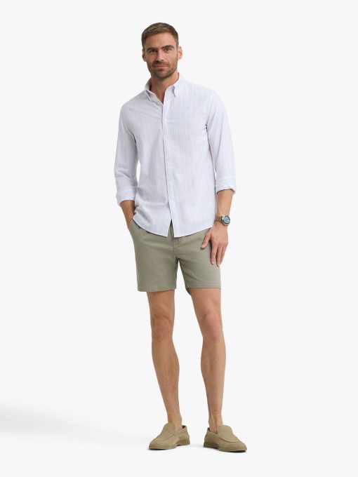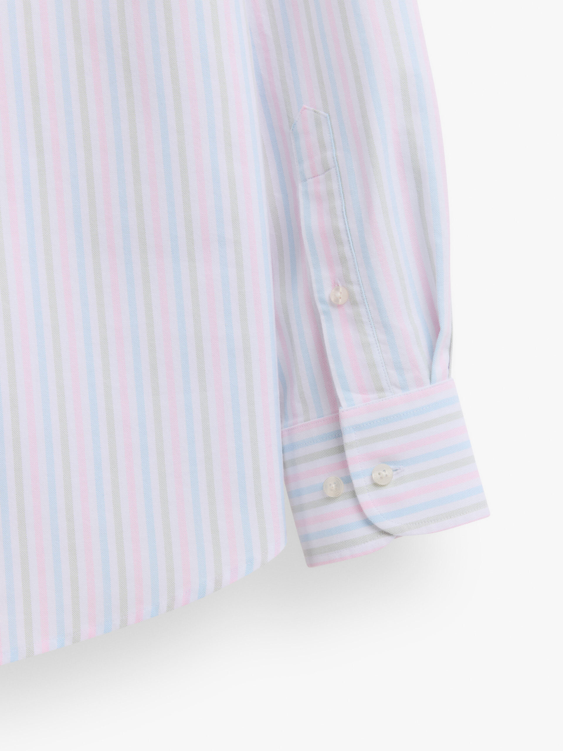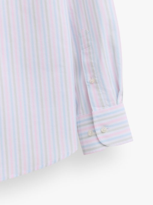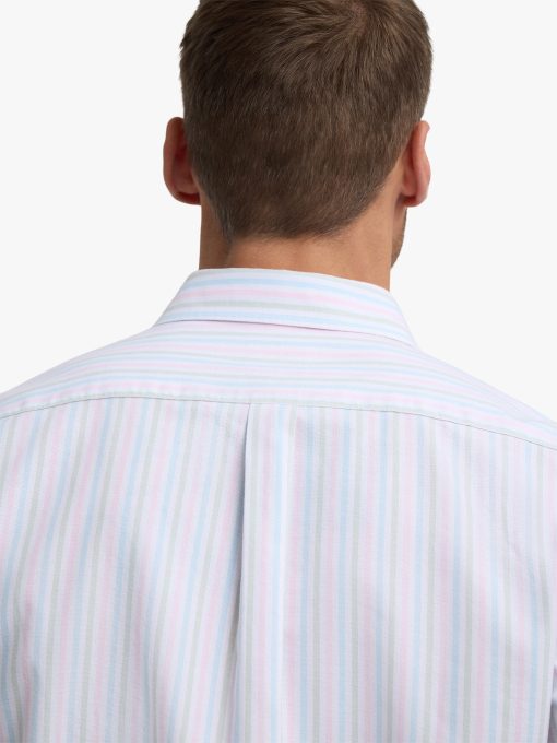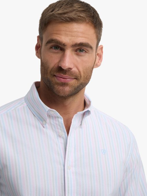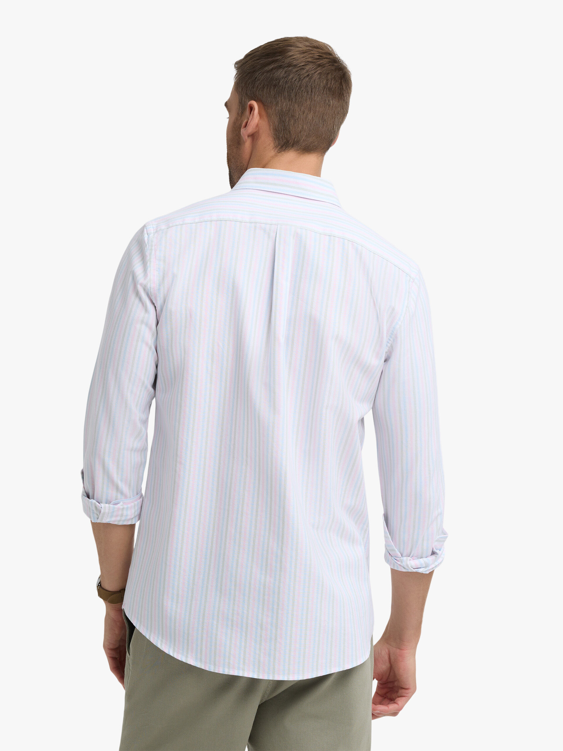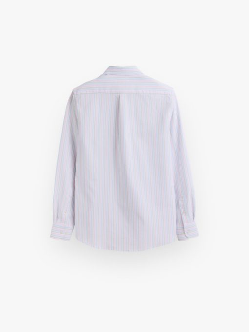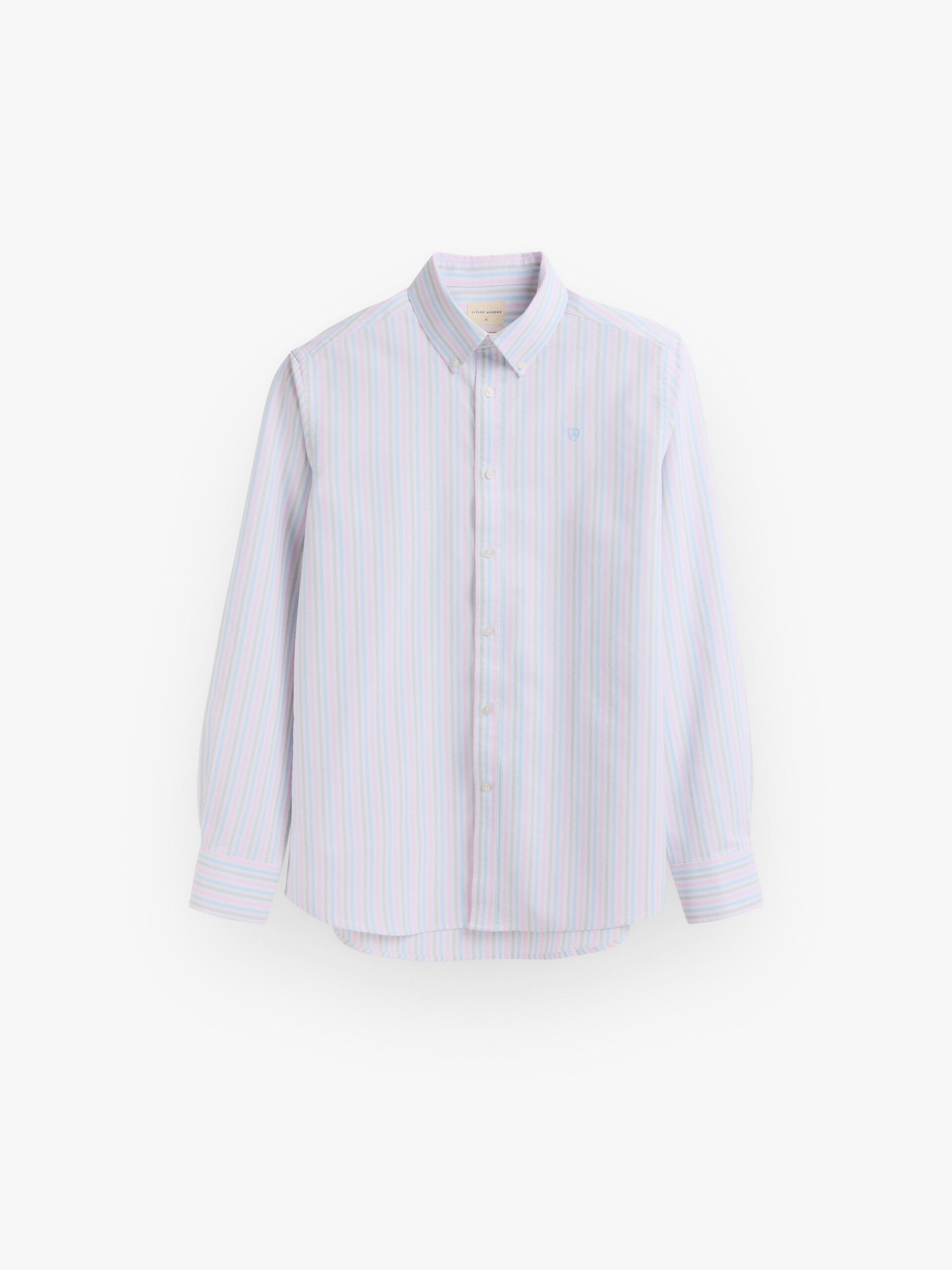Camisa de corte regular fit con diseño a rayas. Cuenta con cuello de botón, logo de la marca grabado en el frontal y manga larga con puños simples.