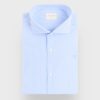 Camisa de vestir a rayas confeccionada en algodón. Cuenta con cuello italiano, manga larga con puños simples y logo de la marca grabado en el frontal. Corte slim fit.