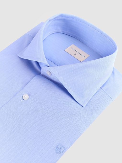 Alvaro Moreno Hombre Ropa Camisa Vestir Herringbone Celeste