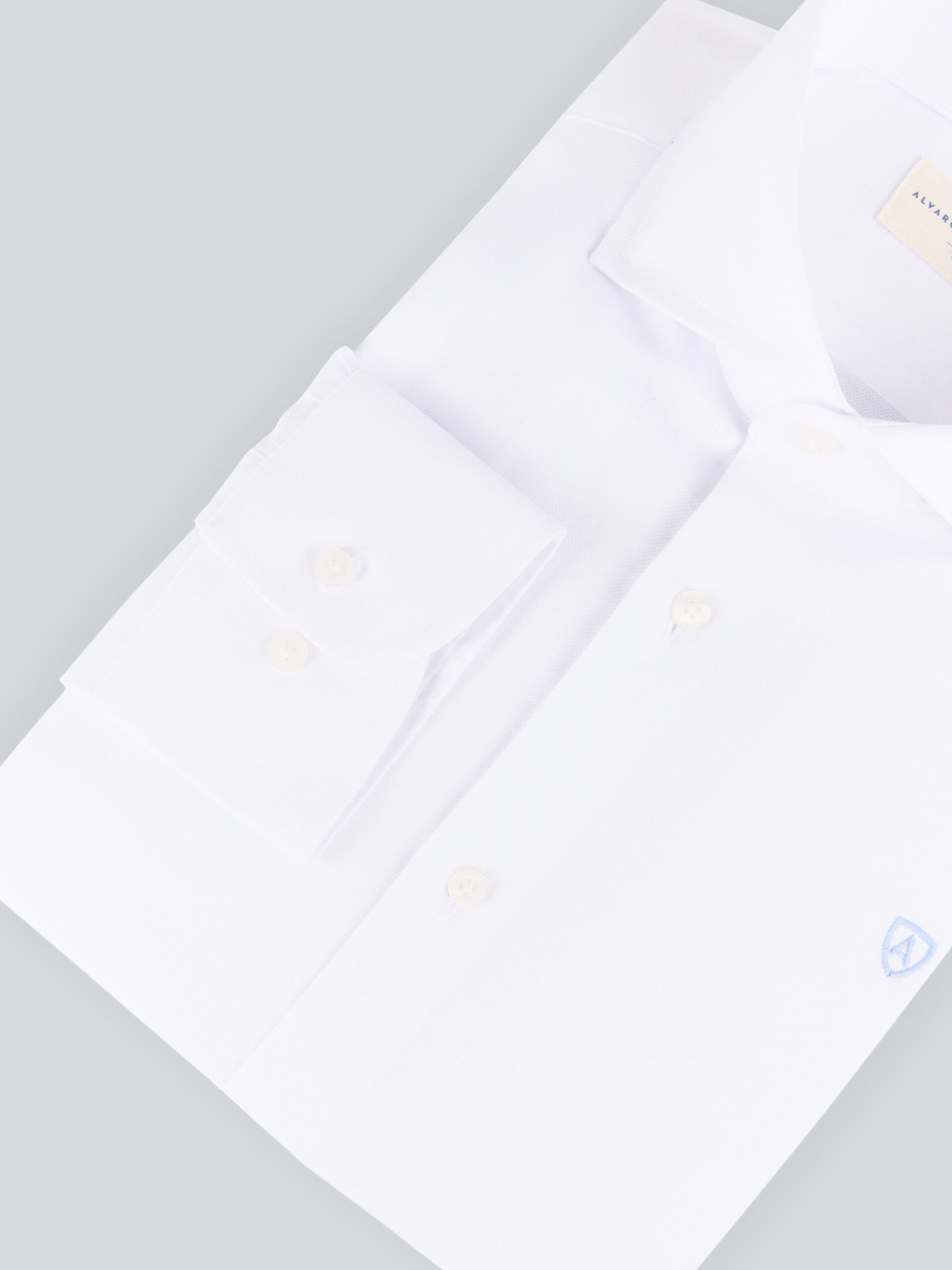 Camisa de corte slim fit con una suave estructura en su tejido. Cuenta con cuello italiano, manga larga con puños simples y logo de la marca grabado en el frontal.