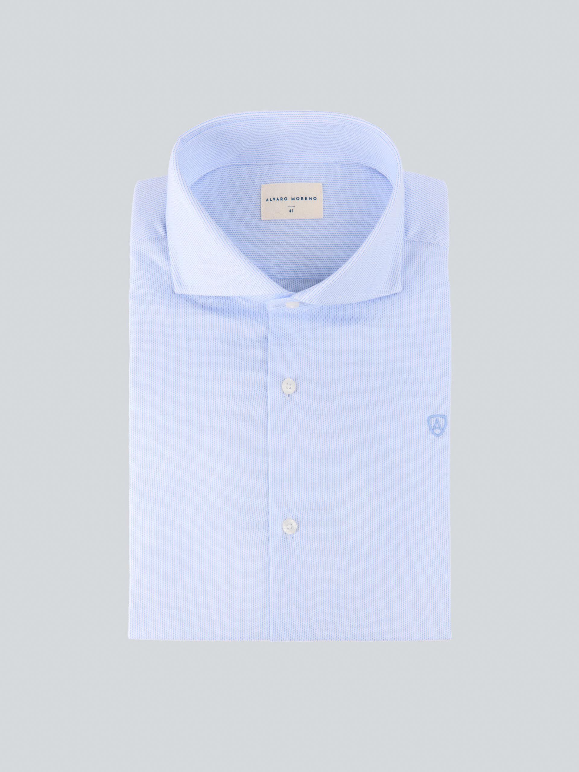 Alvaro Moreno Hombre Ropa Camisa Vestir Micro Rayas Celeste