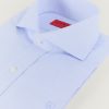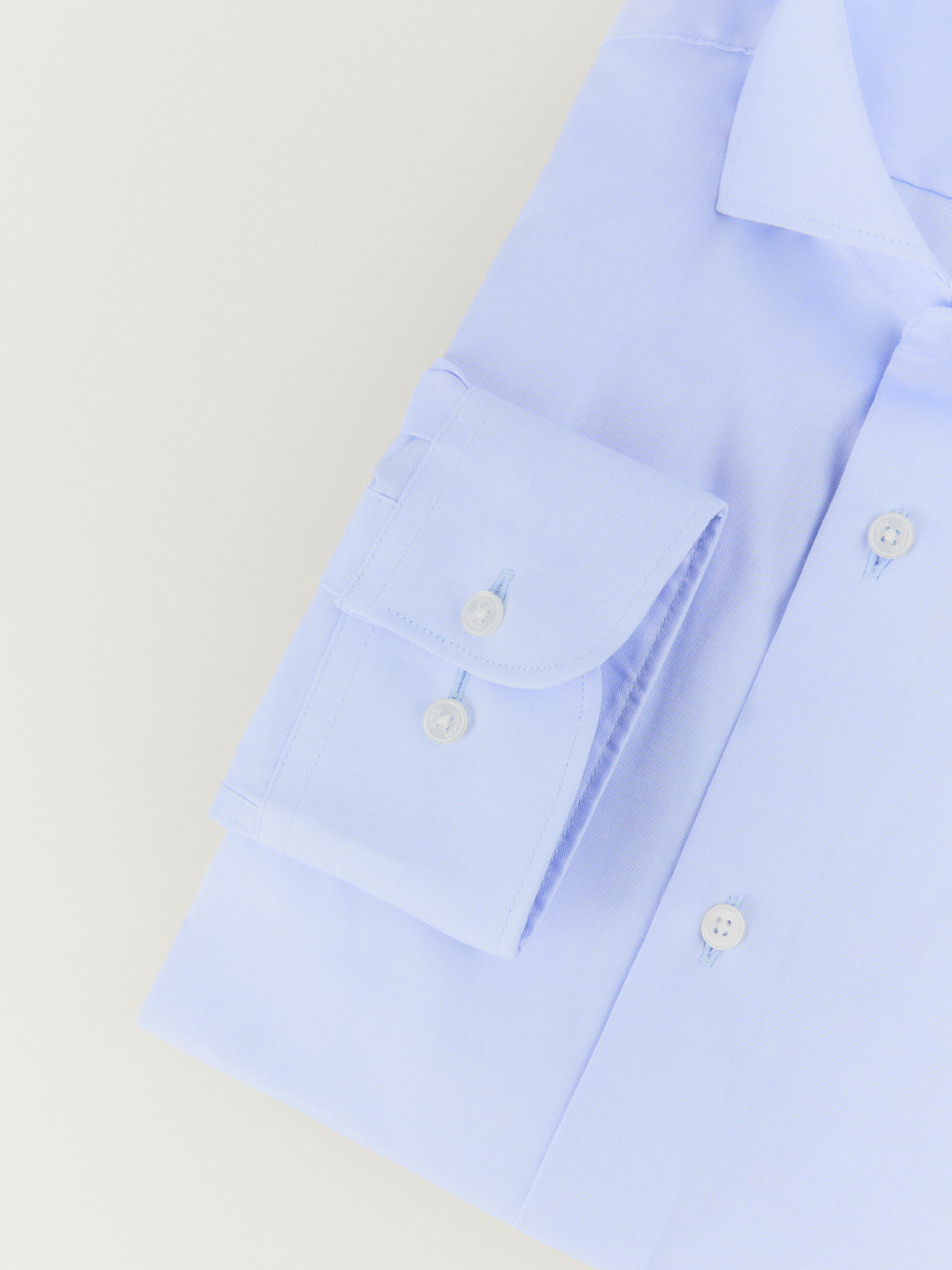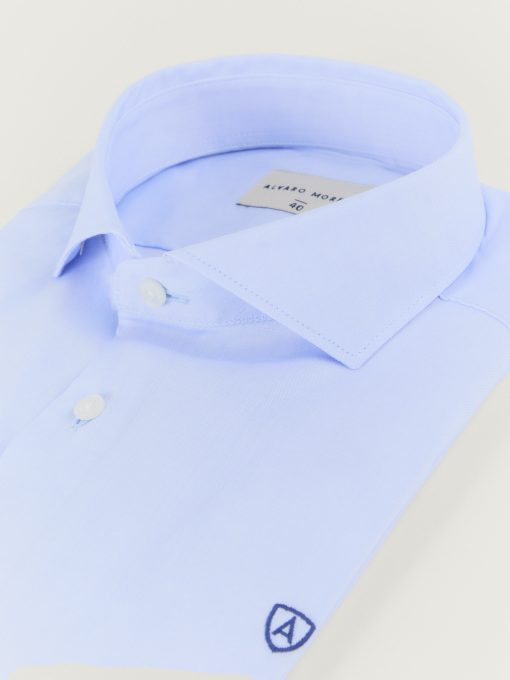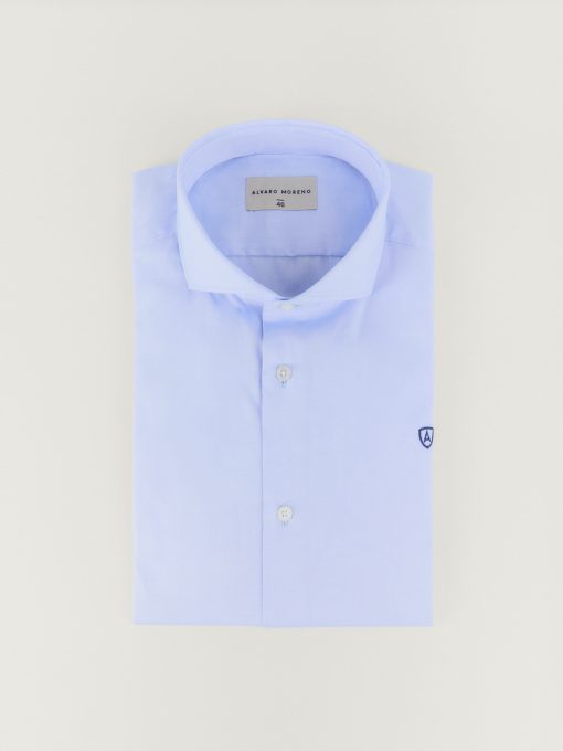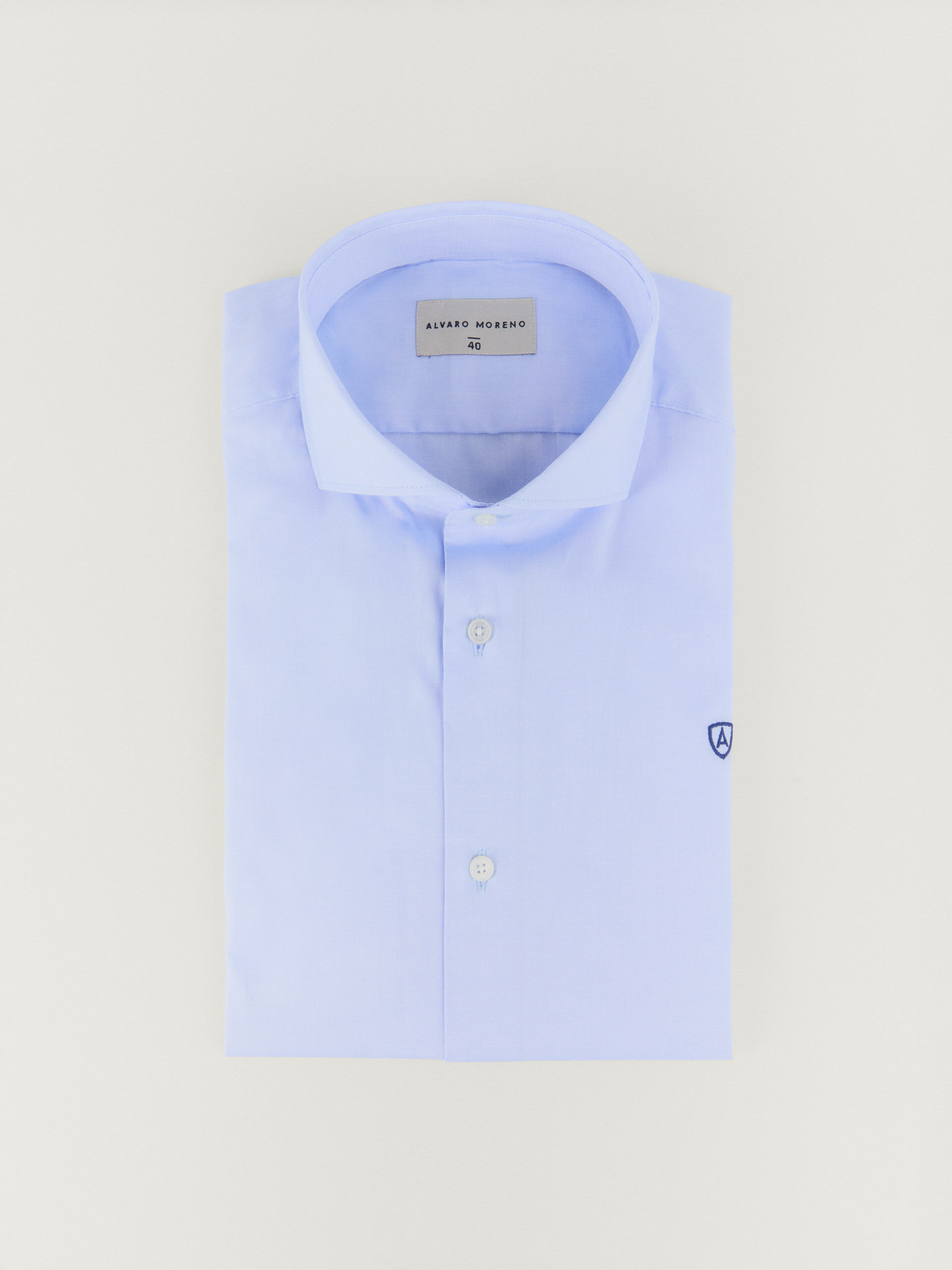 Camisa de vestir de corte slim fit. Cuenta con una ligera estructura en su tejido, cuello italiano y manga larga con puños simples. Logo de la marca grabado al tono en el frontal.