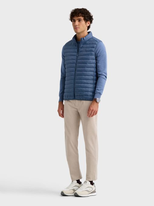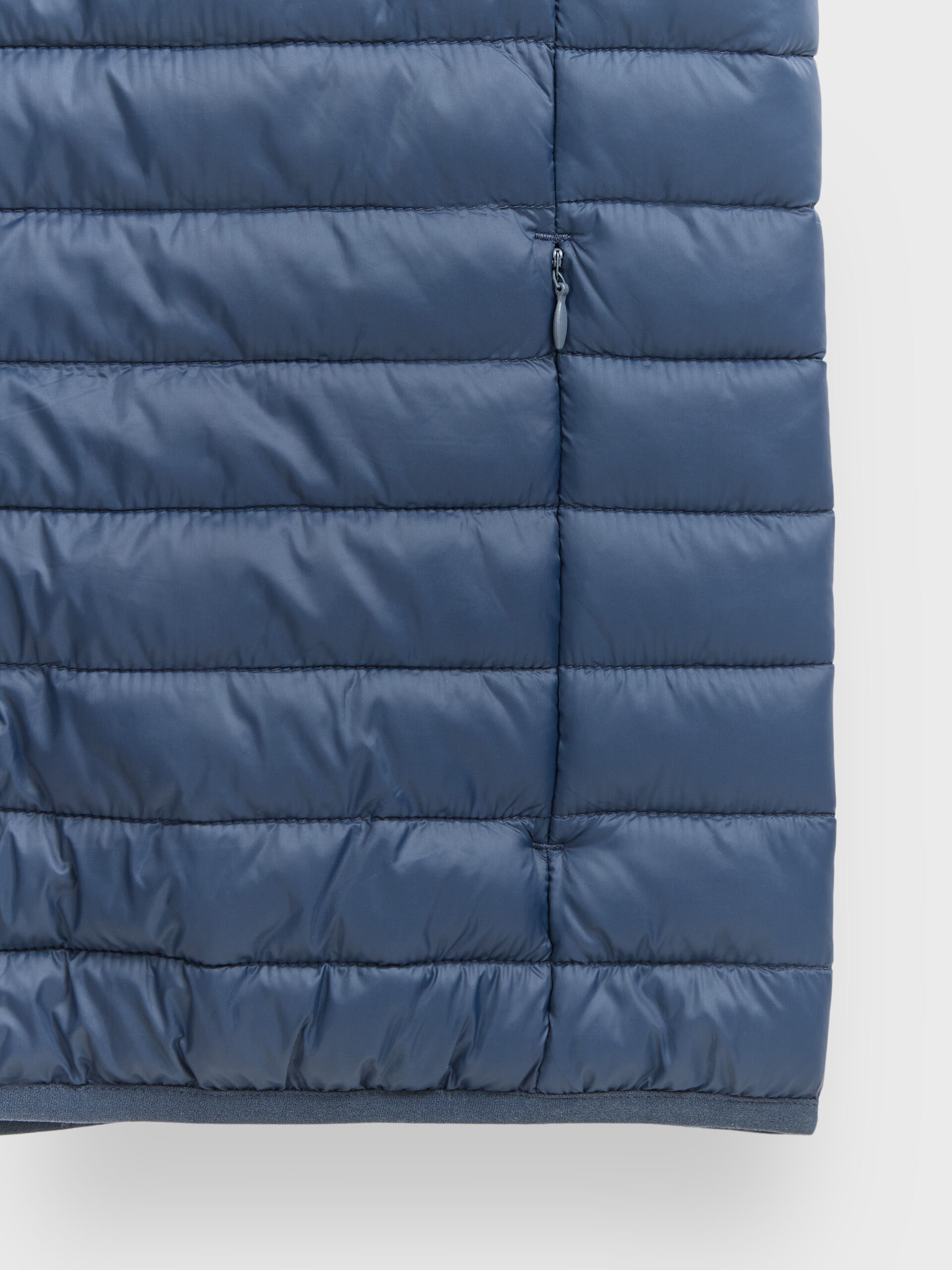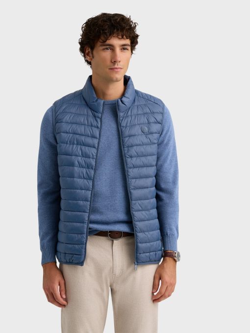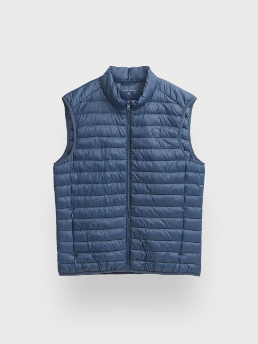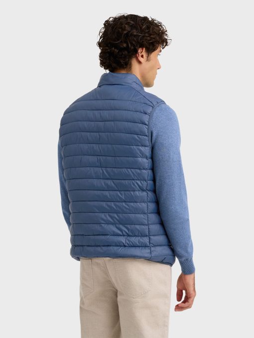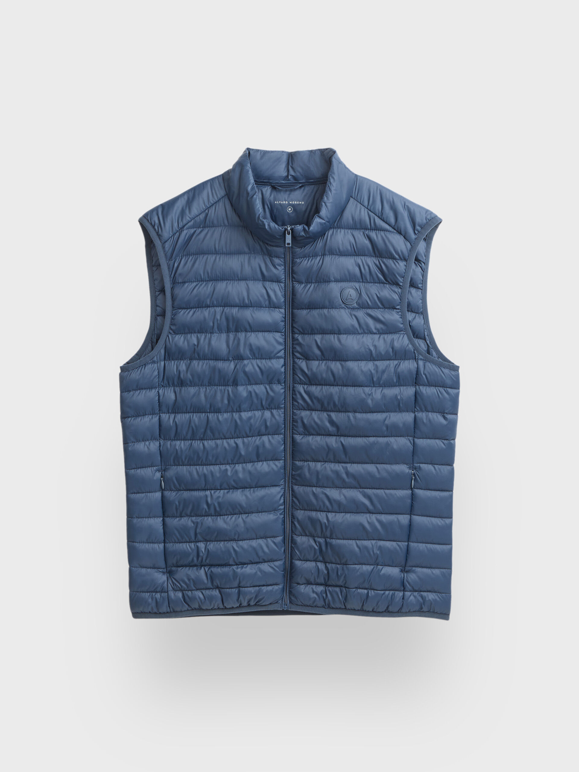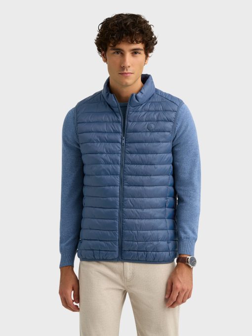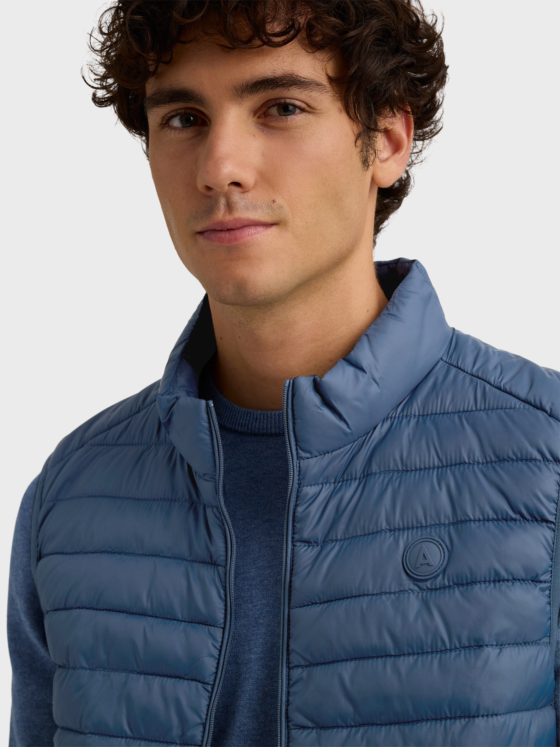 Chaleco acolchado de corte regular fit. Cuello subido, cierre central mediante cremallera, dos bolsillos a la altura de la cintura y logo de la marca grabado en el pecho. Elástico en la sisa y cintura. Bolsillo en el interior.