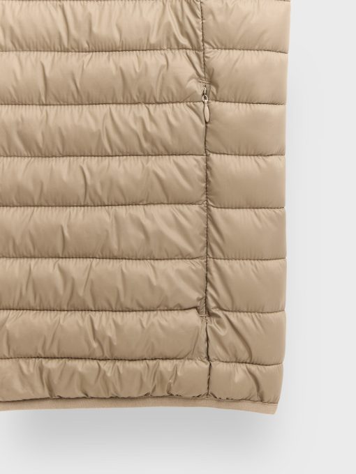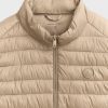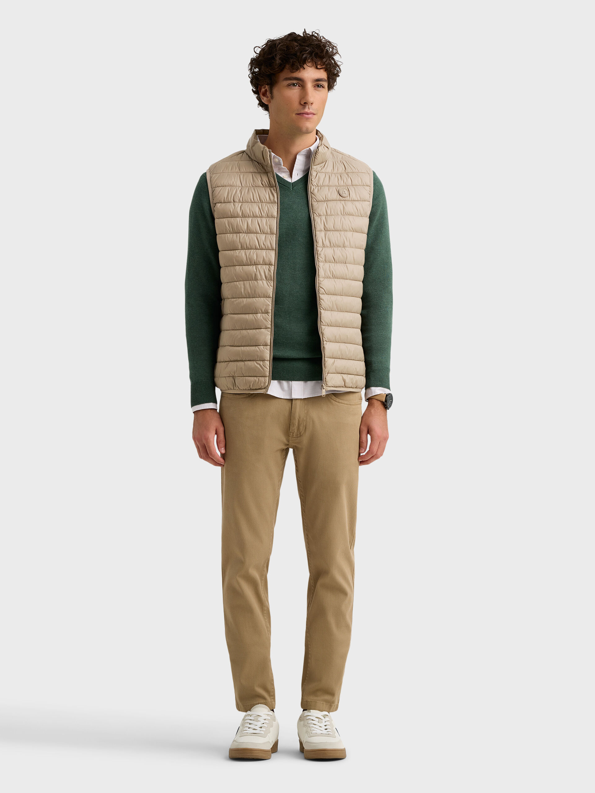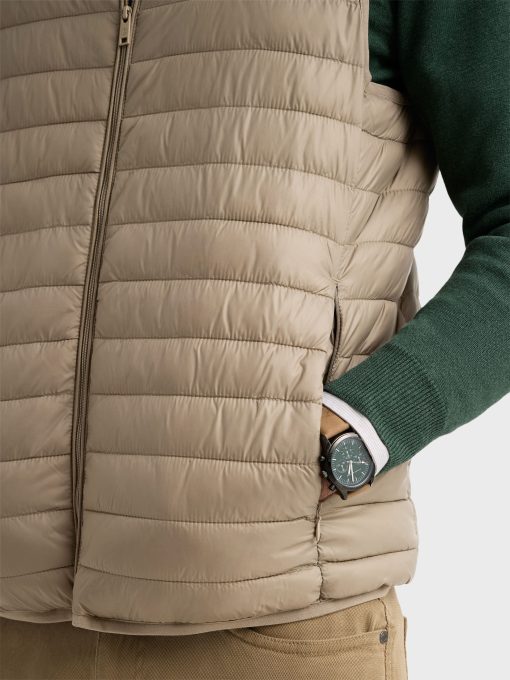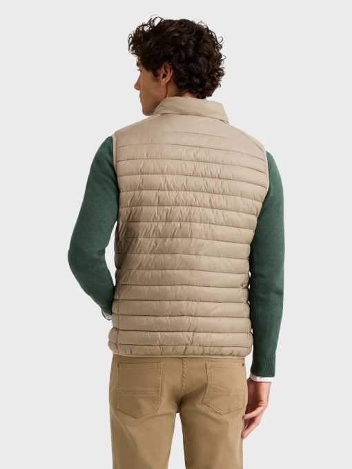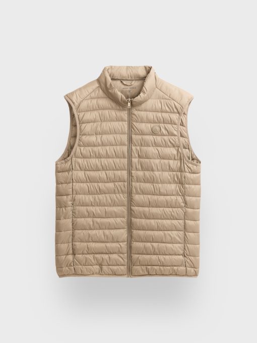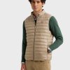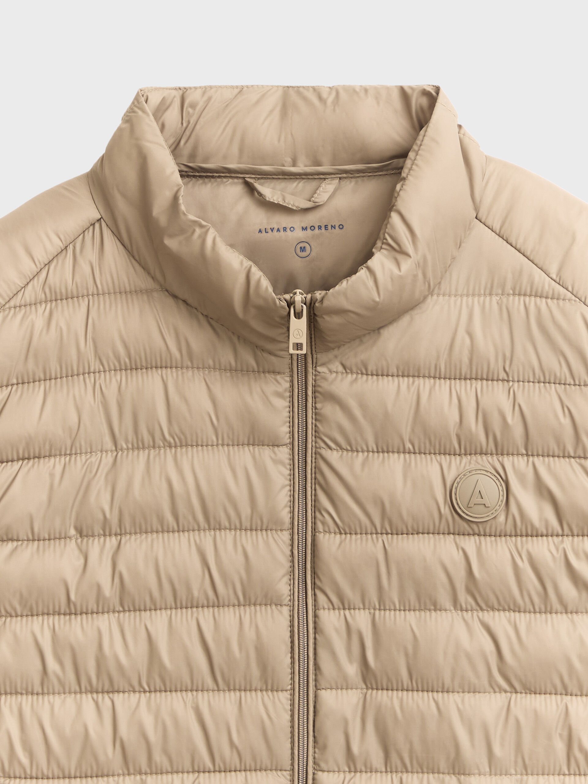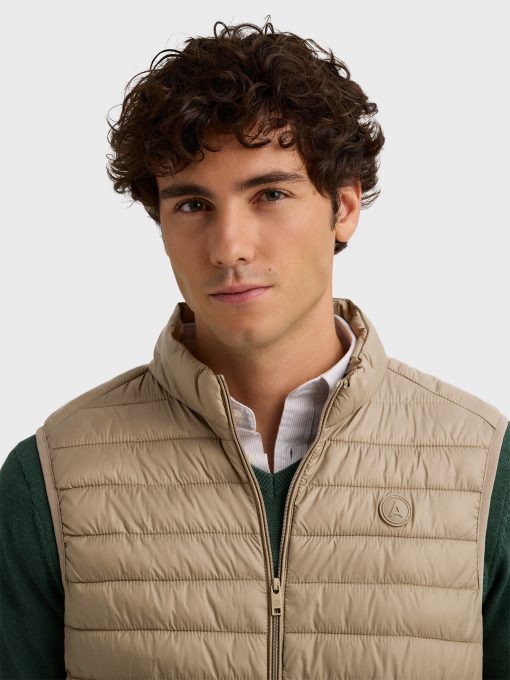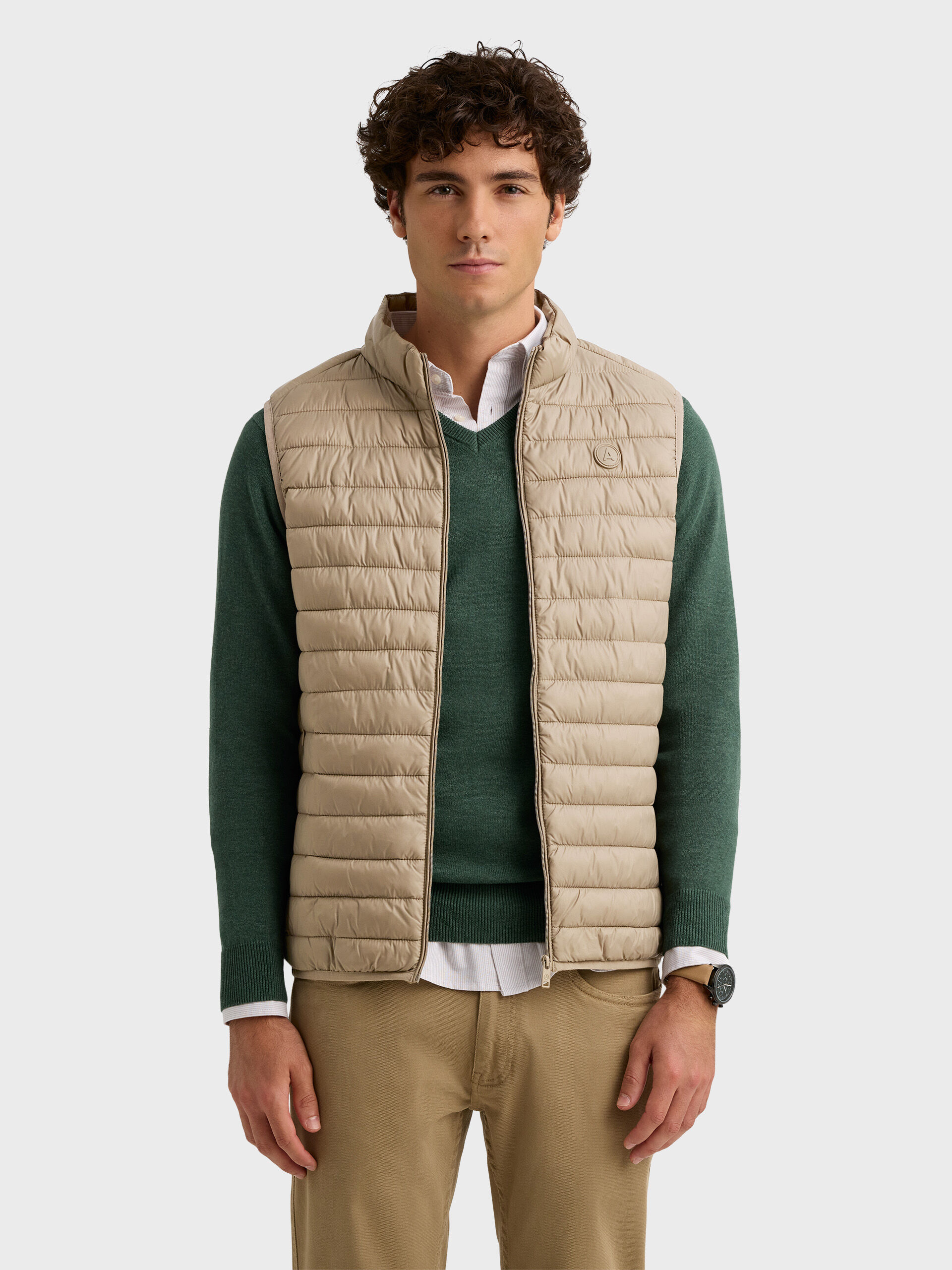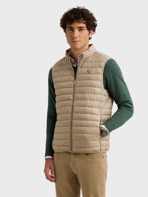 Chaleco acolchado de corte regular fit. Cuello subido, cierre central mediante cremallera, dos bolsillos a la altura de la cintura y logo de la marca grabado en el pecho. Elástico en la sisa y cintura. Bolsillo en el interior.