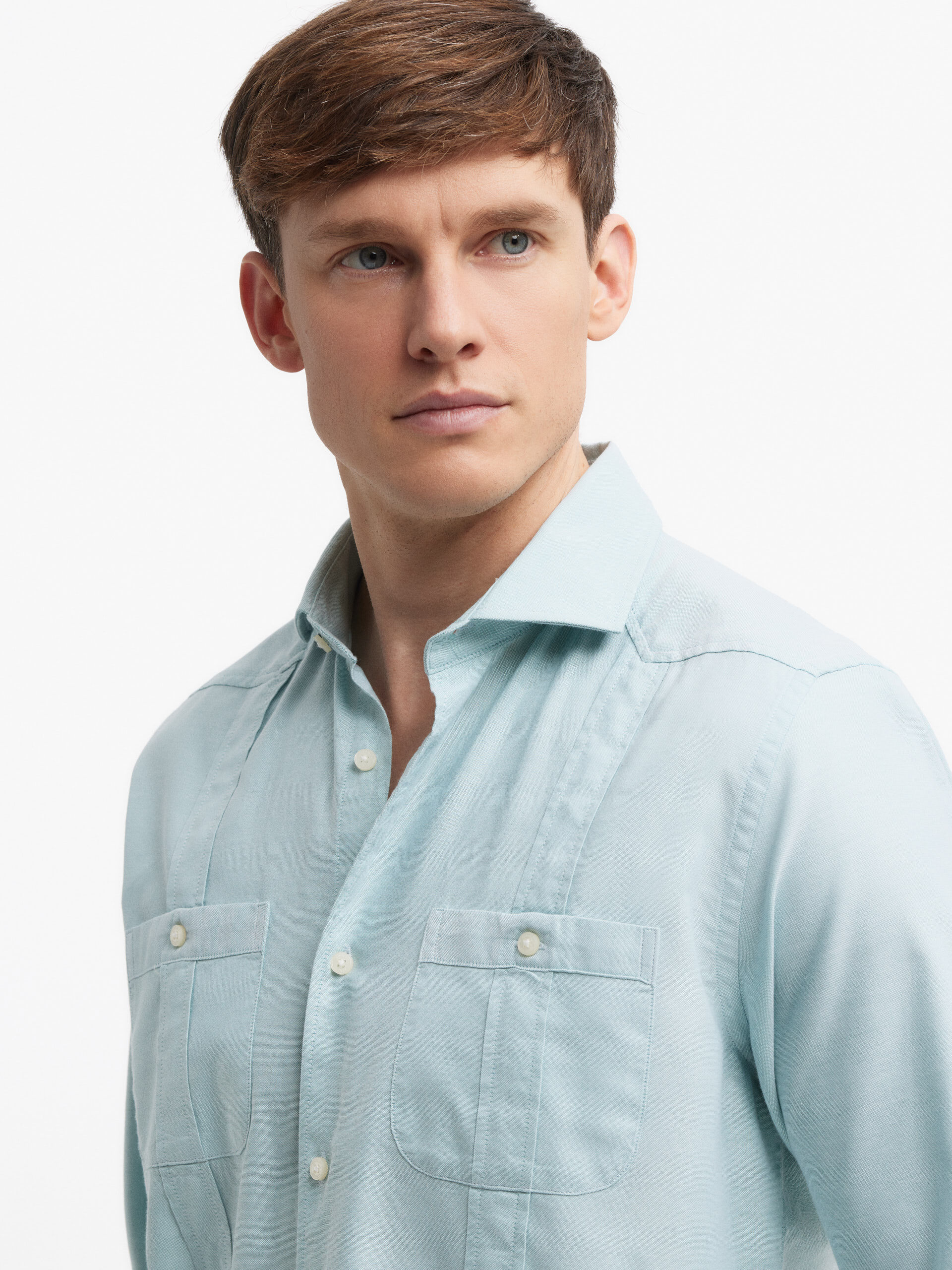 Camisa estilo cubana con cuatro bolsillos en el frontal confeccionada en algodón. Cuello de solapa, manga larga con terminación de botones y abertura en el bajo con cierre de botón. Corte regular fit.
