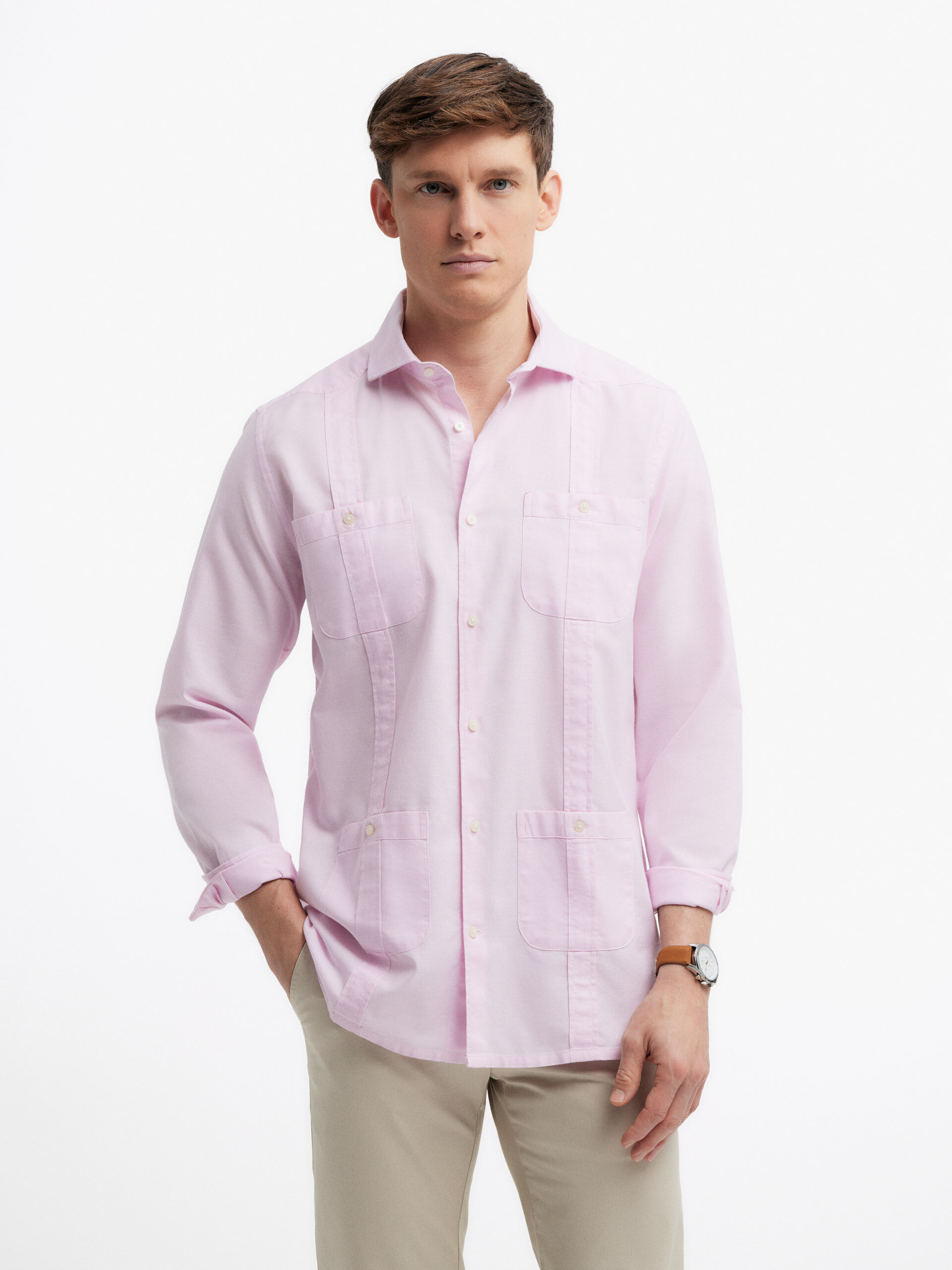 Alvaro Moreno Hombre Ropa Cubana Oxford Rosa