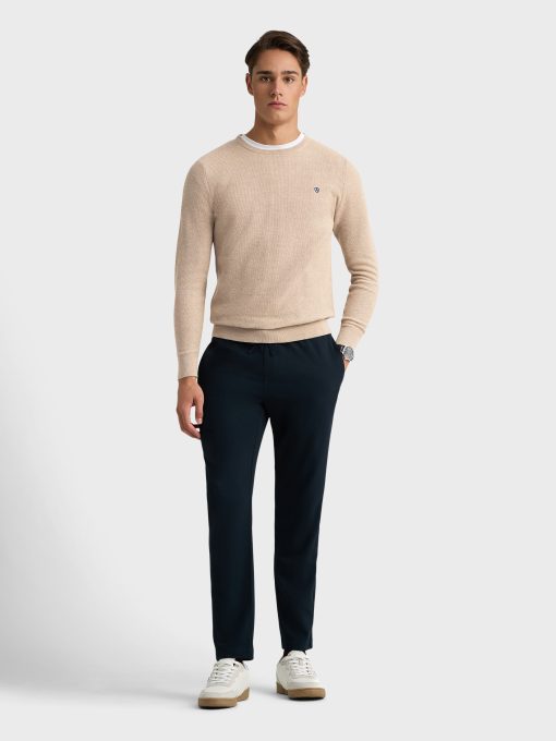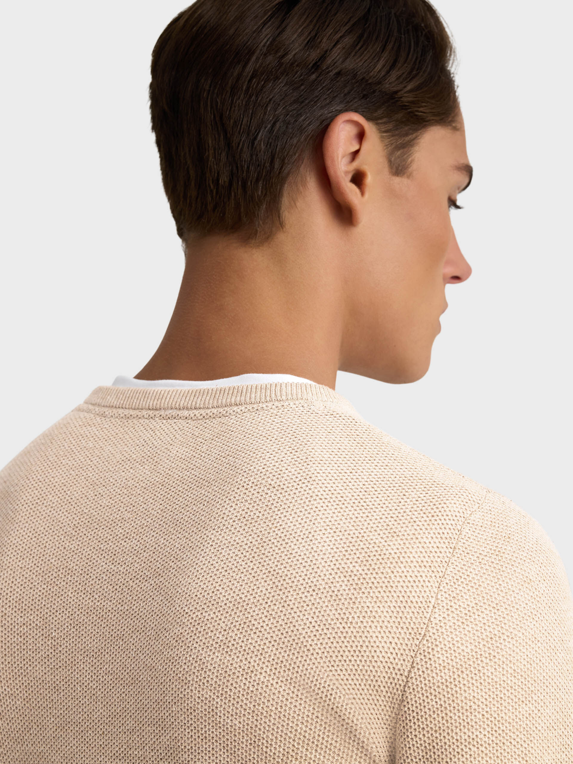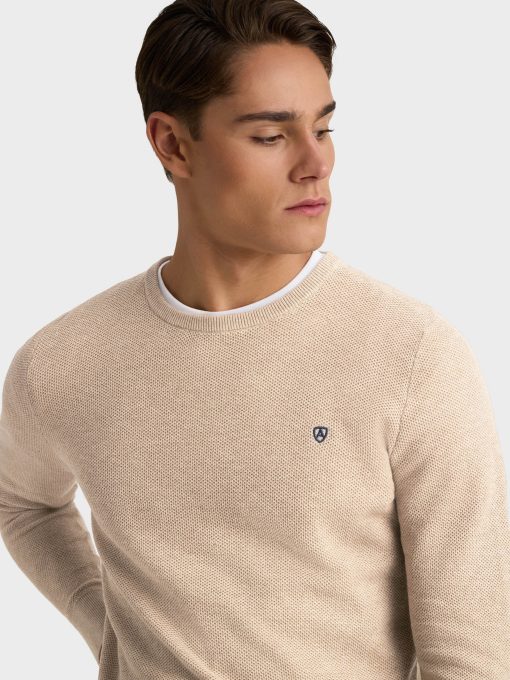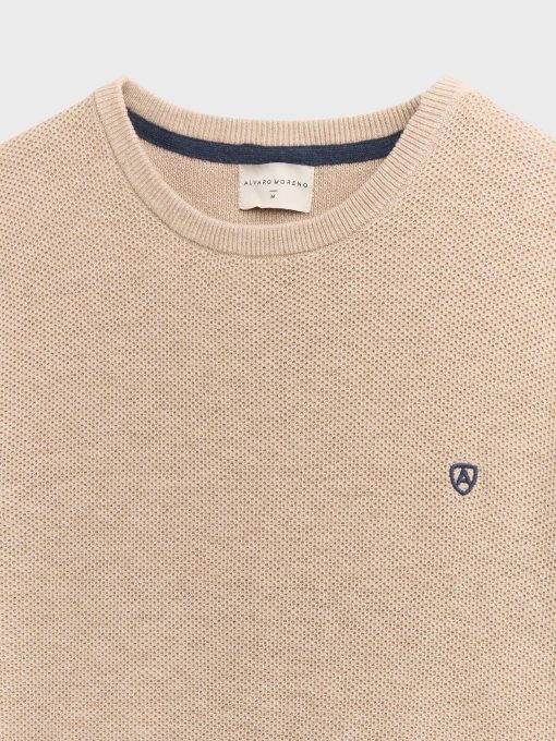 Jersey con tejido de estructura, cuello redondo y logo de la marca bordado en el frontal al tono. Bajo, puños y cuello en acabado ribeteado de punto elástico para mayor comodidad. Corte regular fit.