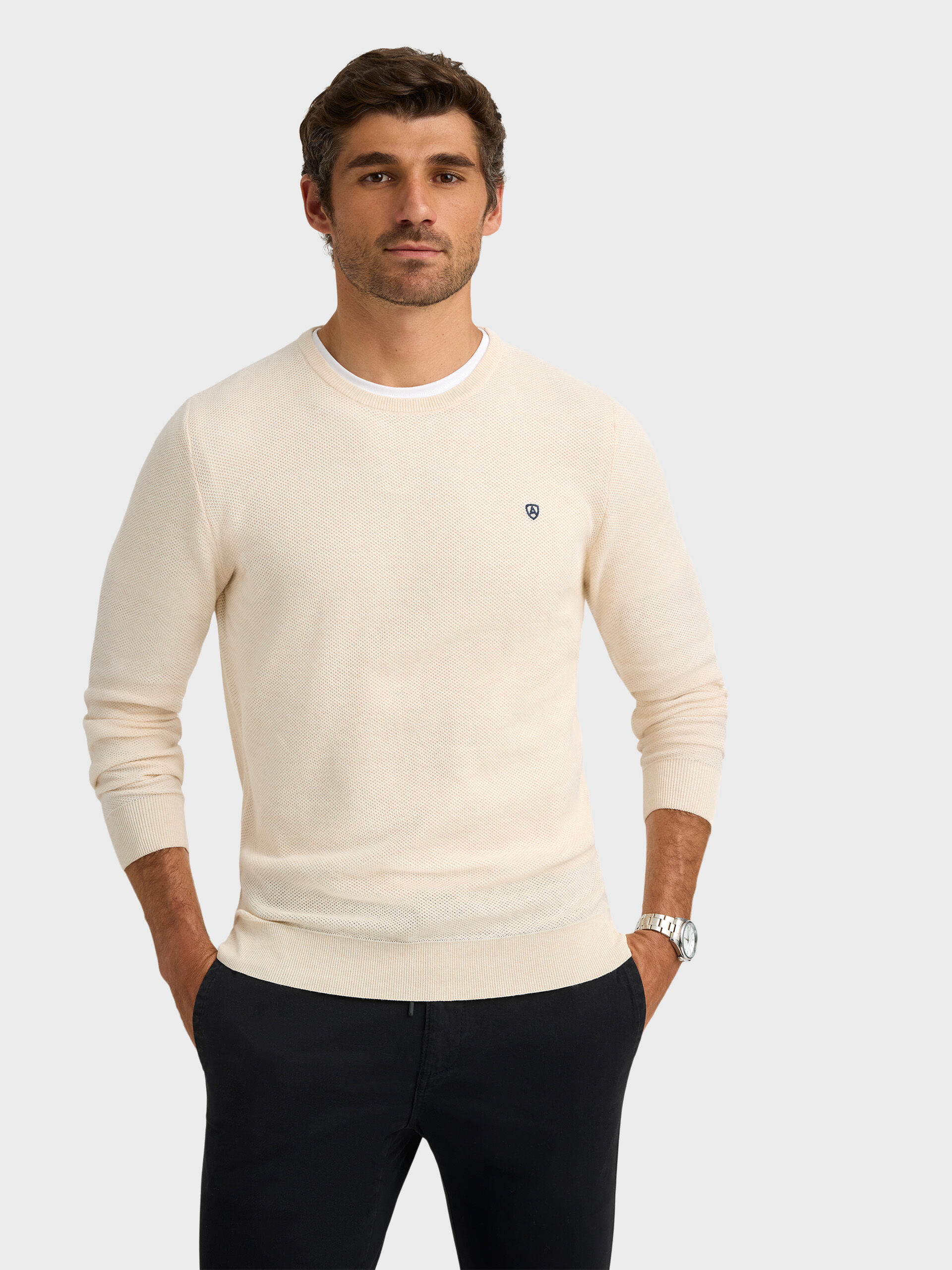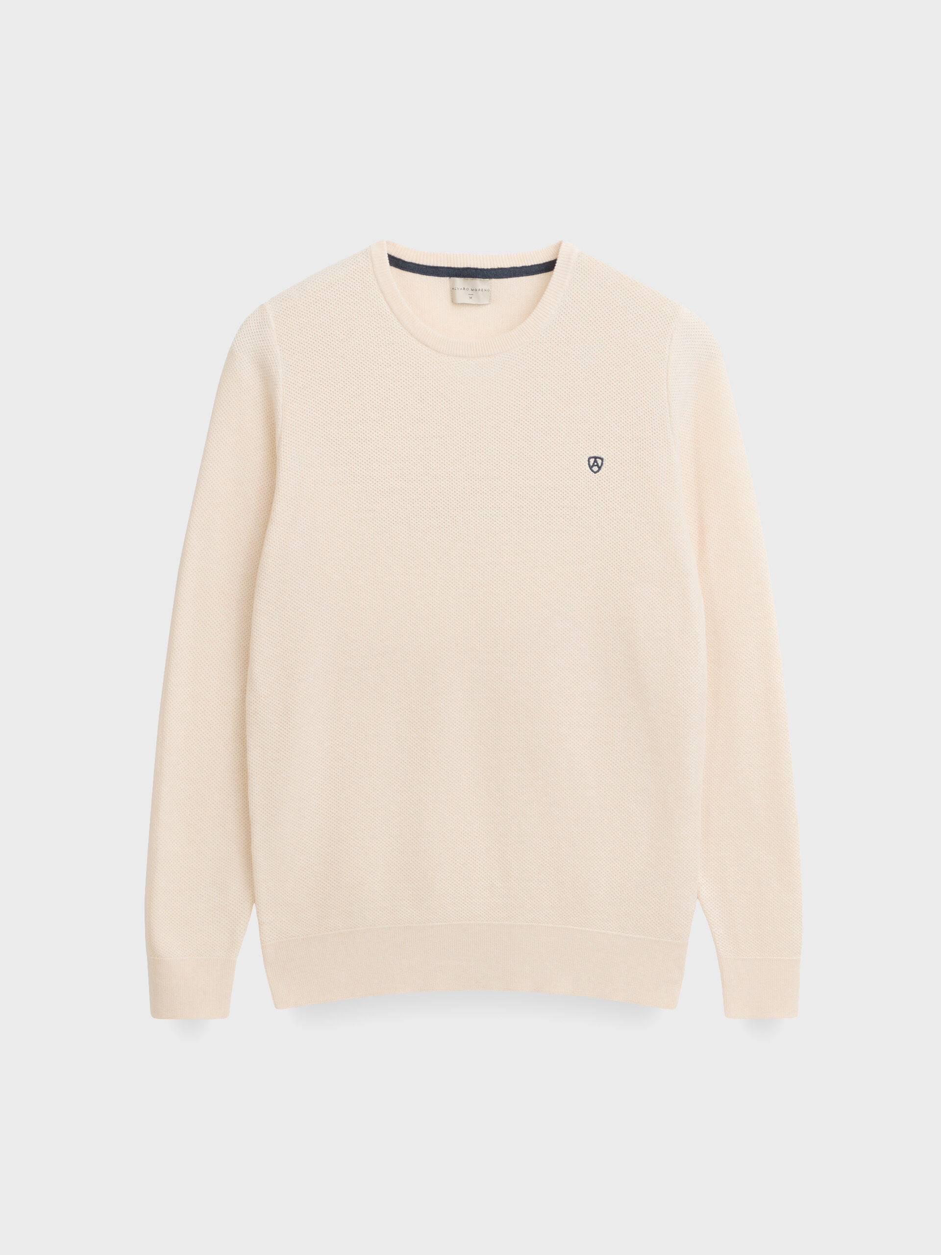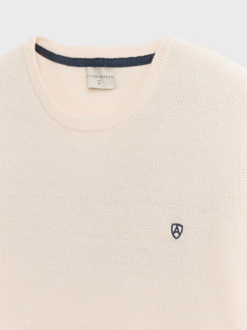 Jersey con tejido de estructura, cuello redondo y logo de la marca bordado en el frontal al tono. Bajo, puños y cuello en acabado ribeteado de punto elástico para mayor comodidad. Corte regular fit.