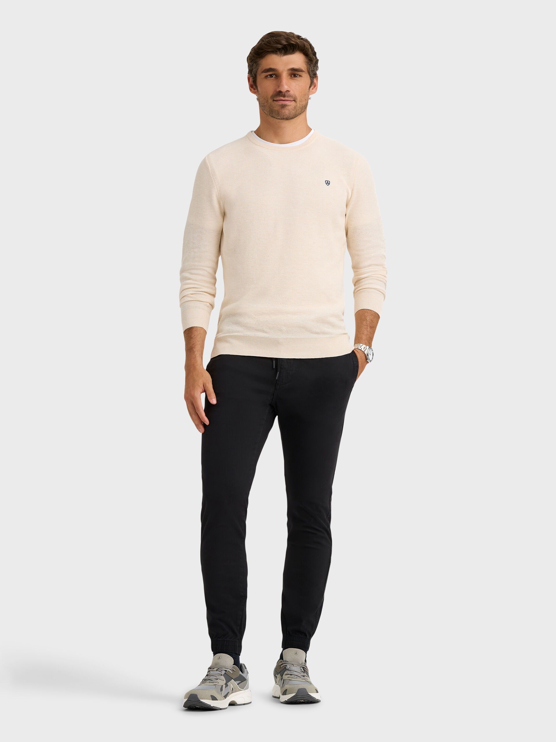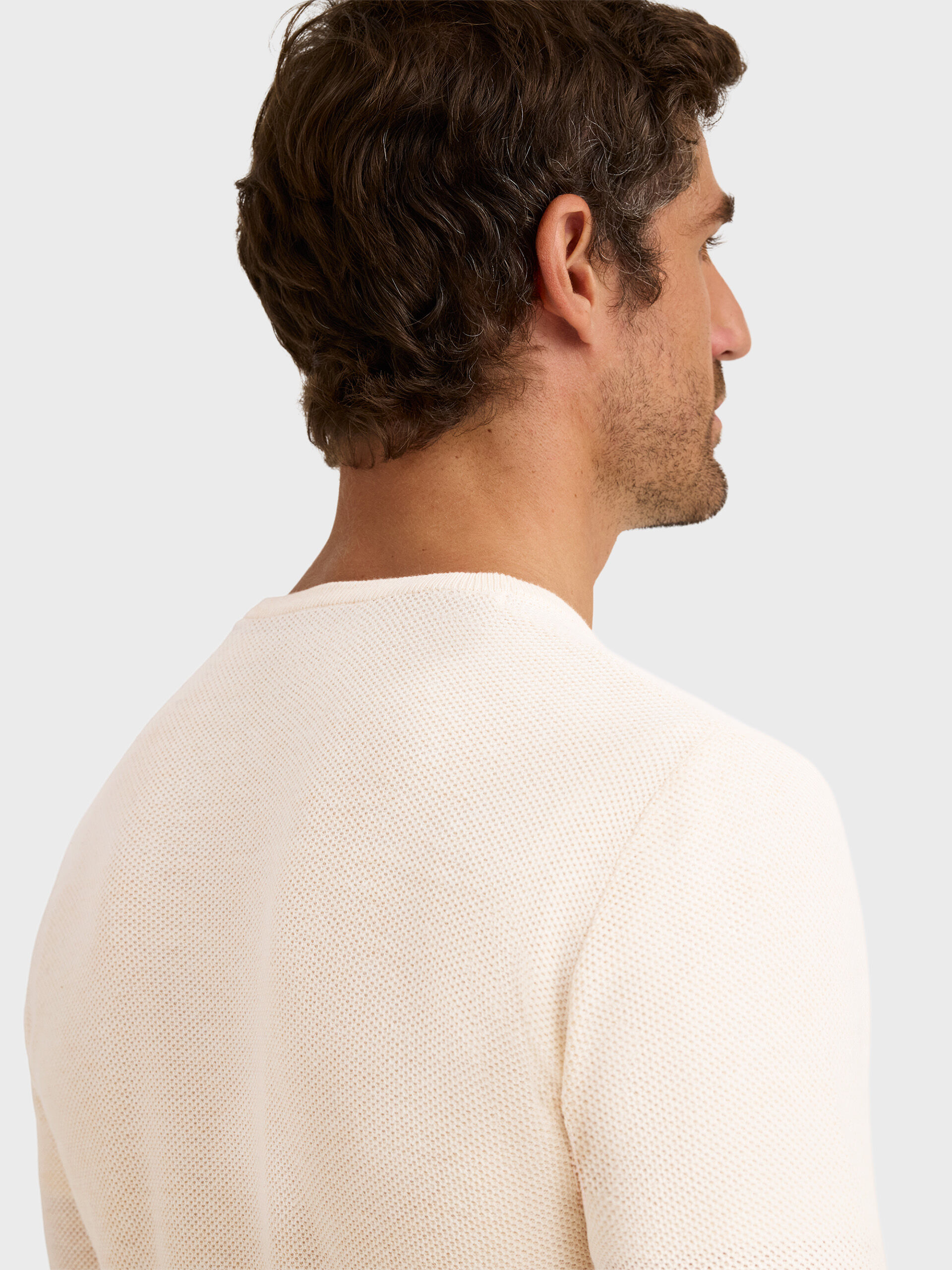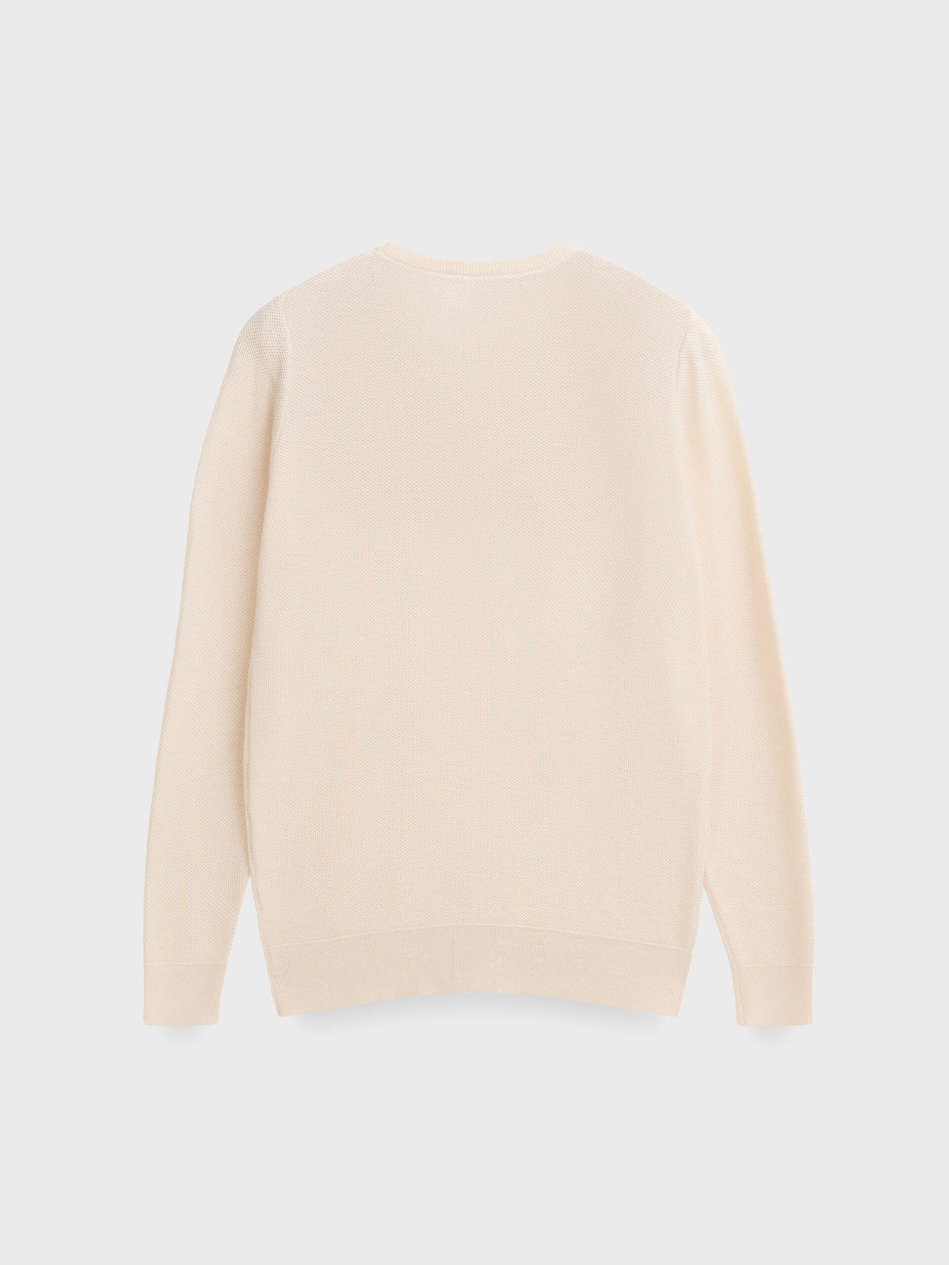 Jersey con tejido de estructura, cuello redondo y logo de la marca bordado en el frontal al tono. Bajo, puños y cuello en acabado ribeteado de punto elástico para mayor comodidad. Corte regular fit.
