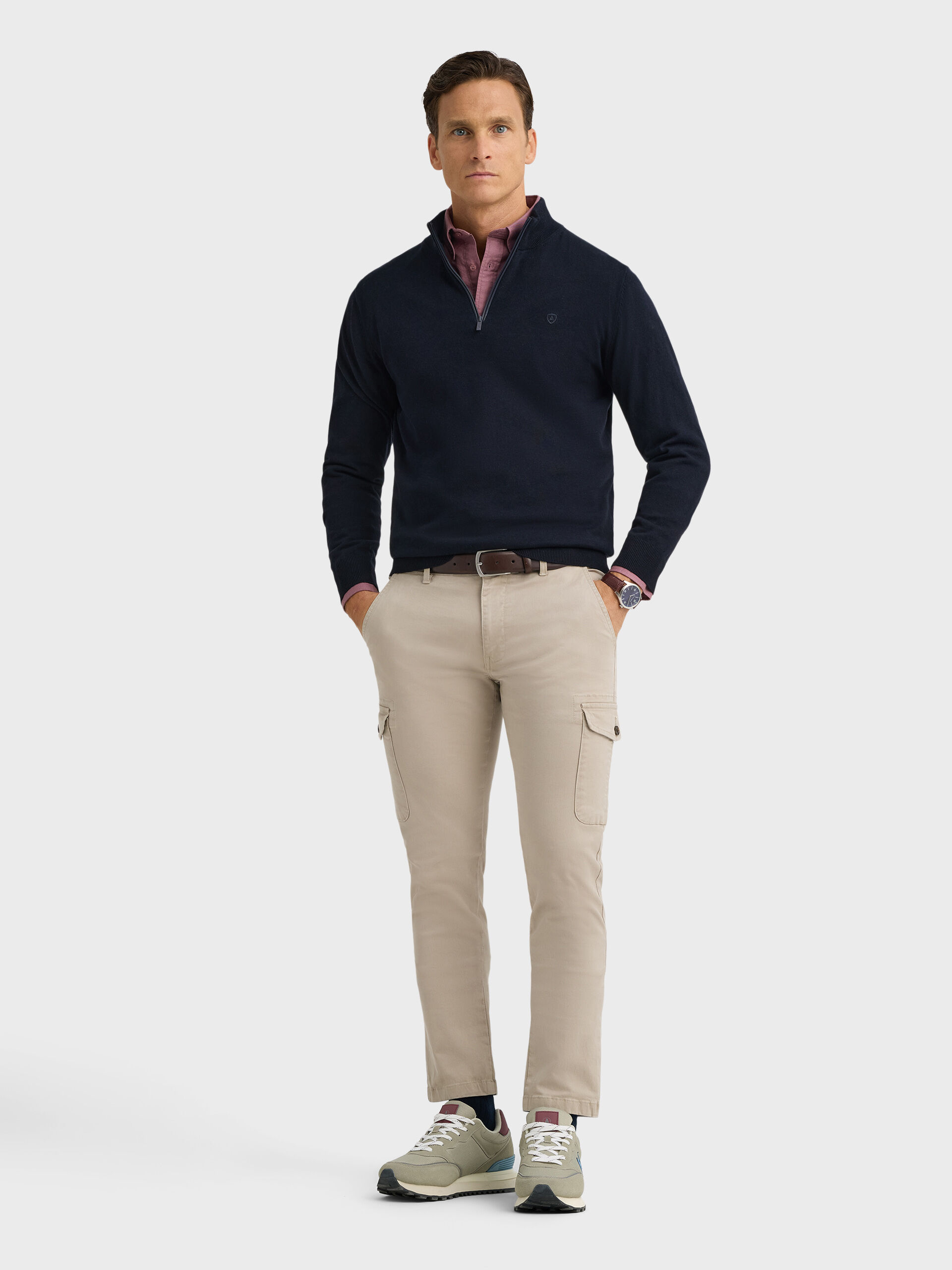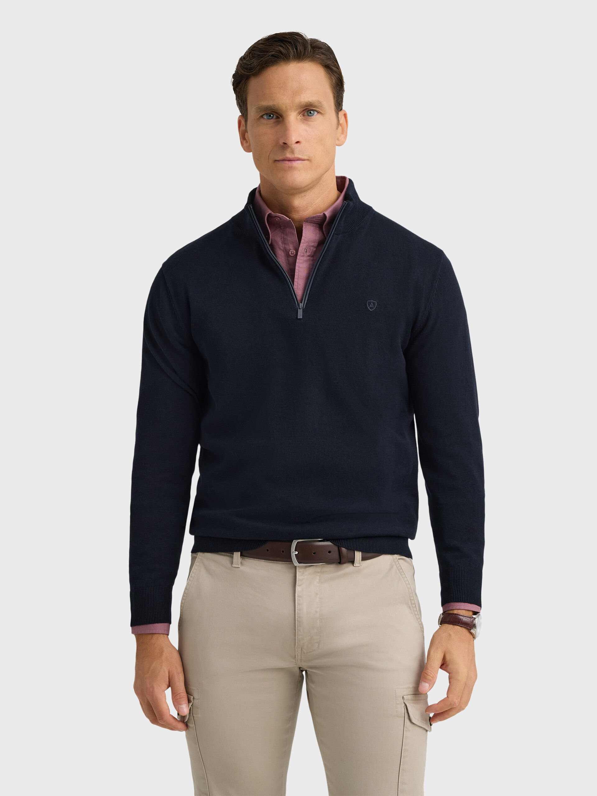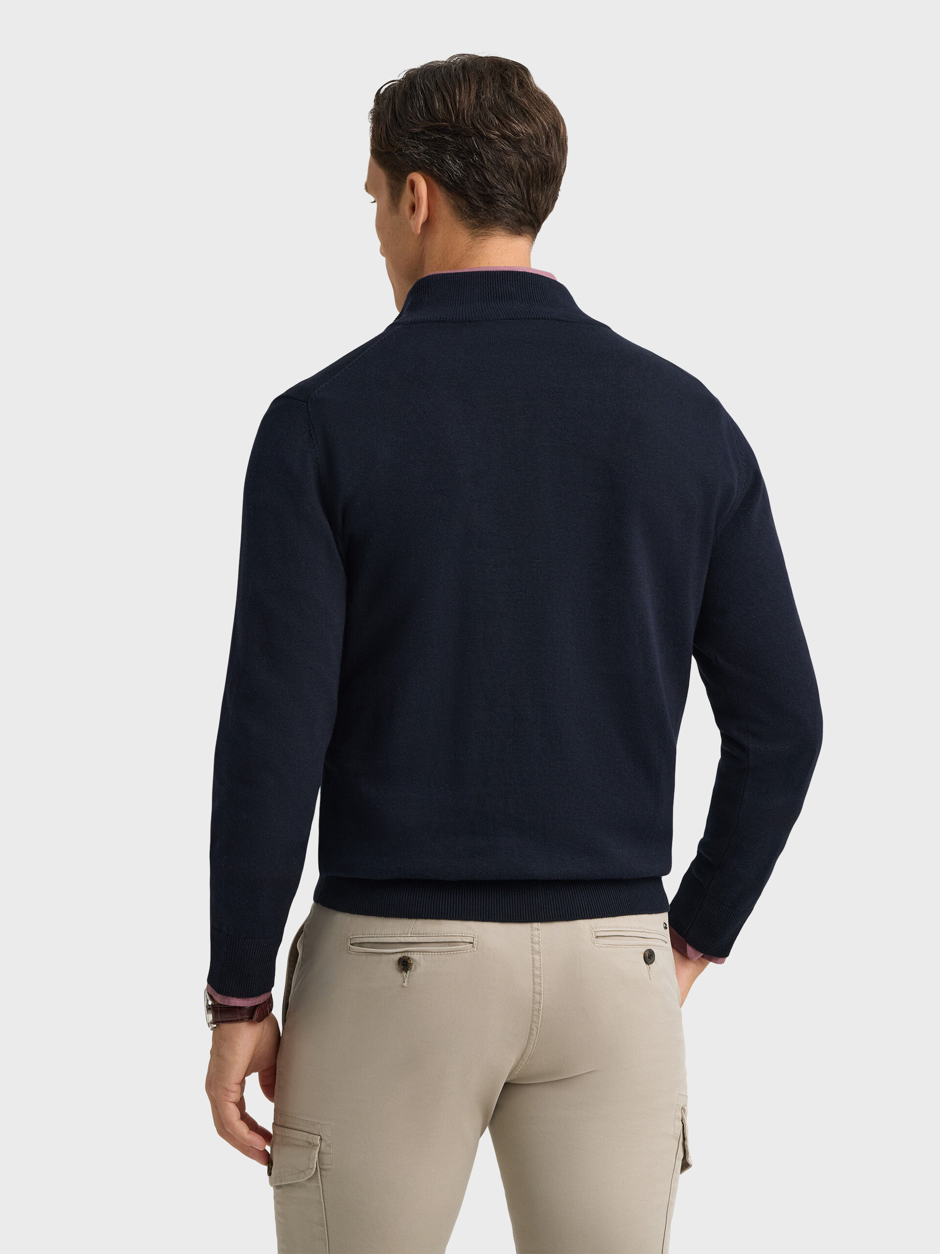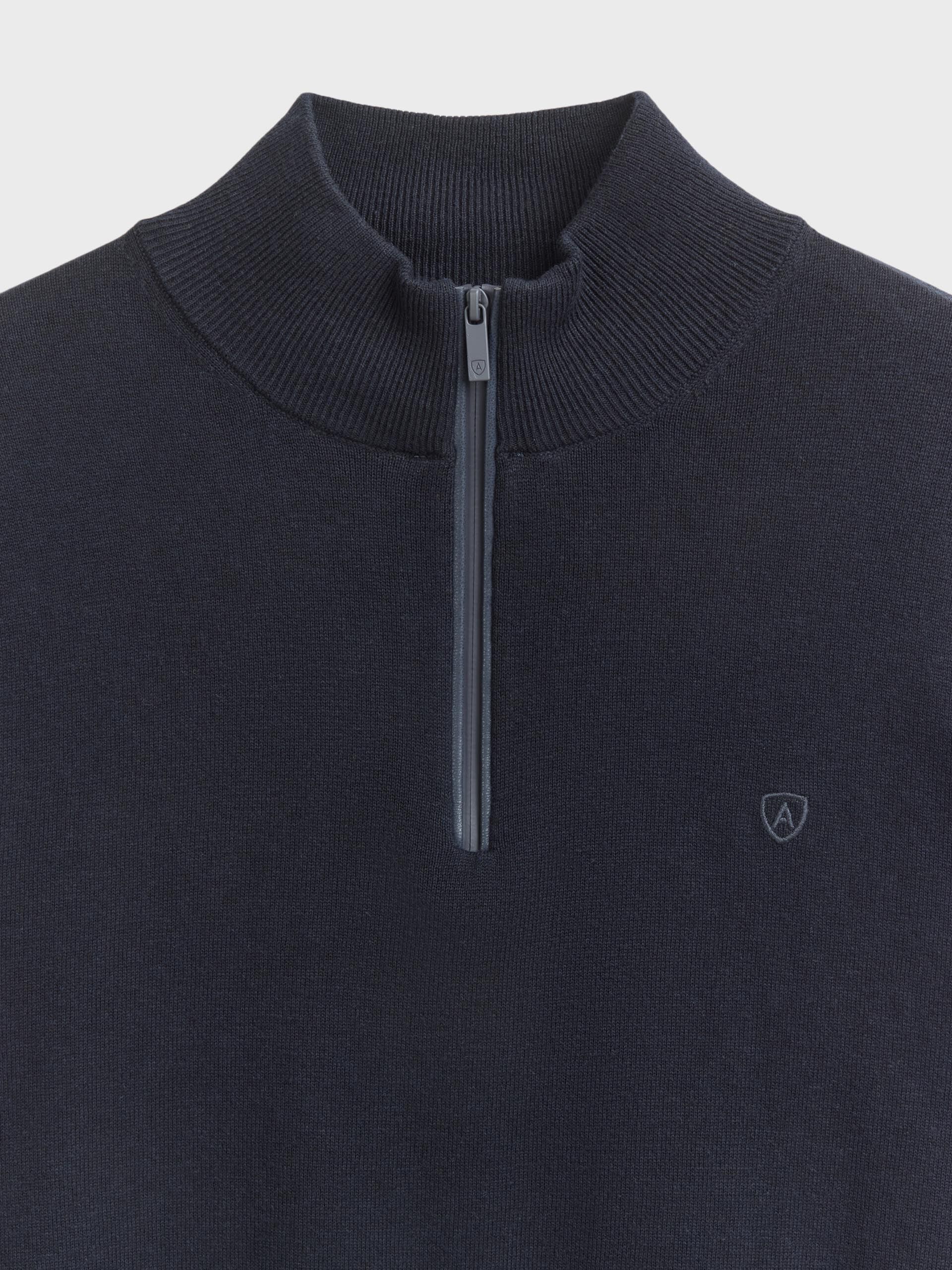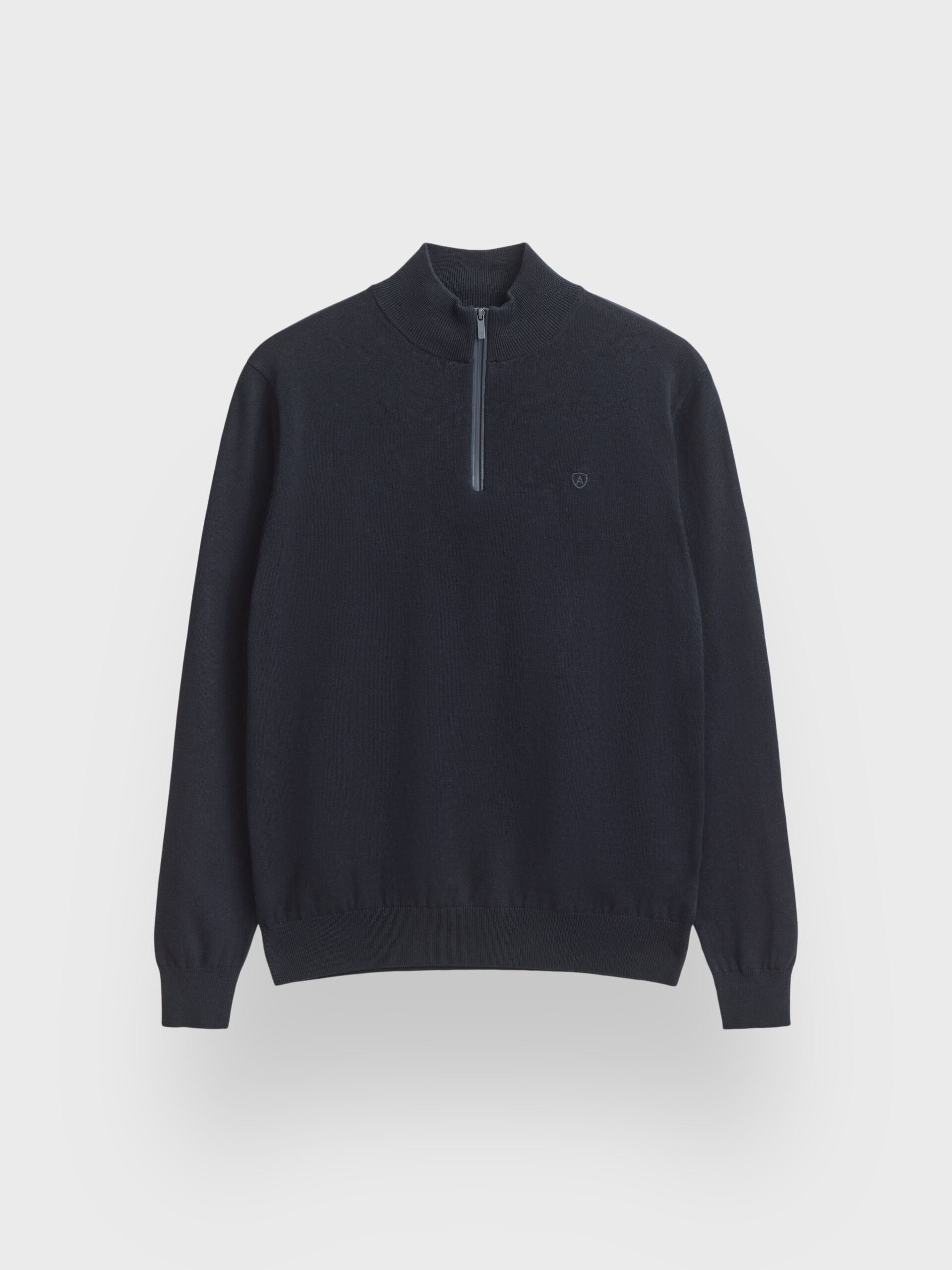 Jersey de corte regular con cuello alto de medio cierre mediante cremallera. Confeccionado en algodón, logo bordado en el frontal al tono y cuello, puños y bajo en acabado ribeteado.