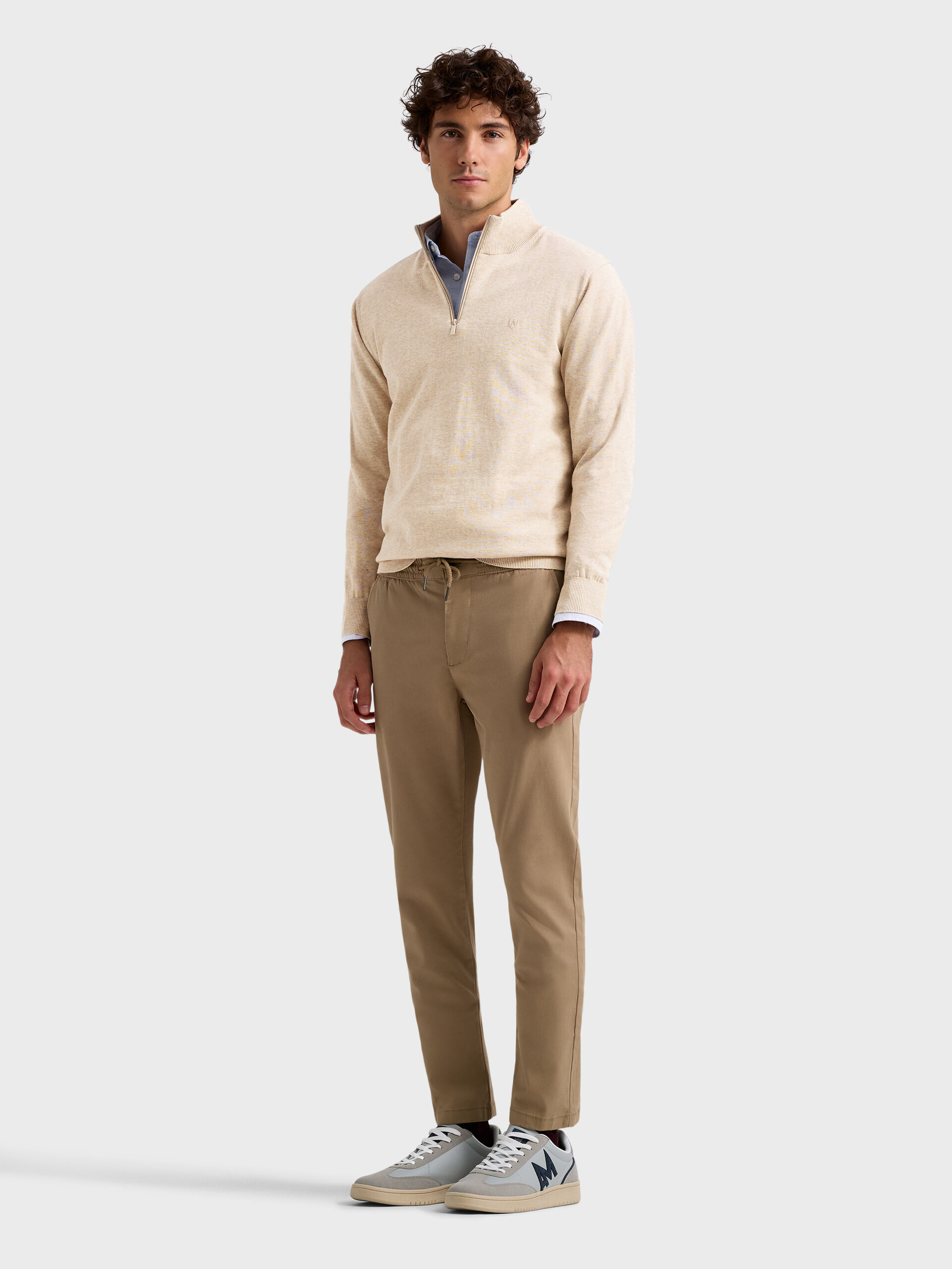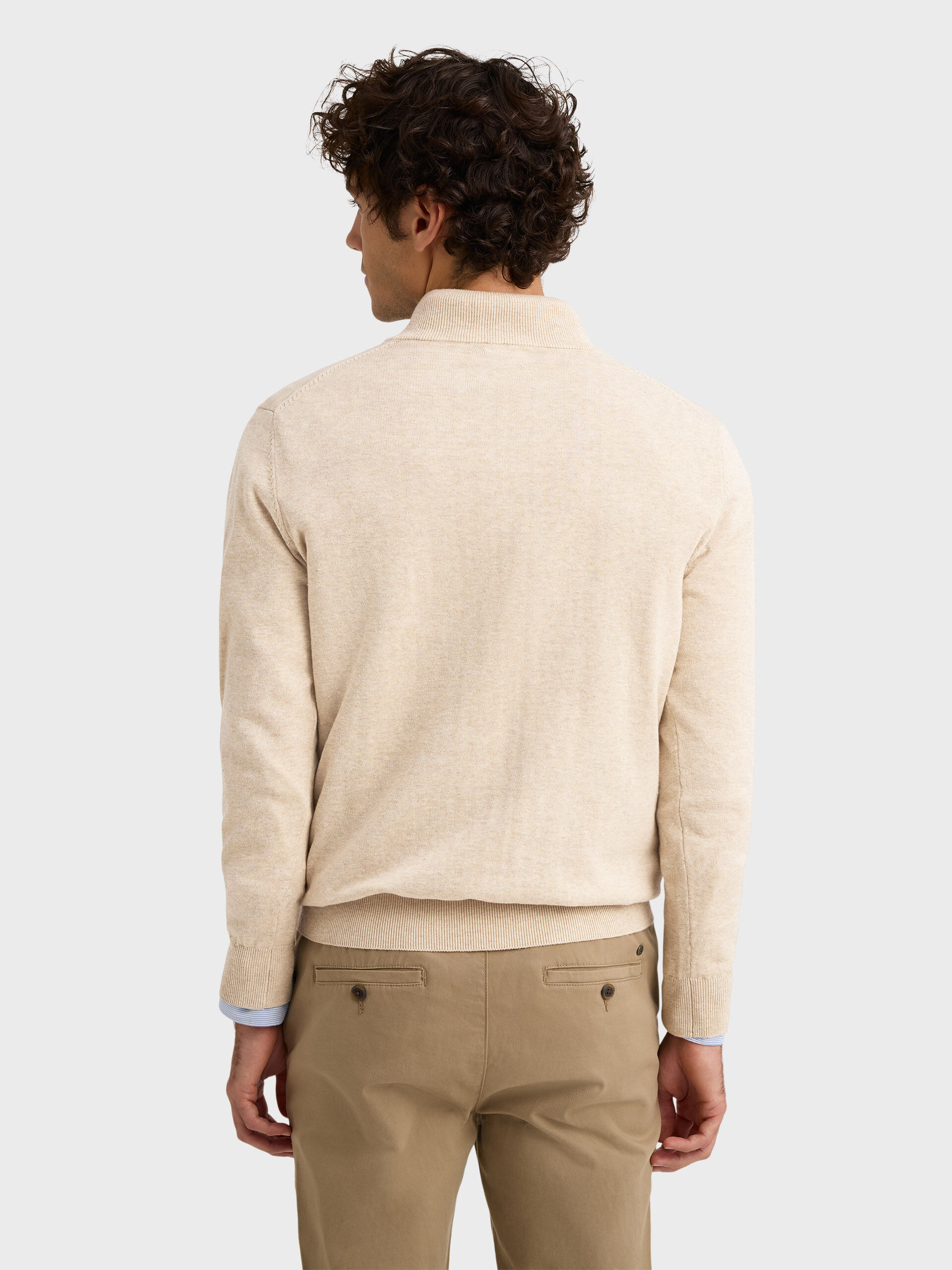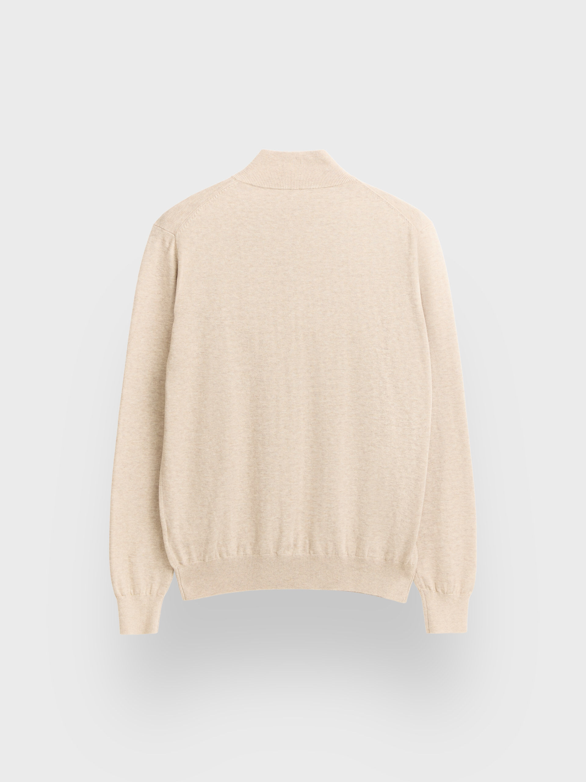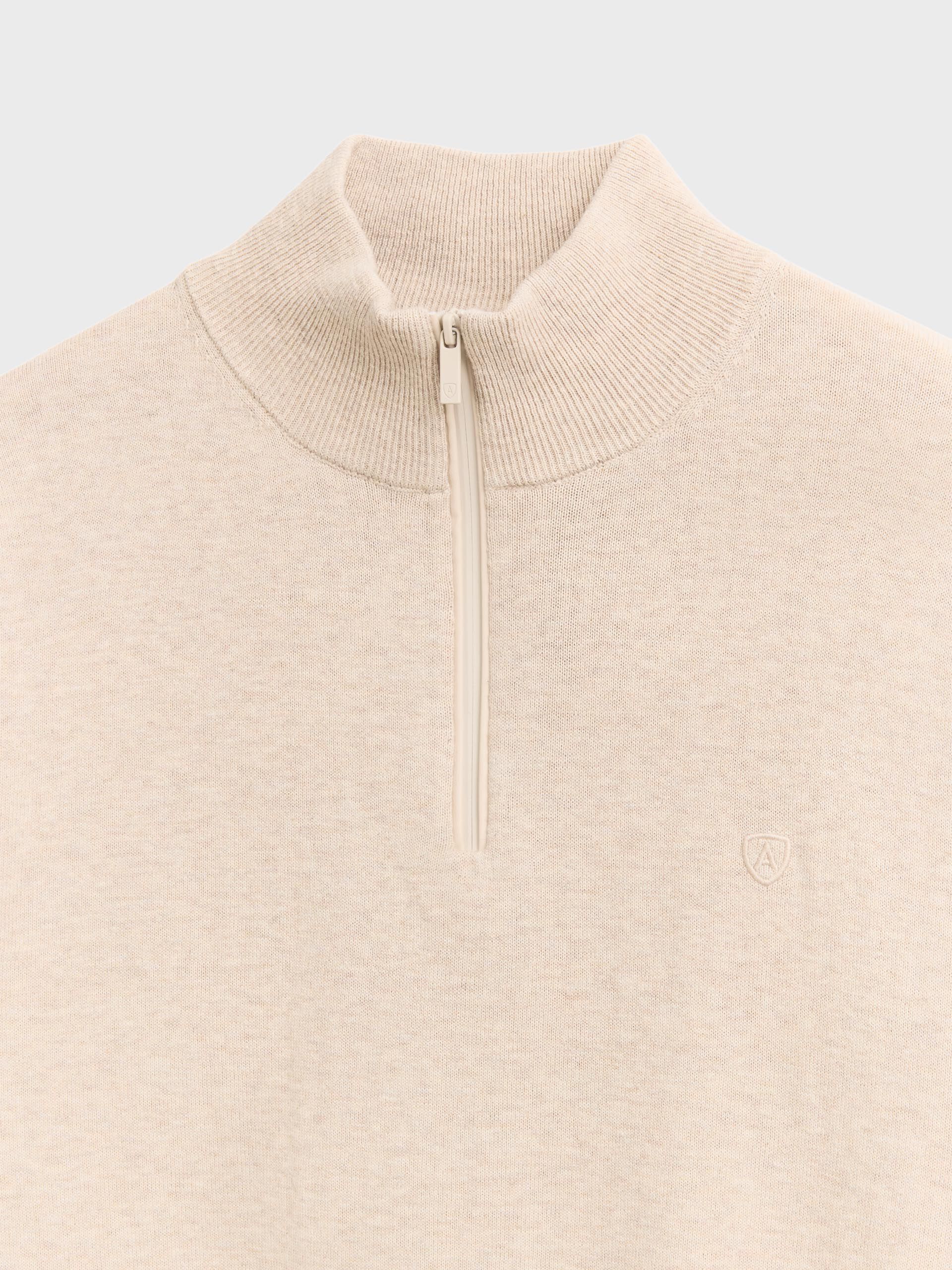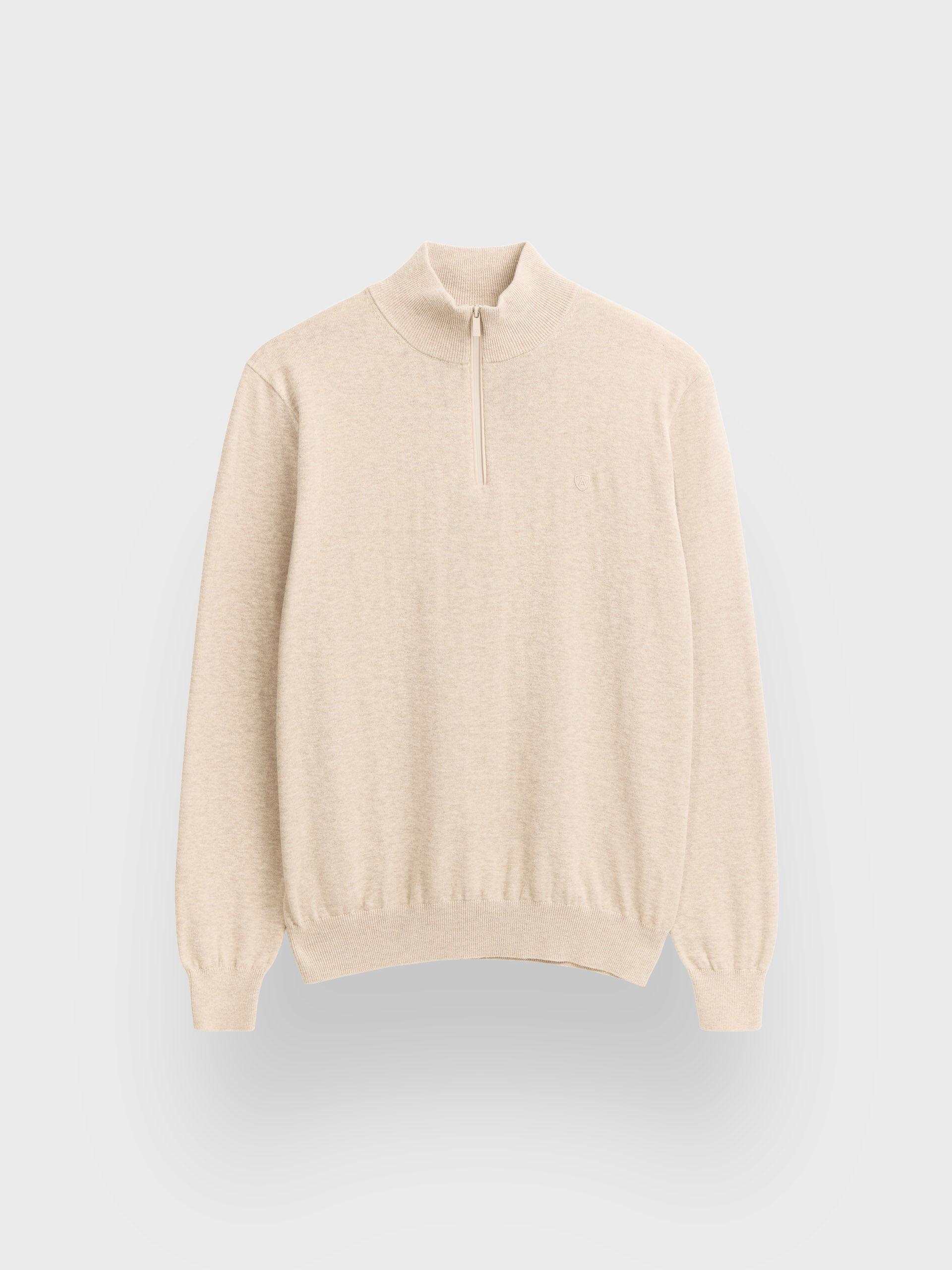 Jersey de corte regular con cuello alto de medio cierre mediante cremallera. Confeccionado en algodón, logo bordado en el frontal al tono y cuello, puños y bajo en acabado ribeteado.