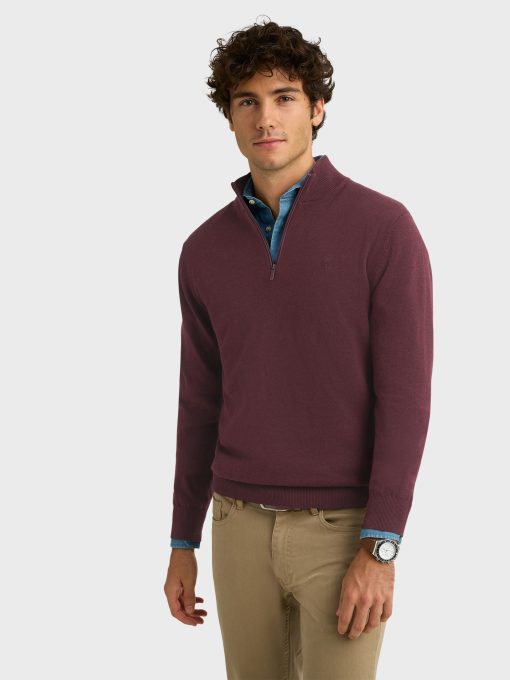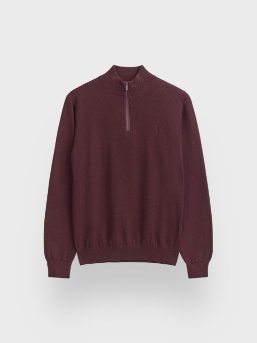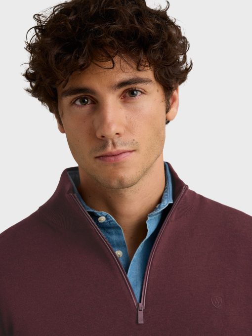 Jersey de corte regular con cuello alto de medio cierre mediante cremallera. Confeccionado en algodón, logo bordado en el frontal al tono y cuello, puños y bajo en acabado ribeteado.