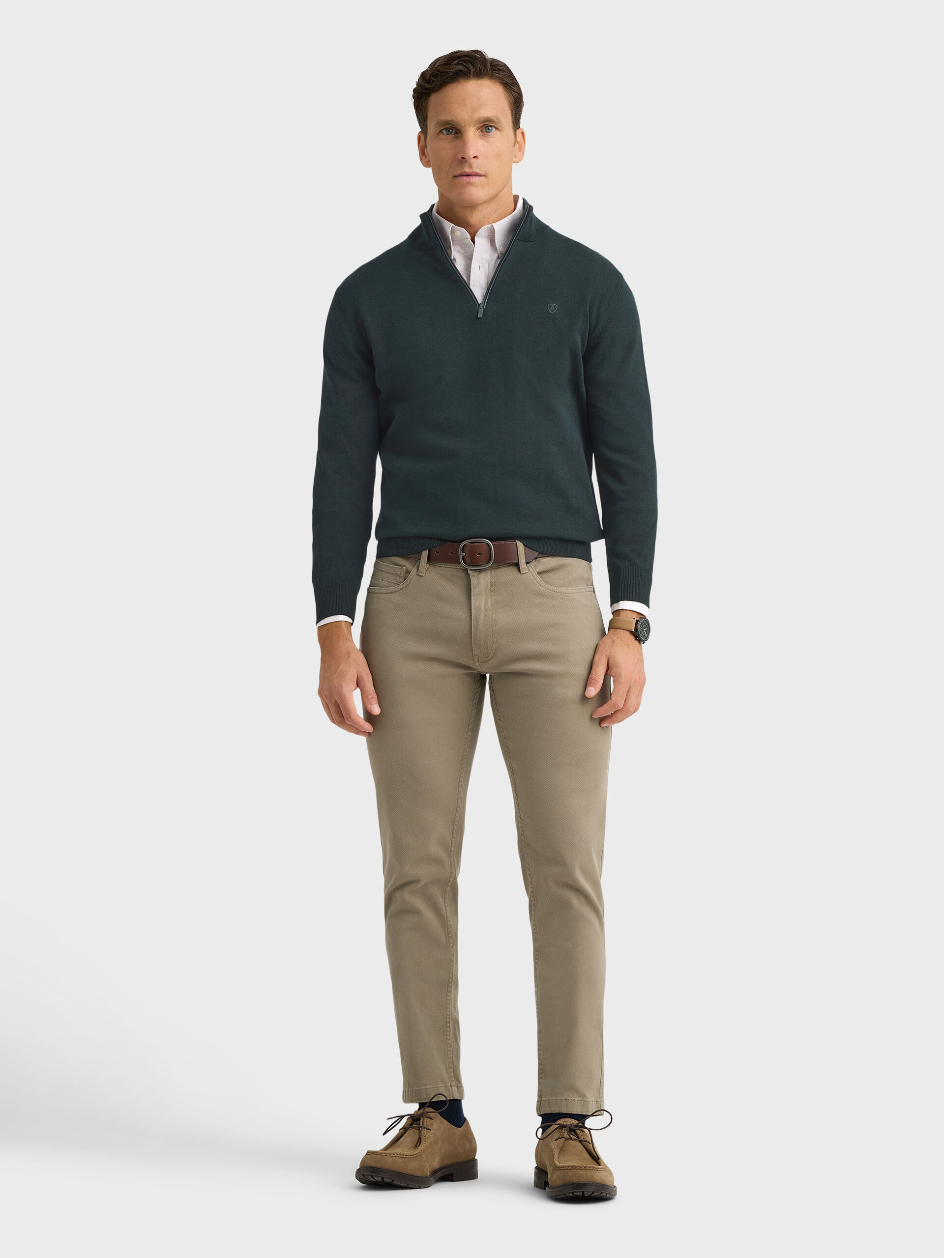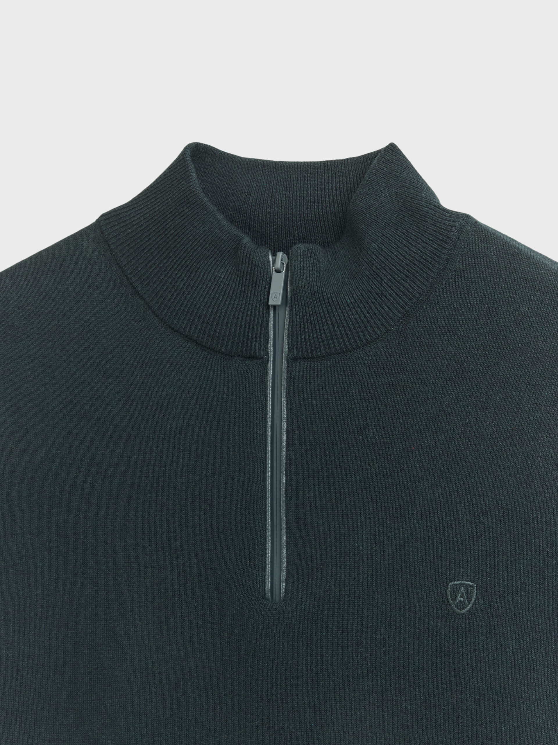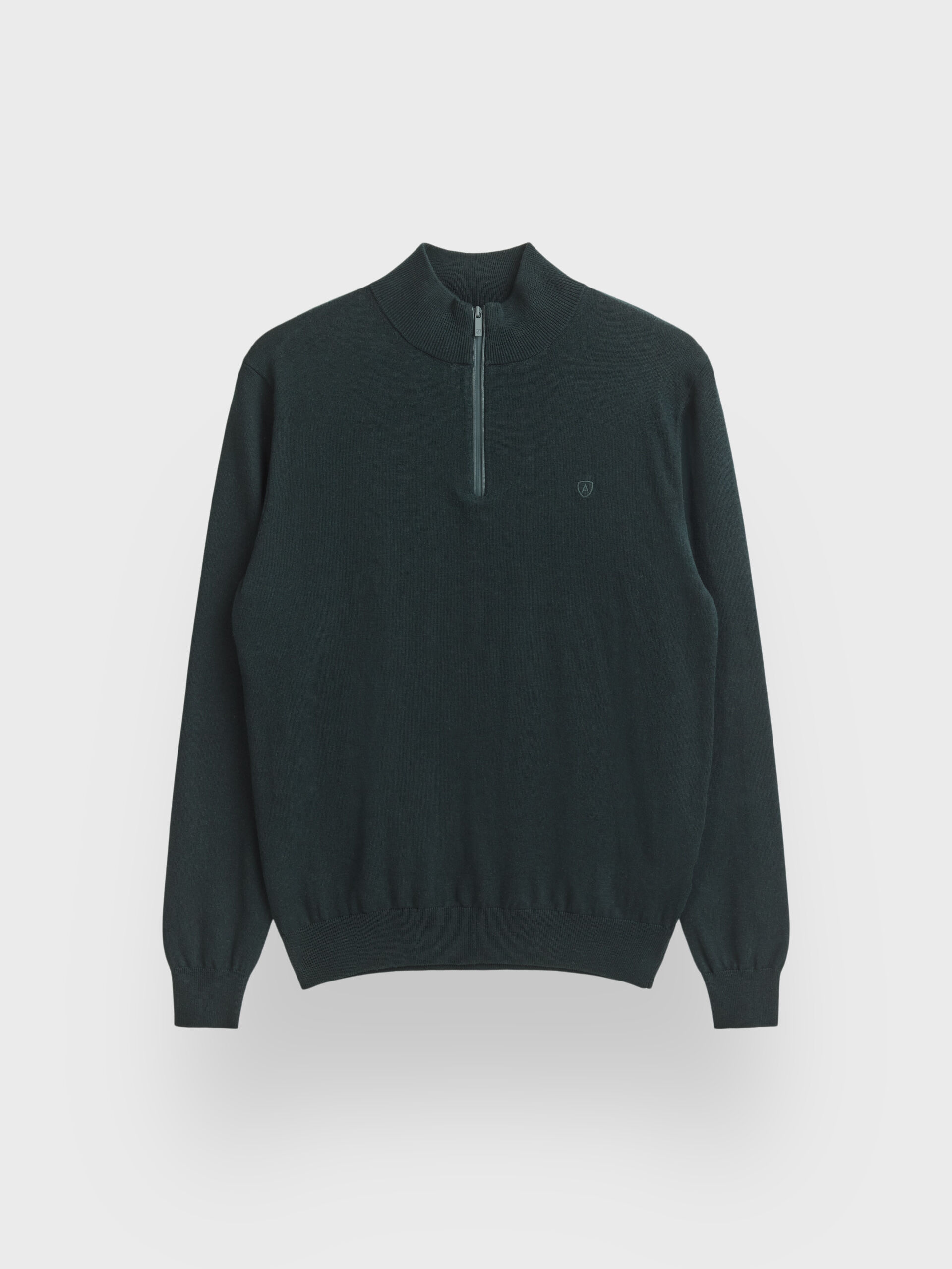 Jersey de corte regular con cuello alto de medio cierre mediante cremallera. Confeccionado en algodón, logo bordado en el frontal al tono y cuello, puños y bajo en acabado ribeteado.