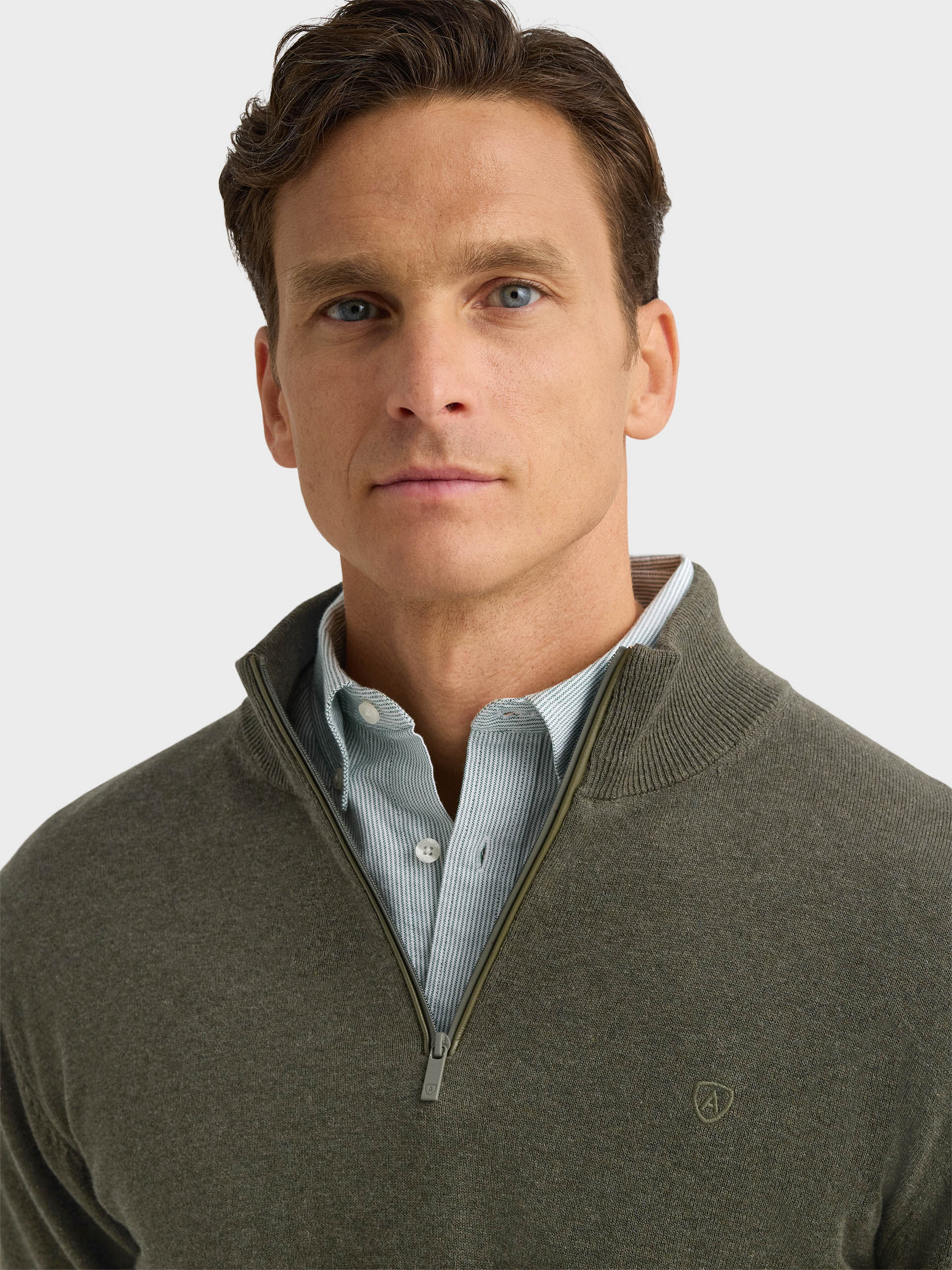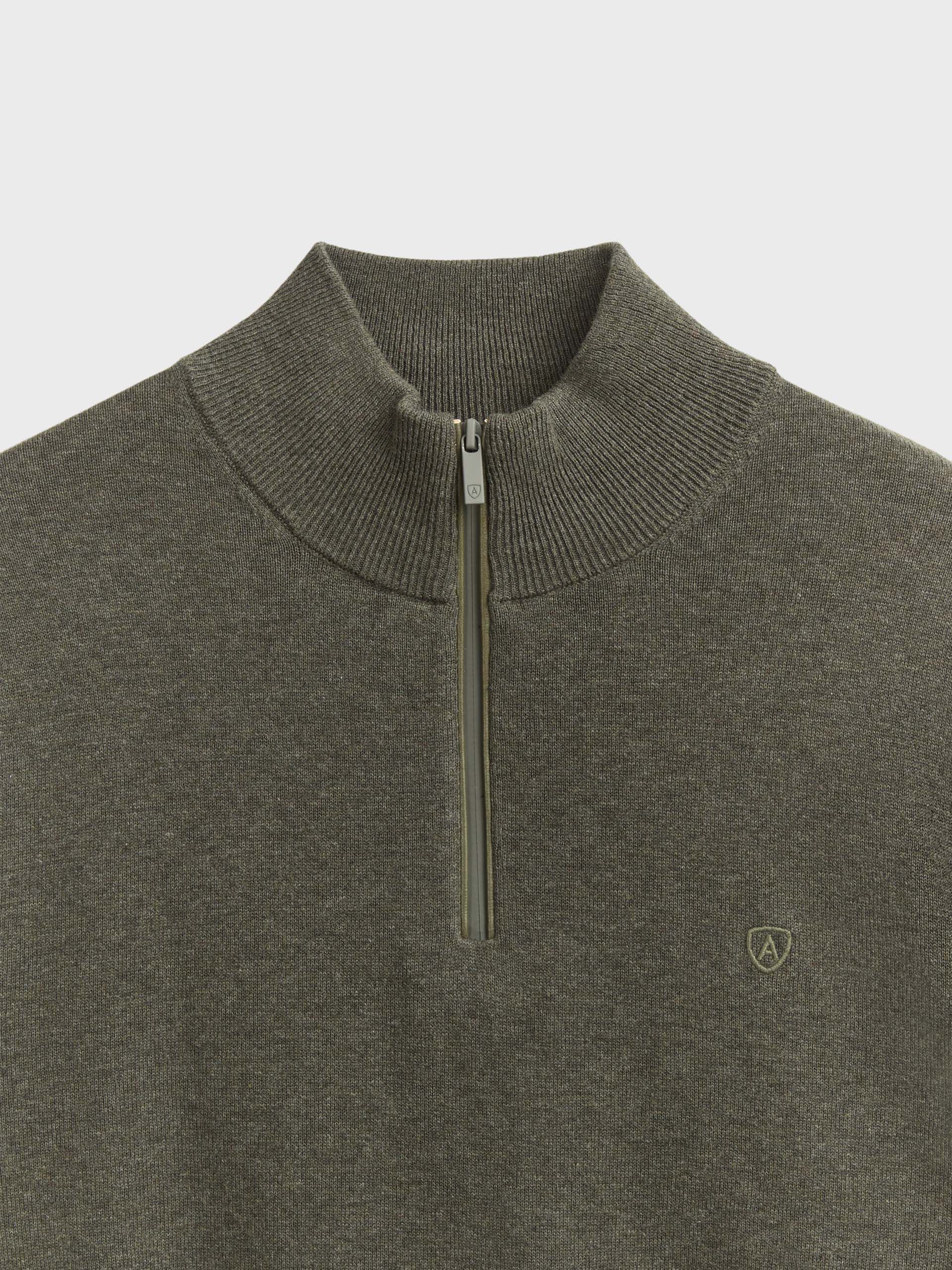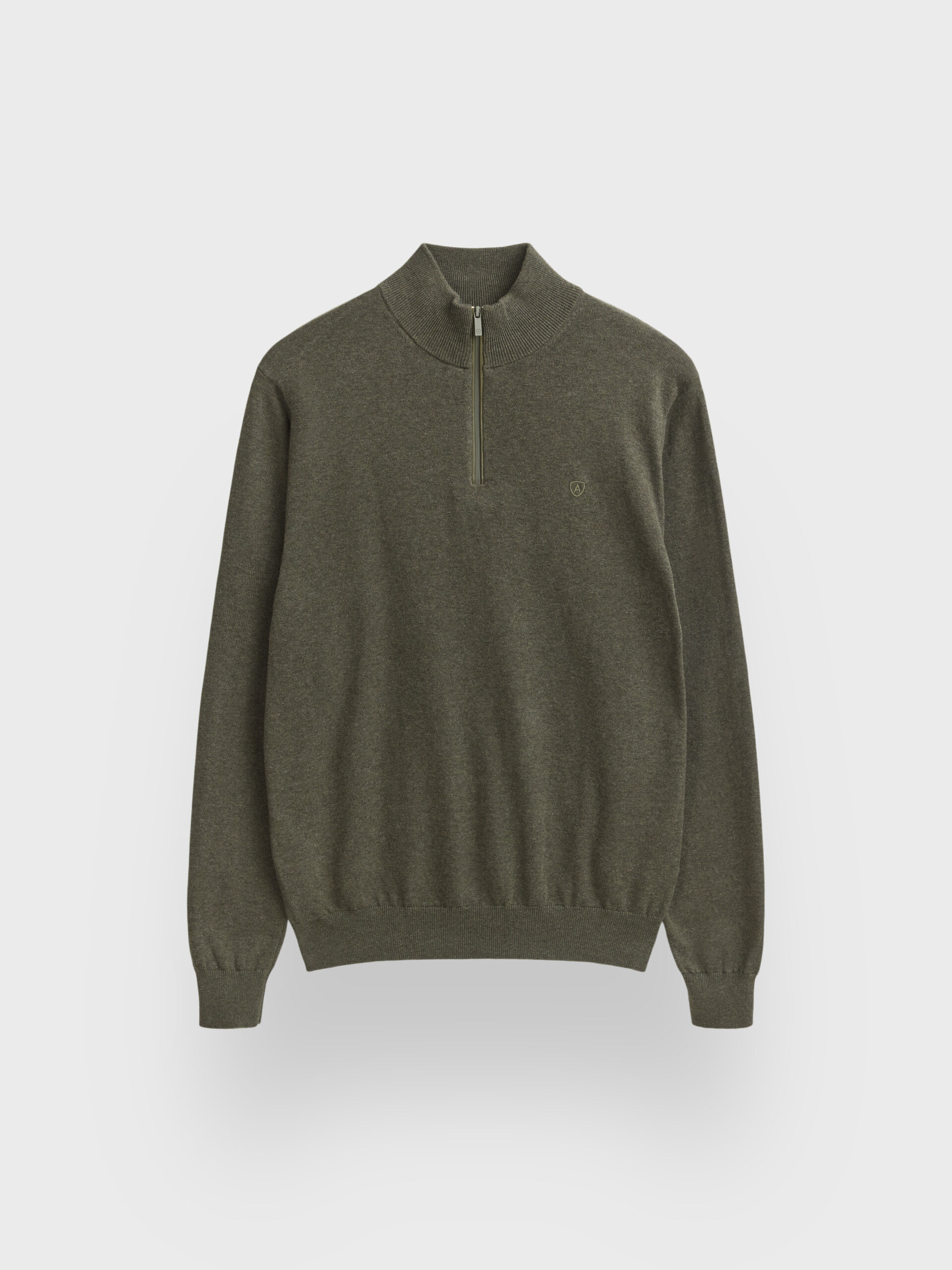 Jersey de corte regular con cuello alto de medio cierre mediante cremallera. Confeccionado en algodón, logo bordado en el frontal al tono y cuello, puños y bajo en acabado ribeteado.