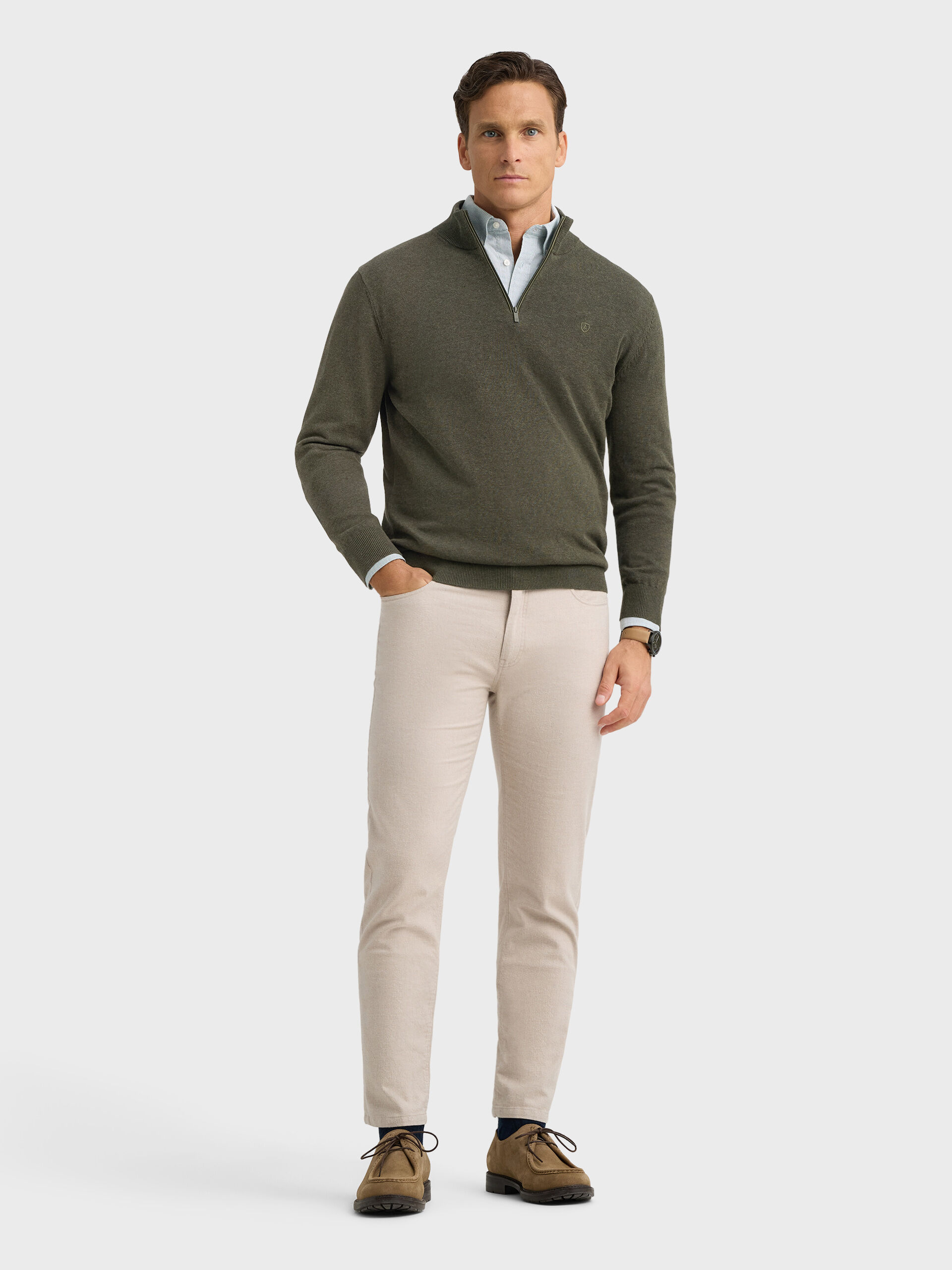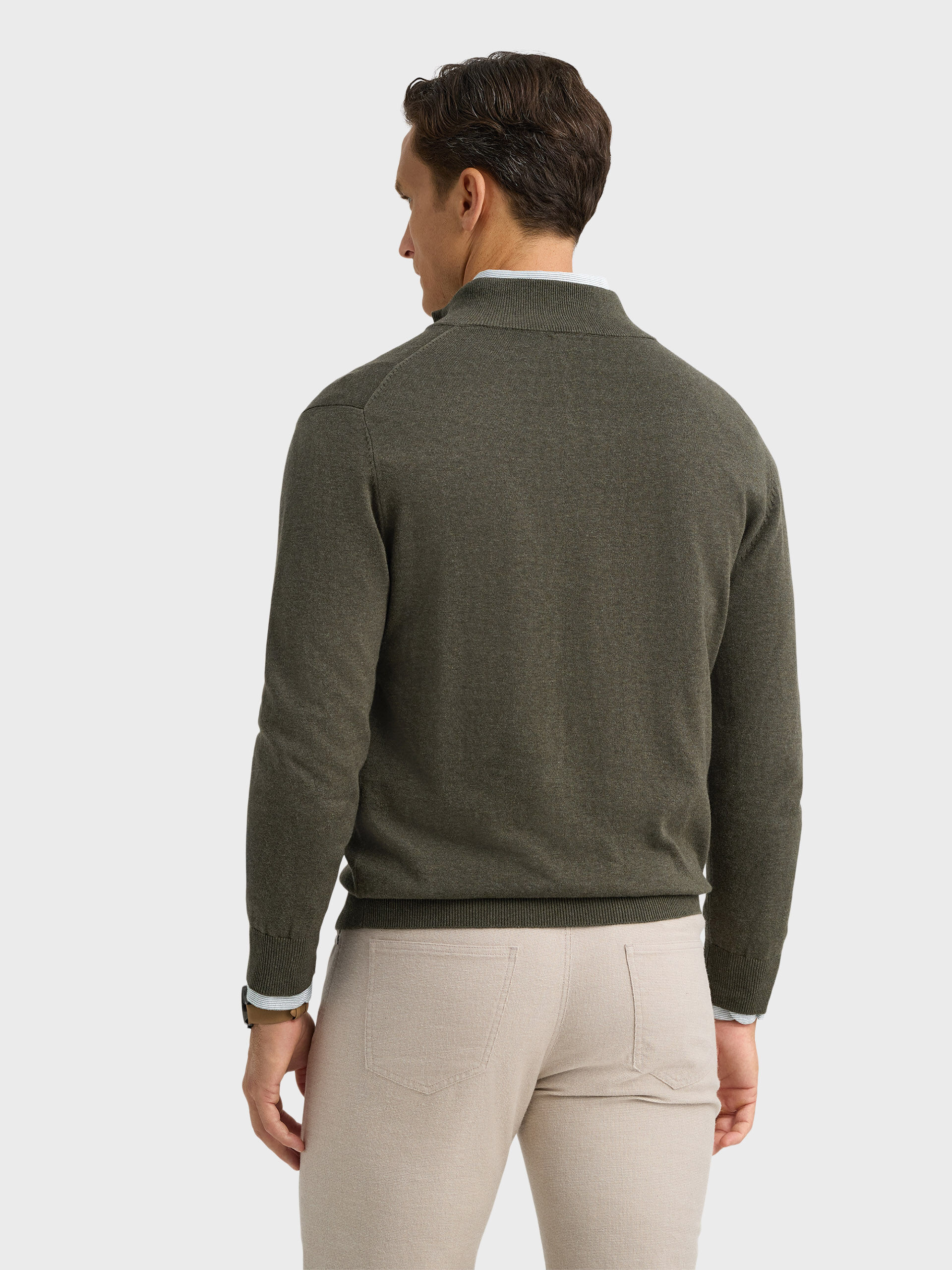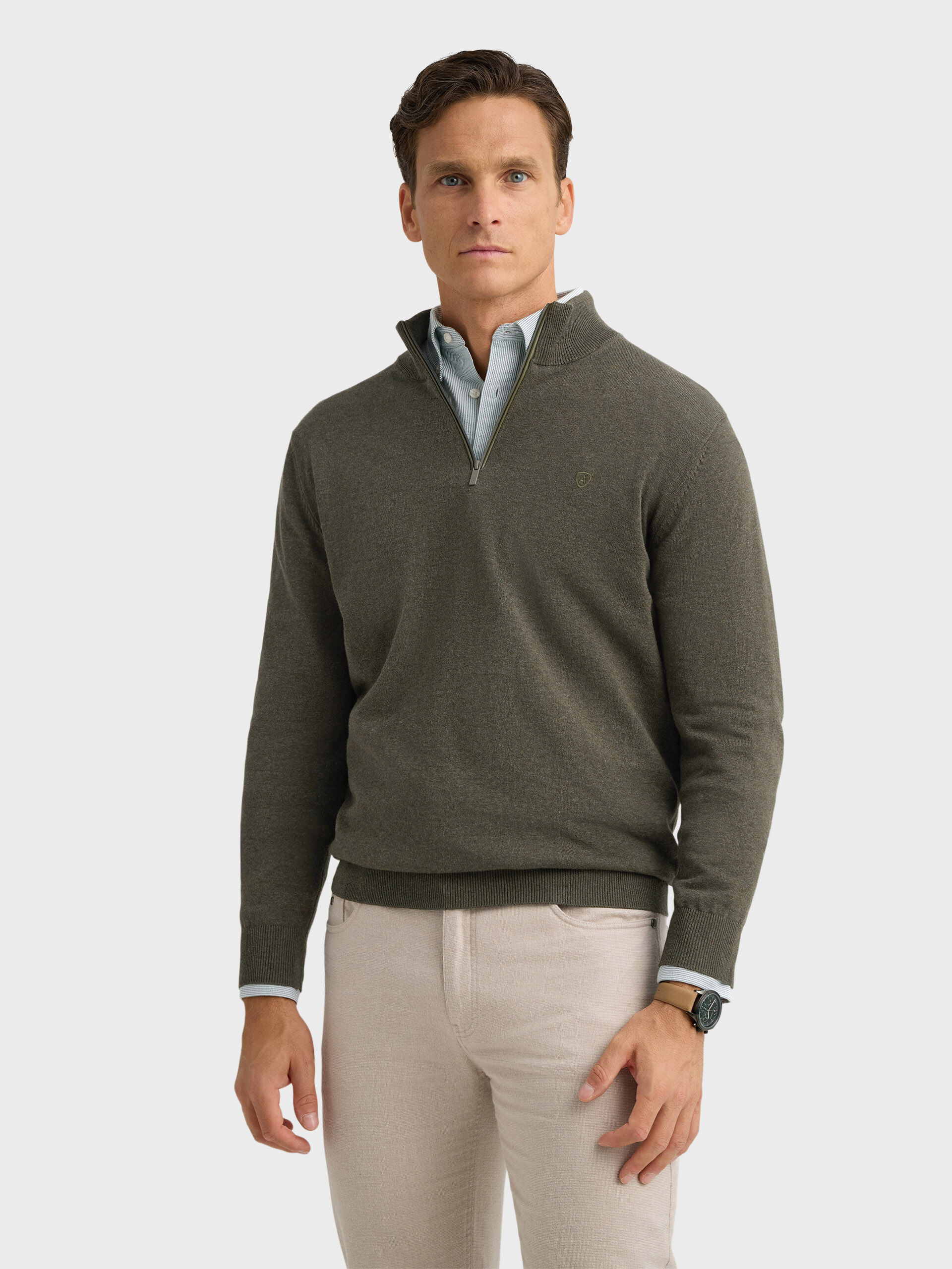 Jersey de corte regular con cuello alto de medio cierre mediante cremallera. Confeccionado en algodón, logo bordado en el frontal al tono y cuello, puños y bajo en acabado ribeteado.