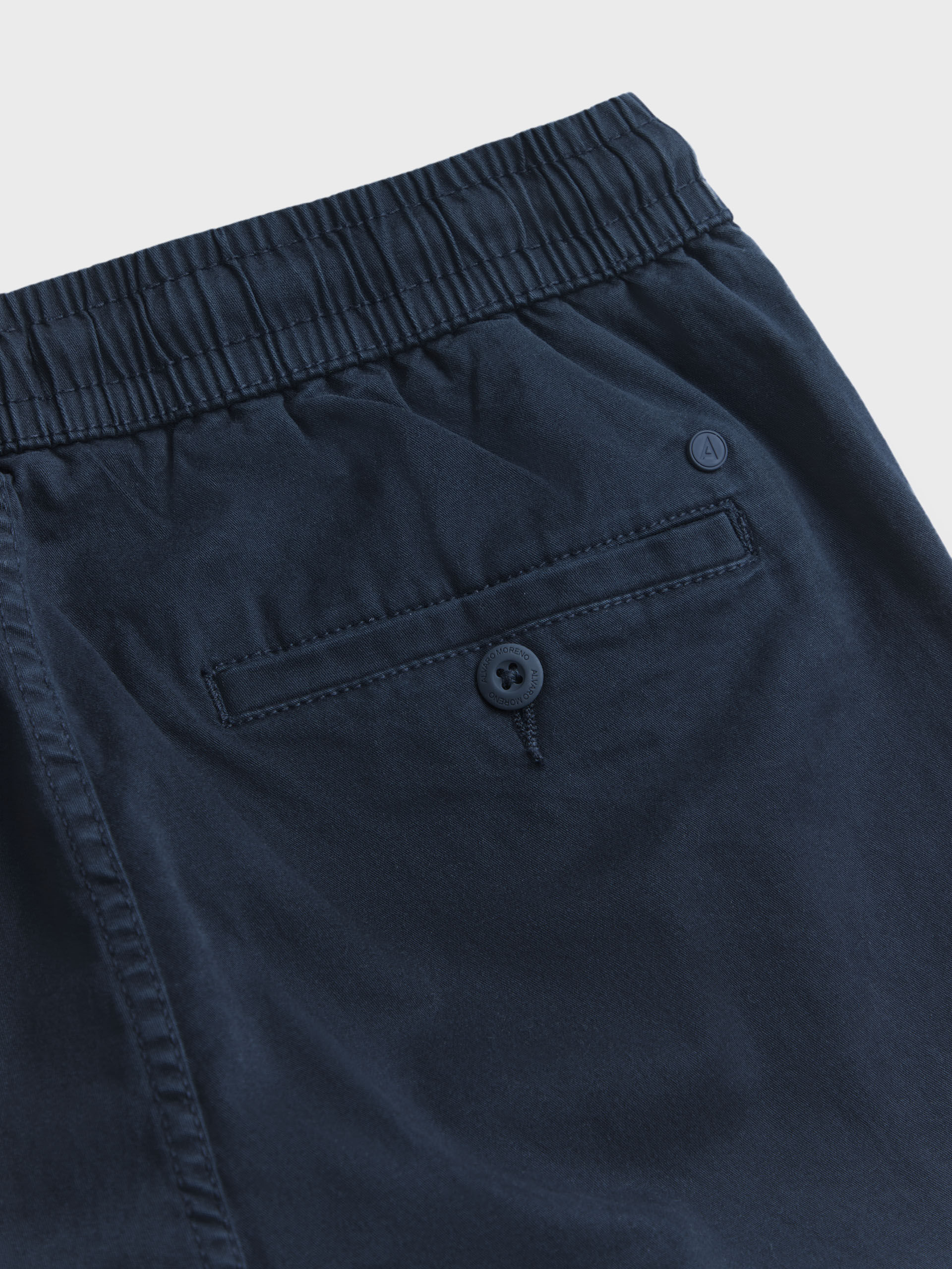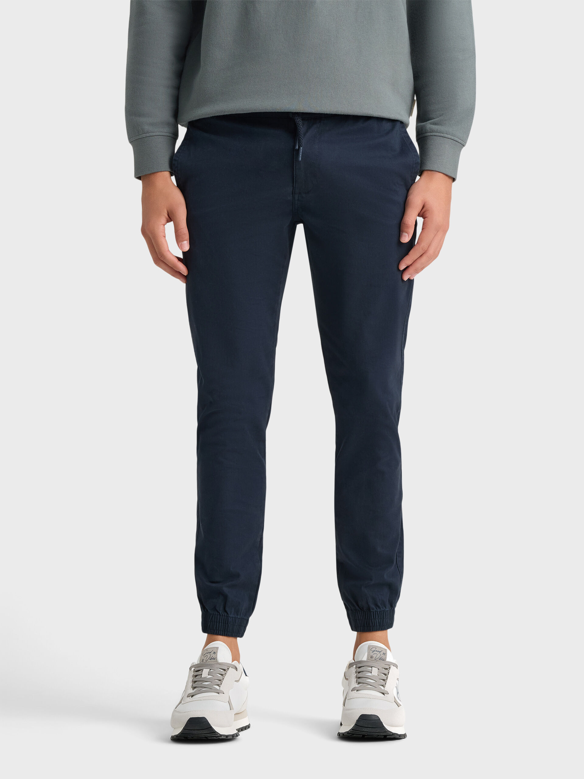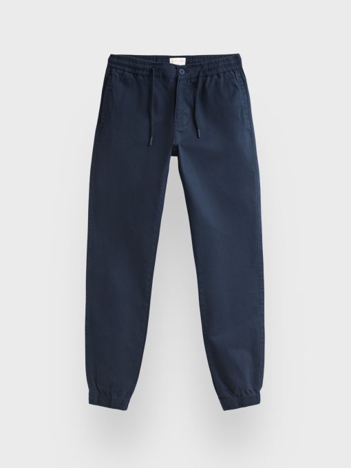 Pantalón con cinturilla elástica ajustable por cordones al tono y bajo con terminación de puño elástico. Cierre central mediante botón y cremallera, dos bolsillos en la parte delantera y dos en la parte trasera con detalle personalizado sobre uno de ellos.