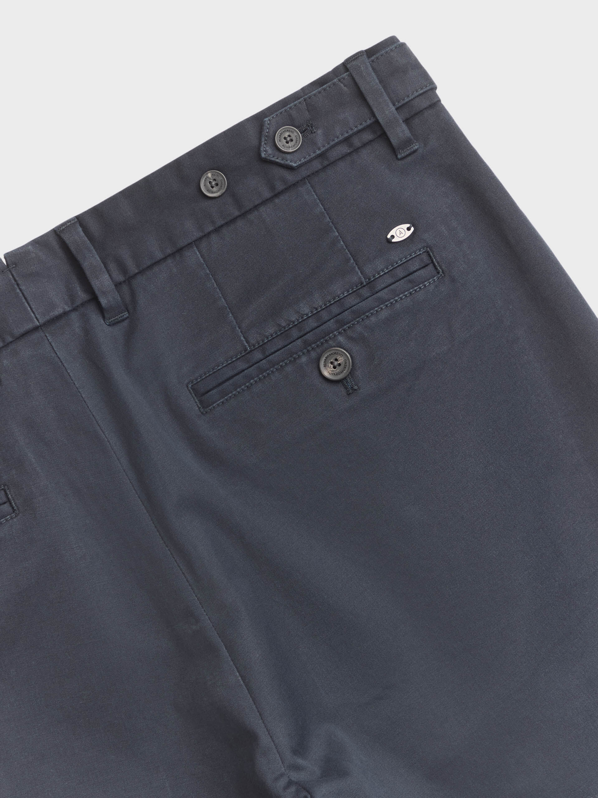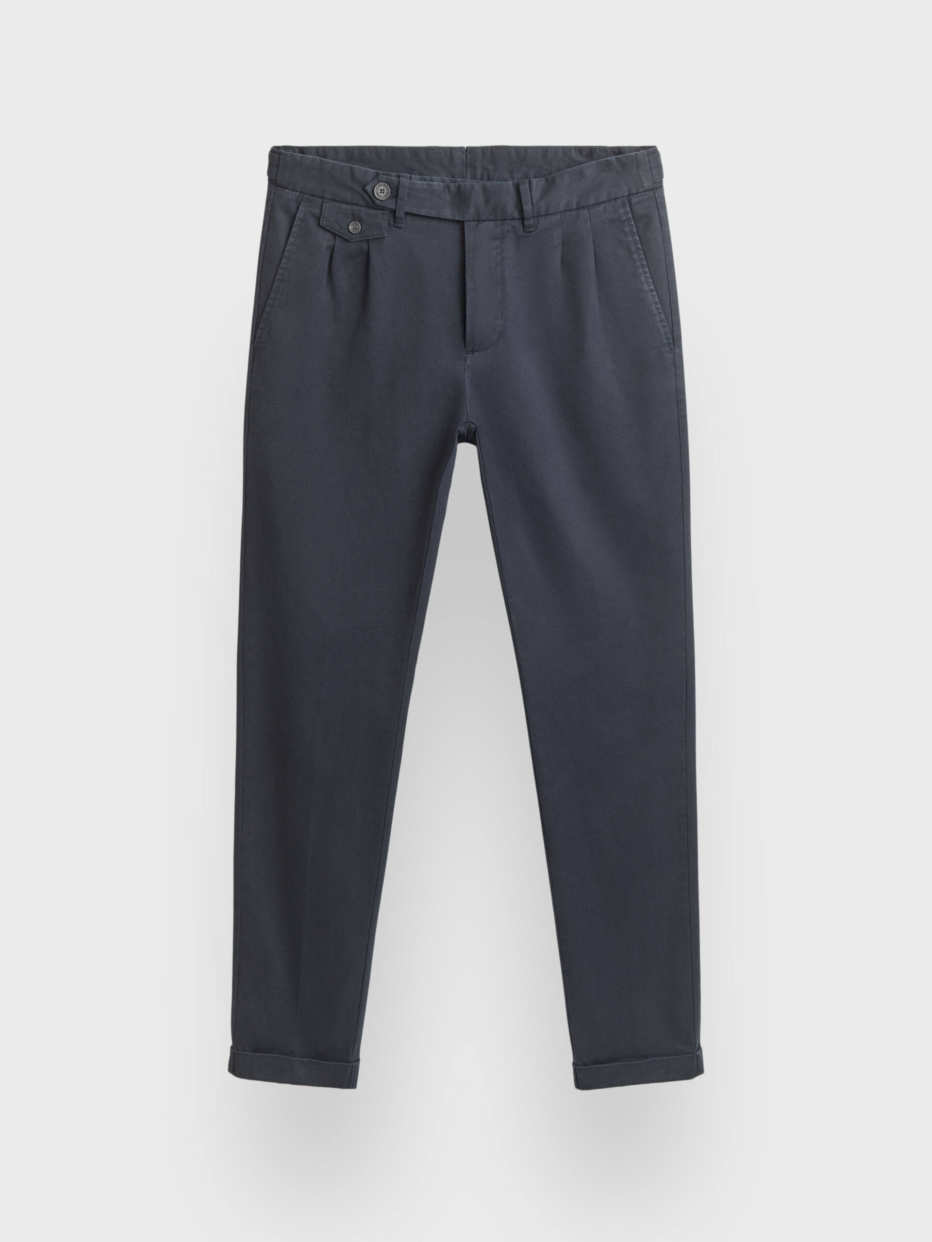 Pantalón de corte carrot fit con cierre delantero cruzado mediante dos botones y cremallera. Pinzas delante, ajustable en la cinturilla, dos bolsillos laterales y dos traseros de solapa. Logo grabado sobre un bolsillo trasero y bajo acabado con vuelta.