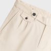 Pantalón de corte carrot fit con cierre delantero cruzado mediante dos botones y cremallera. Pinzas delante, ajustable en la cinturilla, dos bolsillos laterales y dos traseros de solapa. Logo grabado sobre un bolsillo trasero y bajo acabado con vuelta.