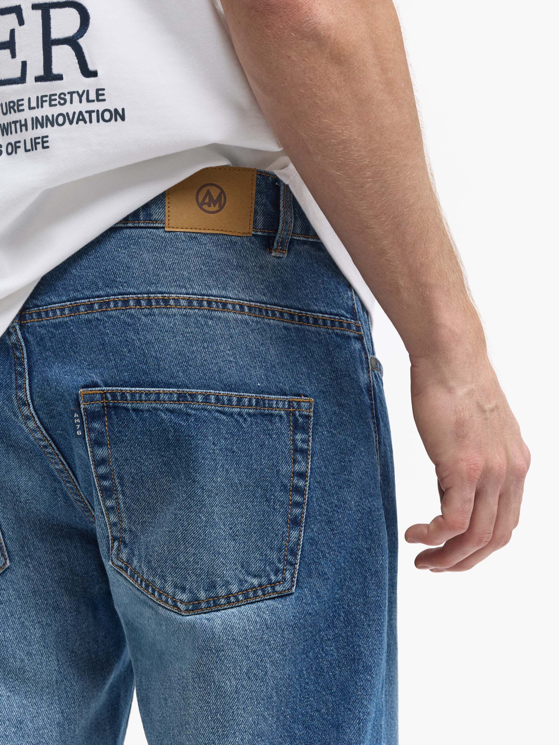 Pantalón denim de corte relaxed fit aportando comodidad y un estilo más casual. Cuenta con cinco bolsillos y cierre central mediante botón y cremallera, pespuntes en color camel, fornituras personalizadas y etiqueta en efecto piel en la cinturilla.