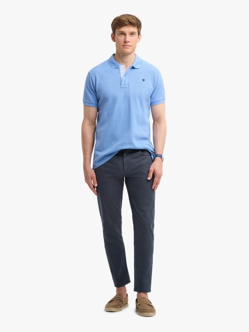 Pantalón con cierre central mediante cremallera y botón, tres bolsillos en el frontal, bolsillo cerillero con detalle personalizado al tono y bolsillos en la parte trasera con pespunte al tono y etiqueta personalizada en la cinturilla en aspecto piel.