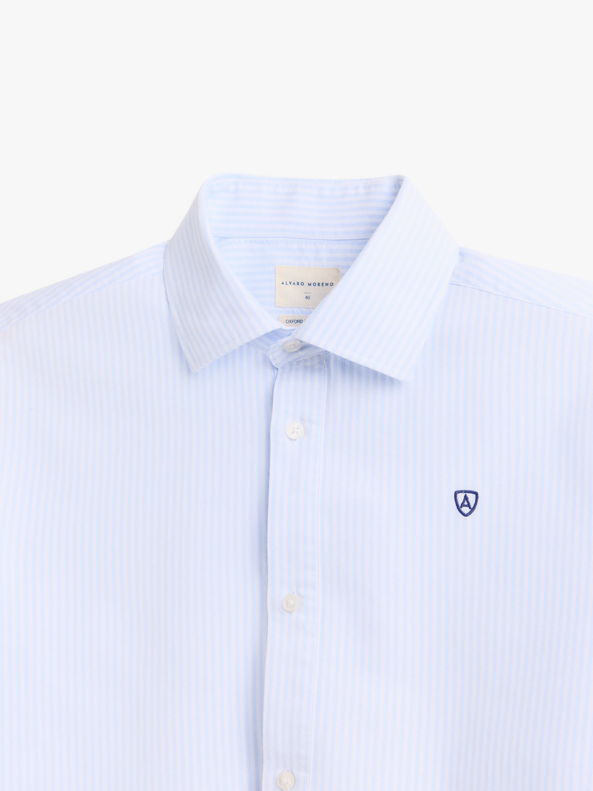 Alvaro Moreno Hombre Ropa Polera Oxford Rayas Celeste