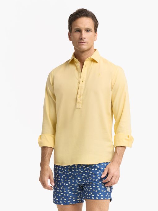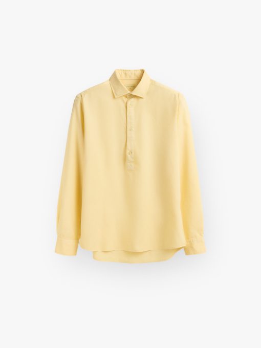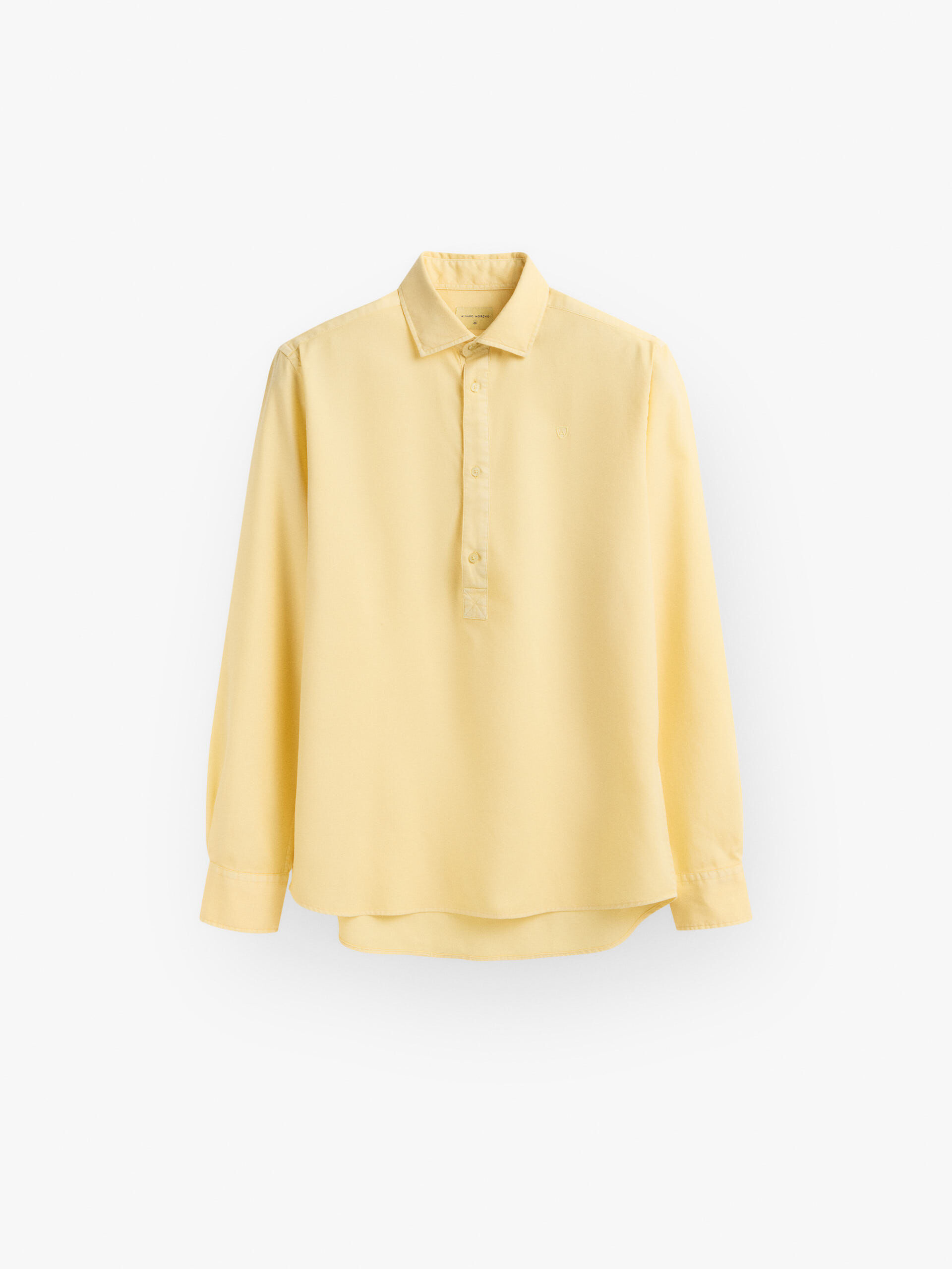 Camisa lisa estilo polera con medio cierre central de hasta cuatro botones,cuello de solapa, manga larga con puños simples y logo de la marca grabado en el frontal. Corte regular fit.