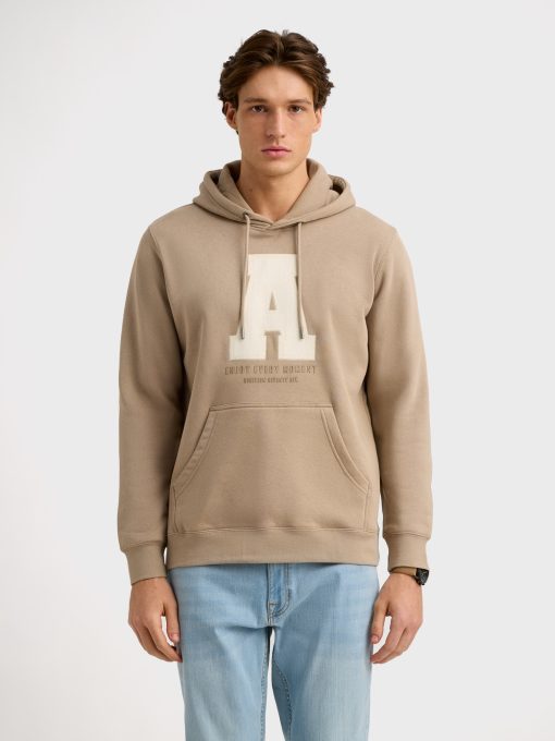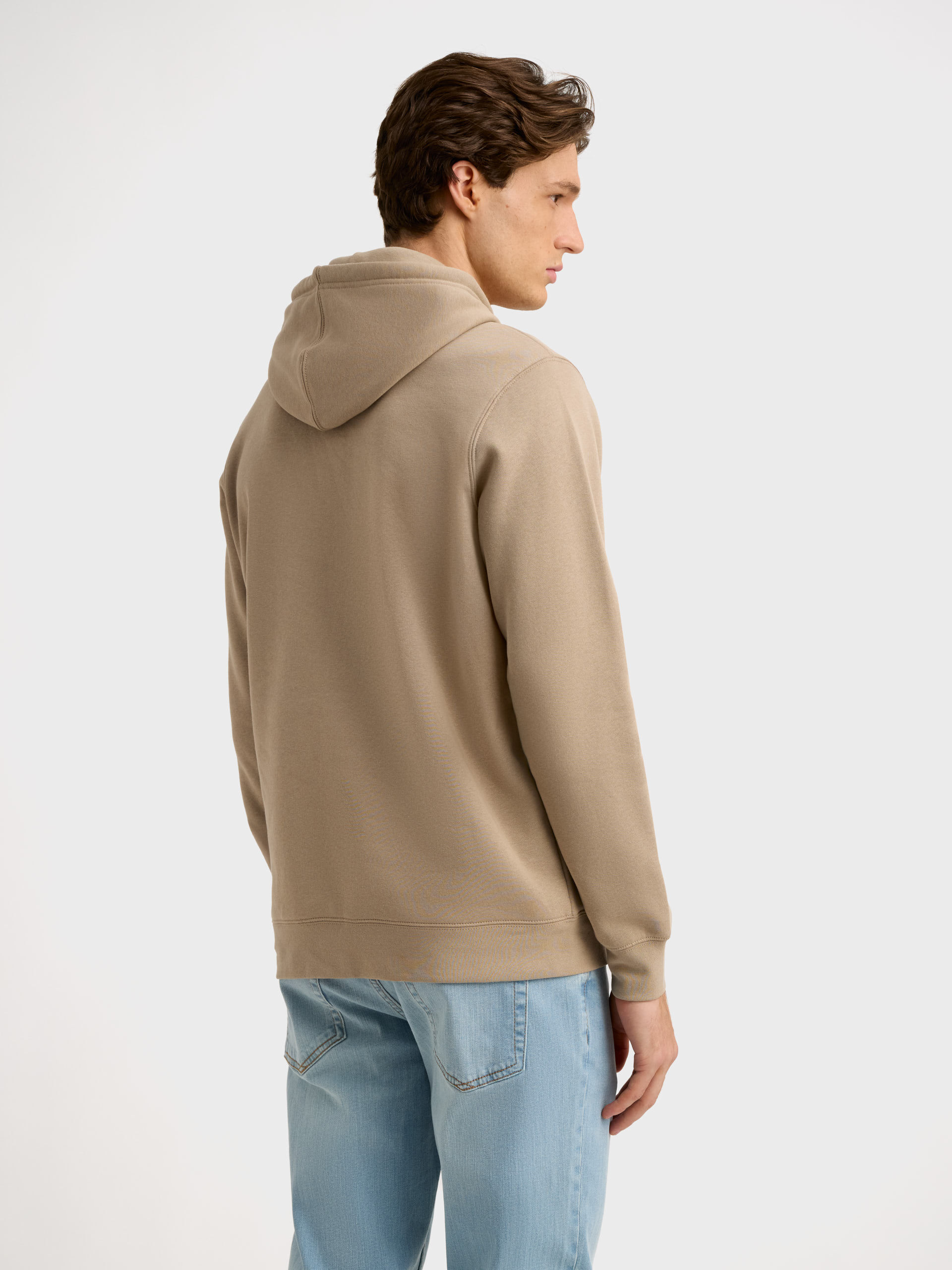 Sudadera de corte regula fit con estampación personalizada en el frontal. Cuenta con gorro ajustable mediante cordón al tono, bolsillo estilo canguro en el frontal y puños y bajo en acabado elástico.