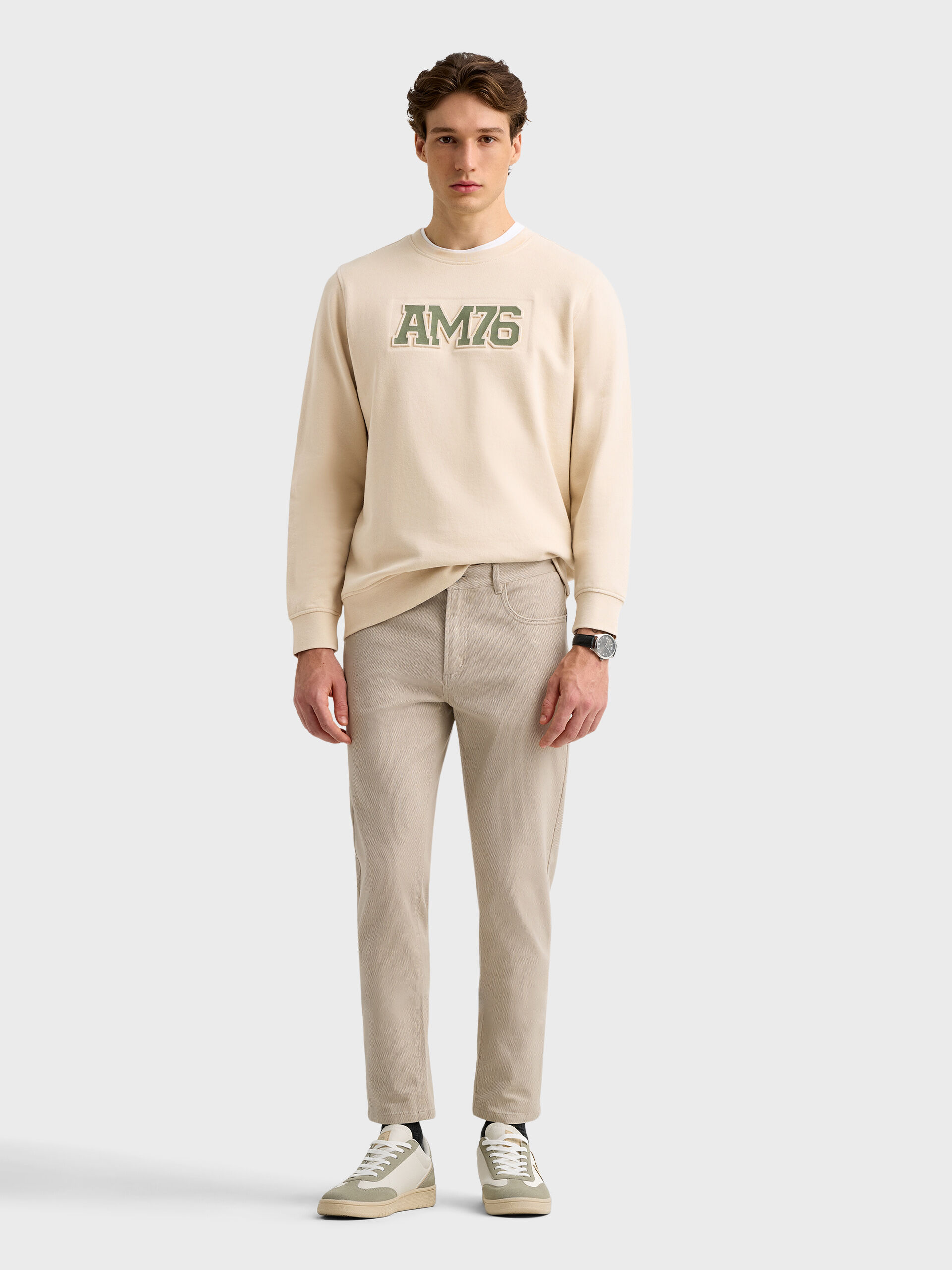 Sudadera de corte regular fit confeccionada en algodón. Cuenta con cuello redondo, estampación personalizada en el frontal y etiqueta canvas en el lateral. Puños y bajo en punto elástico.