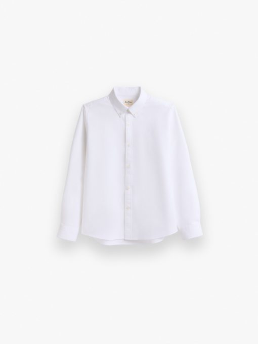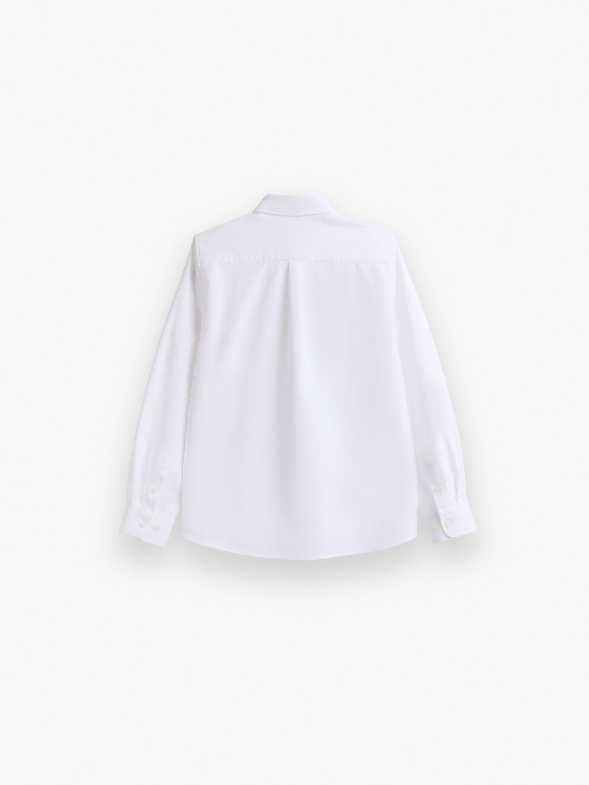 Camisa de corte regular fit con cuello clásico de botón, manga larga con puños simples y logo de la marca grabado en el frontal al tono.