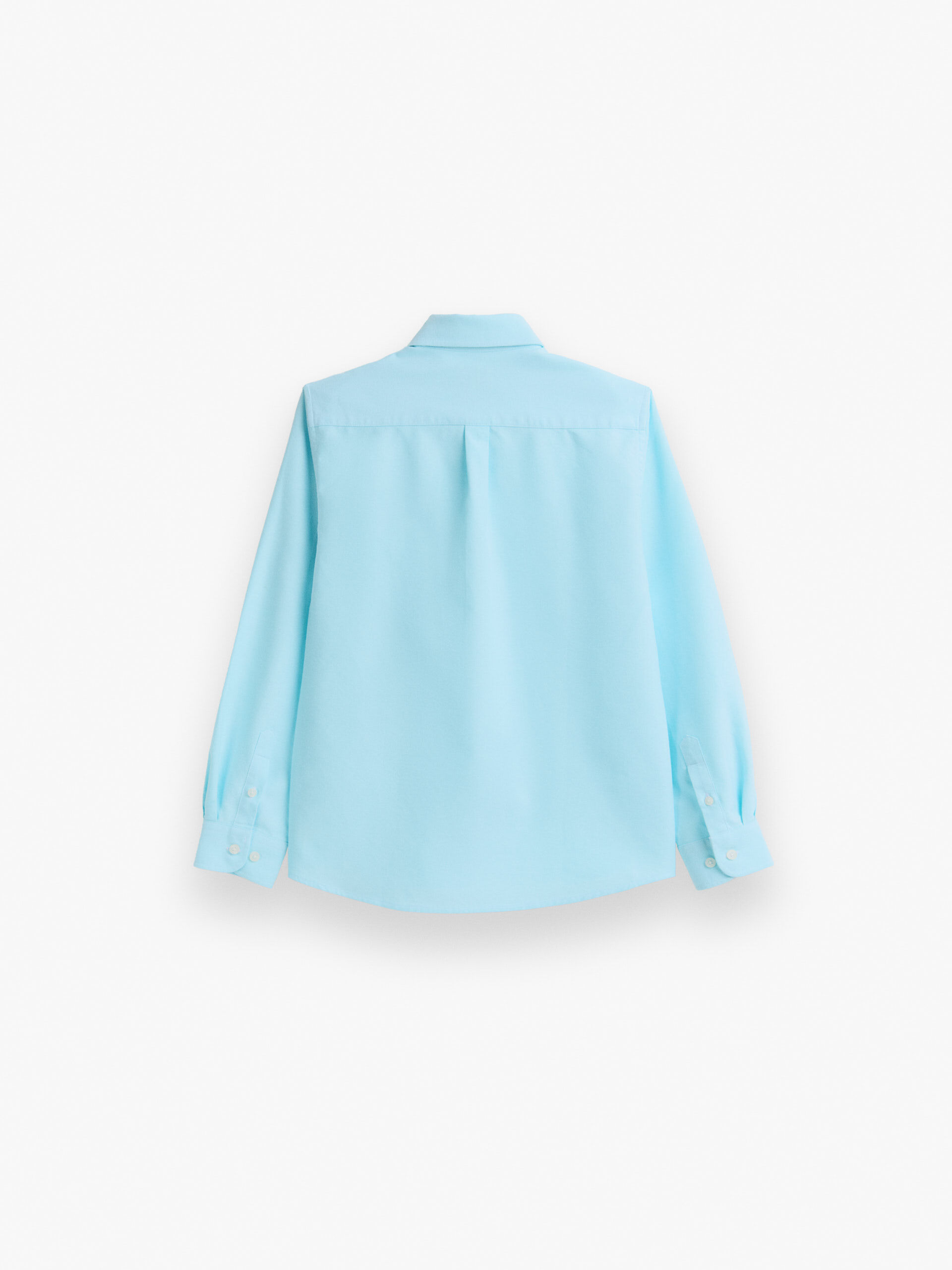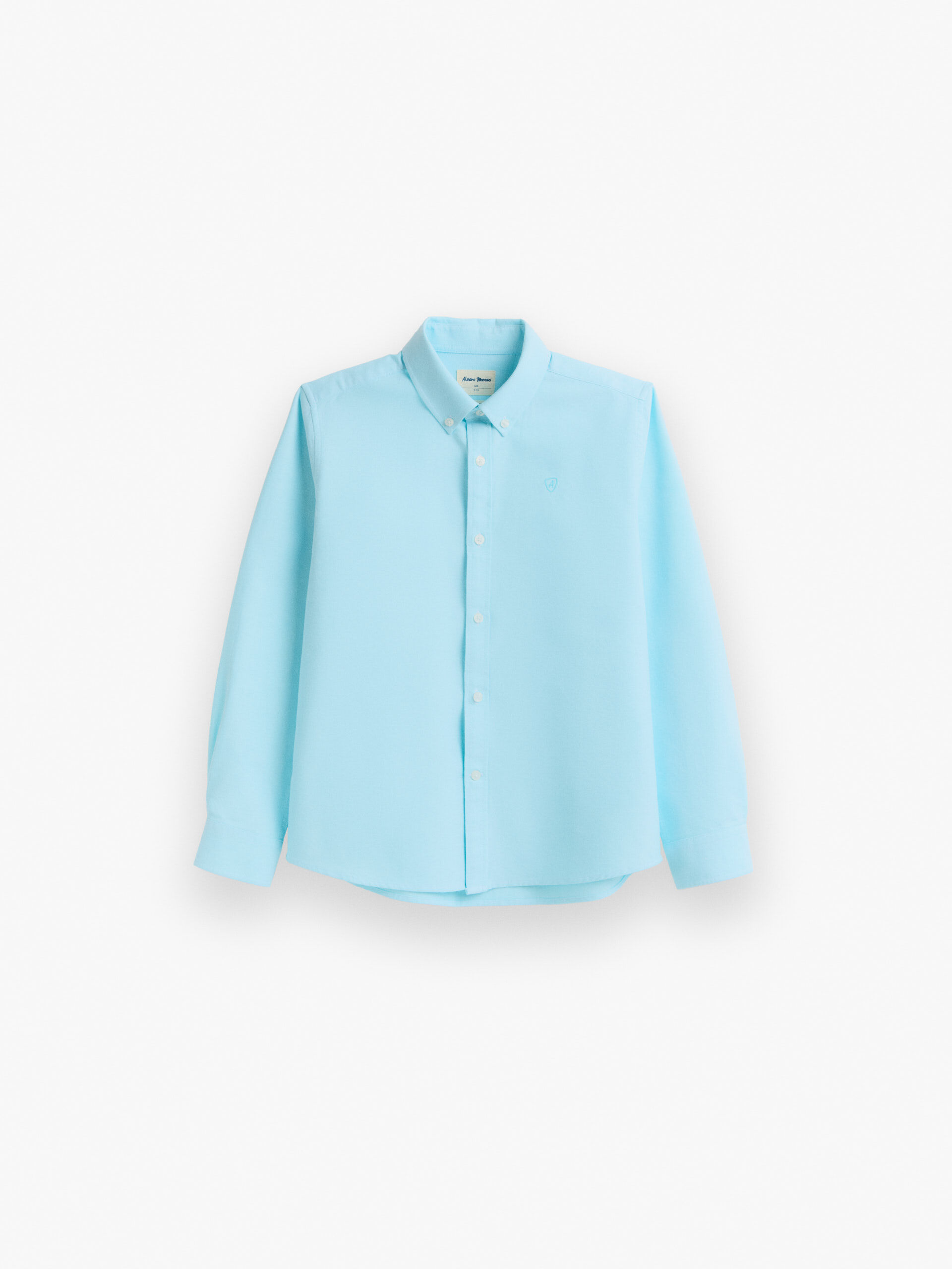 Camisa de corte regular fit con cuello clásico de botón, manga larga con puños simples y logo de la marca grabado en el frontal al tono.