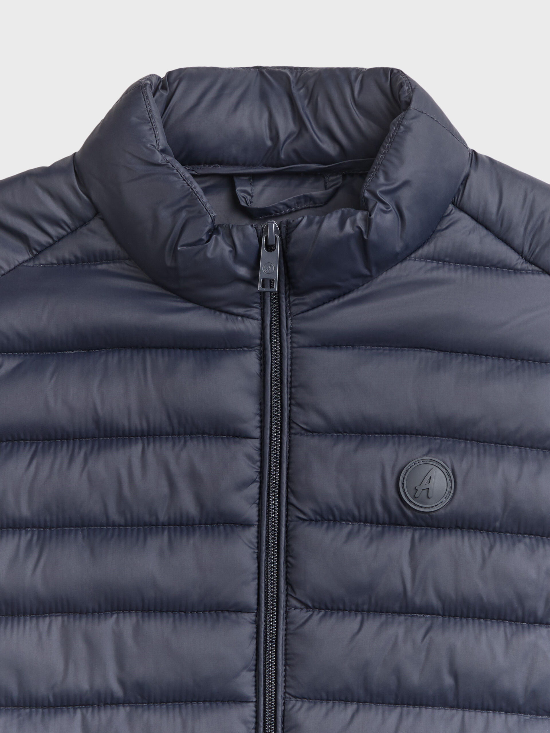 Chaleco acolchado de corte regular fit. Cuello subido, cierre central mediante cremallera, dos bolsillos a la altura de la cintura y logo de la marca grabado en el pecho. Elástico en la sisa y cintura. Bolsillo en el interior.