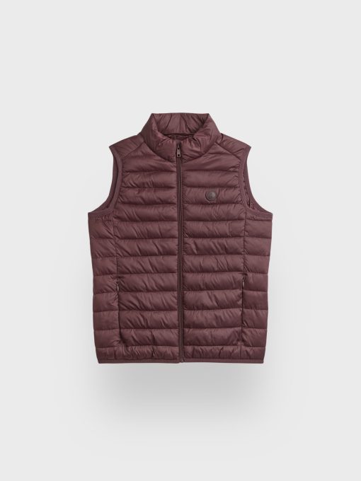 Chaleco acolchado de corte regular fit. Cuello subido, cierre central mediante cremallera, dos bolsillos a la altura de la cintura y logo de la marca grabado en el pecho. Elástico en la sisa y cintura. Bolsillo en el interior.