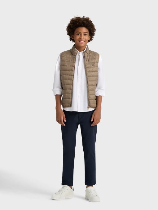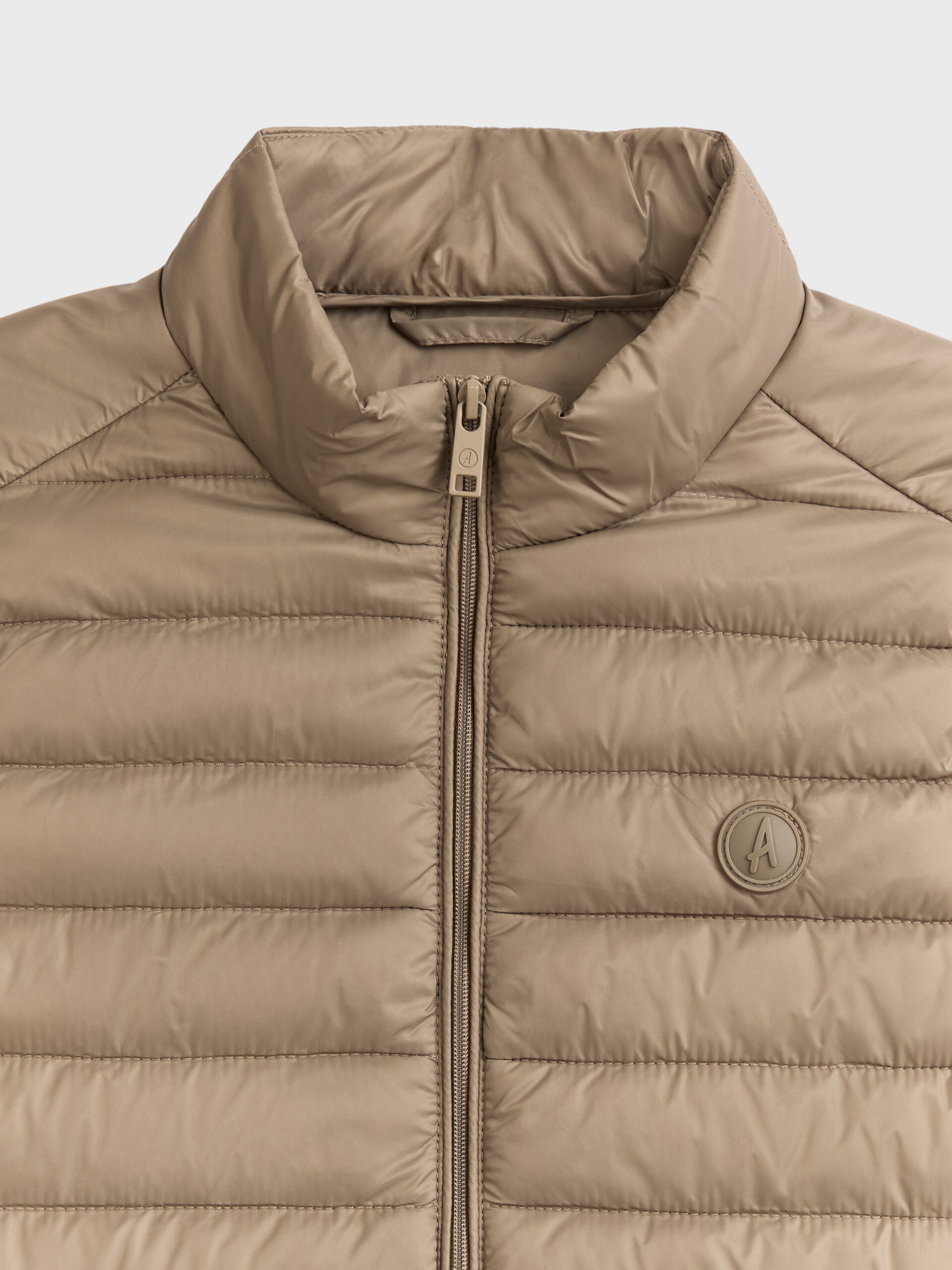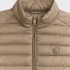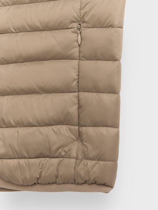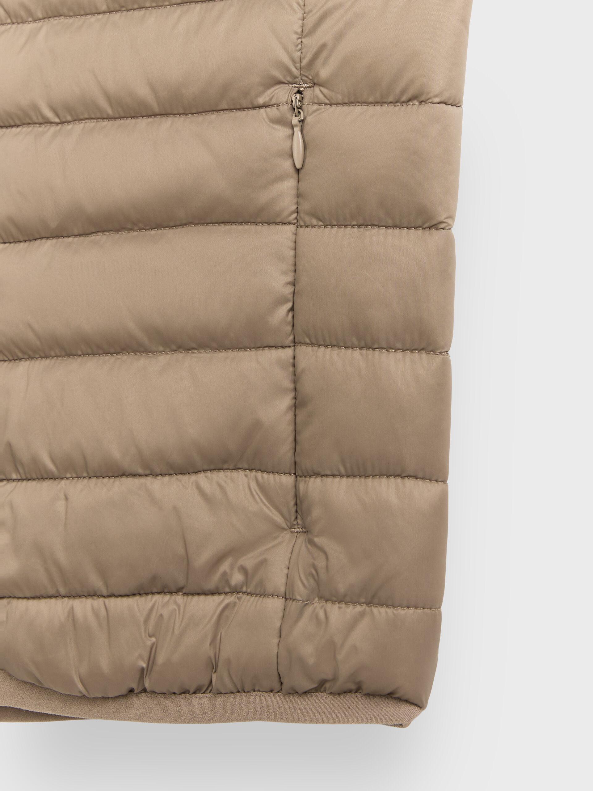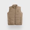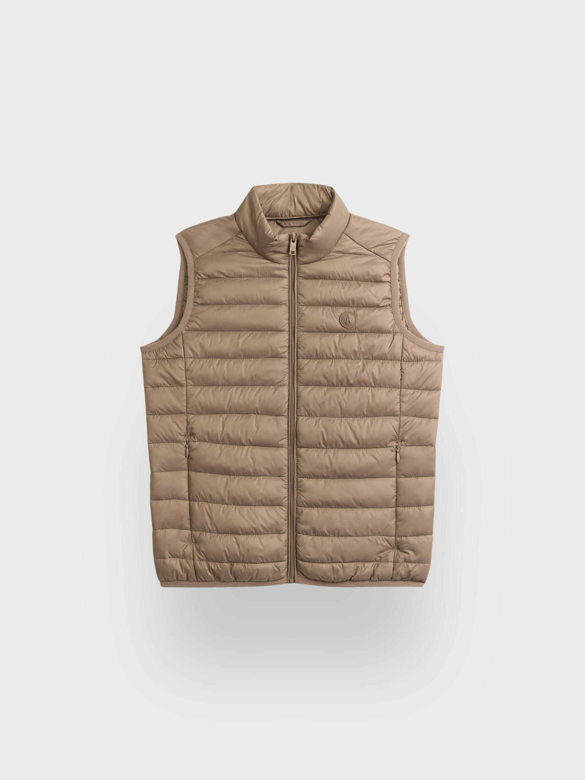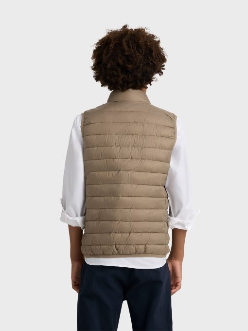 Chaleco acolchado de corte regular fit. Cuello subido, cierre central mediante cremallera, dos bolsillos a la altura de la cintura y logo de la marca grabado en el pecho. Elástico en la sisa y cintura. Bolsillo en el interior.