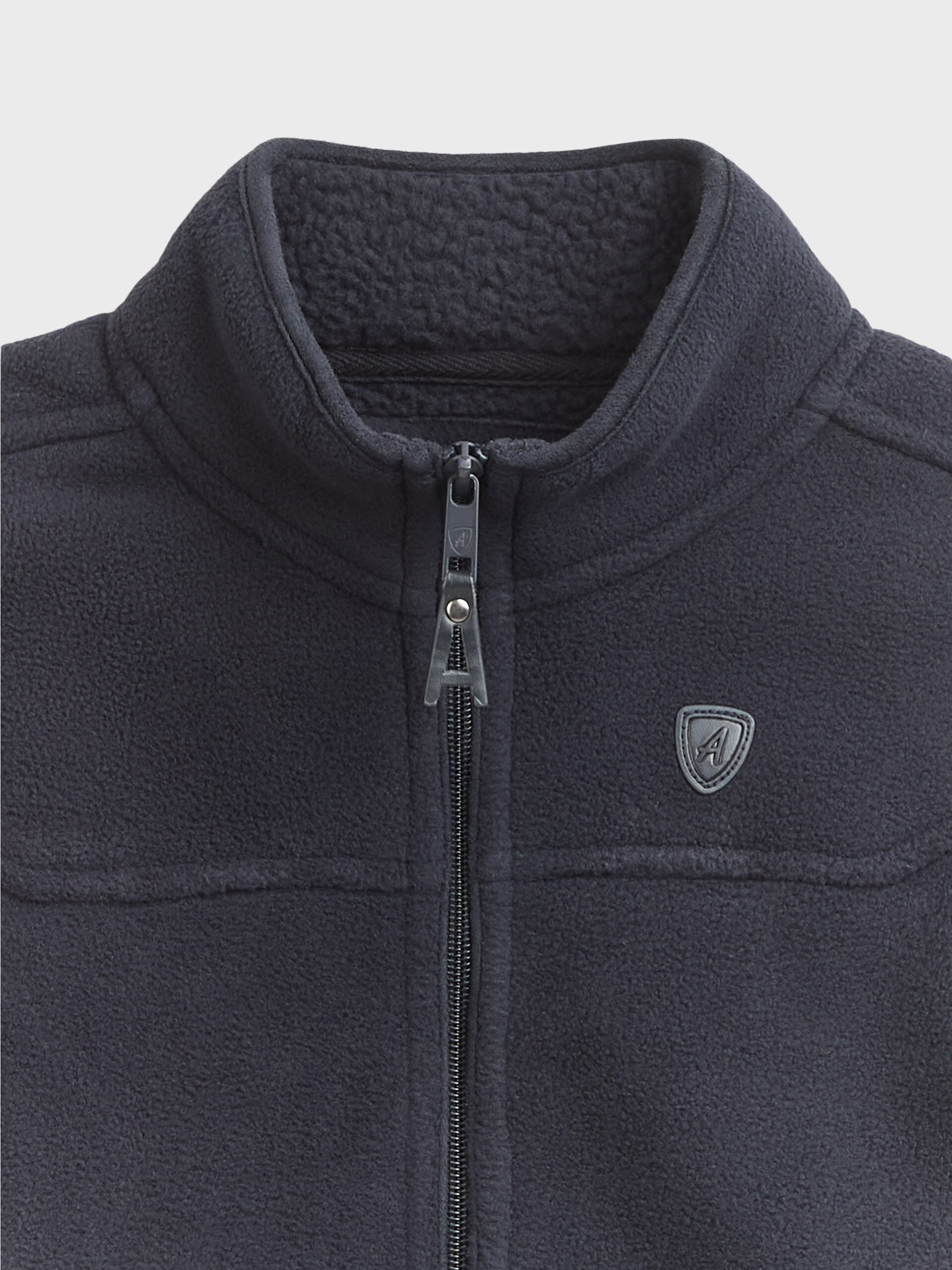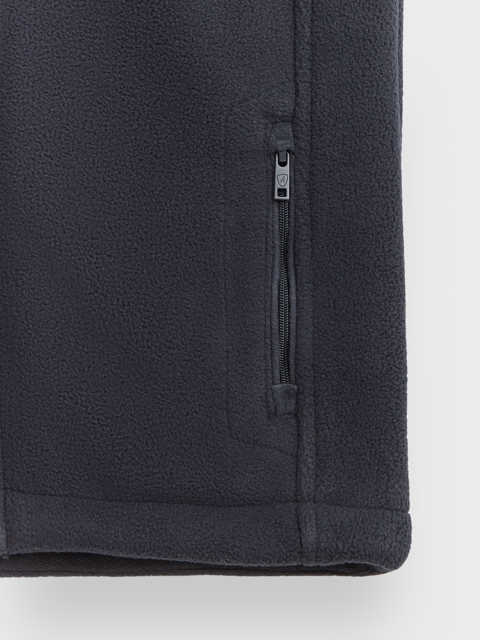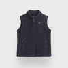 Chaleco confeccionado en tejido avivado en antelina en su exterior y forrado en su interior en borreguillo. Cuenta con cierre central mediante cremallera personalizada, dos bolsillos en su exterior y logo grabado en su frontal. Corte regular fit.