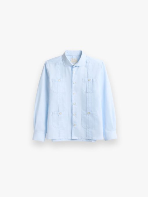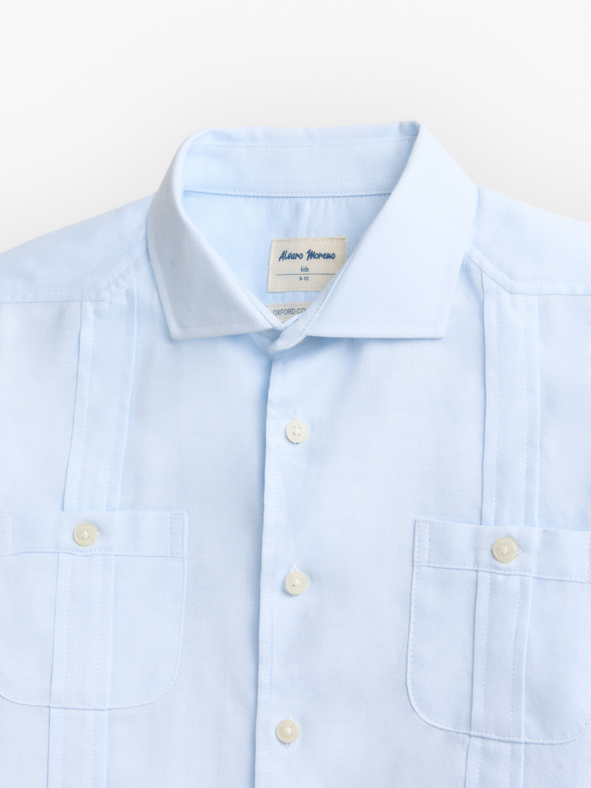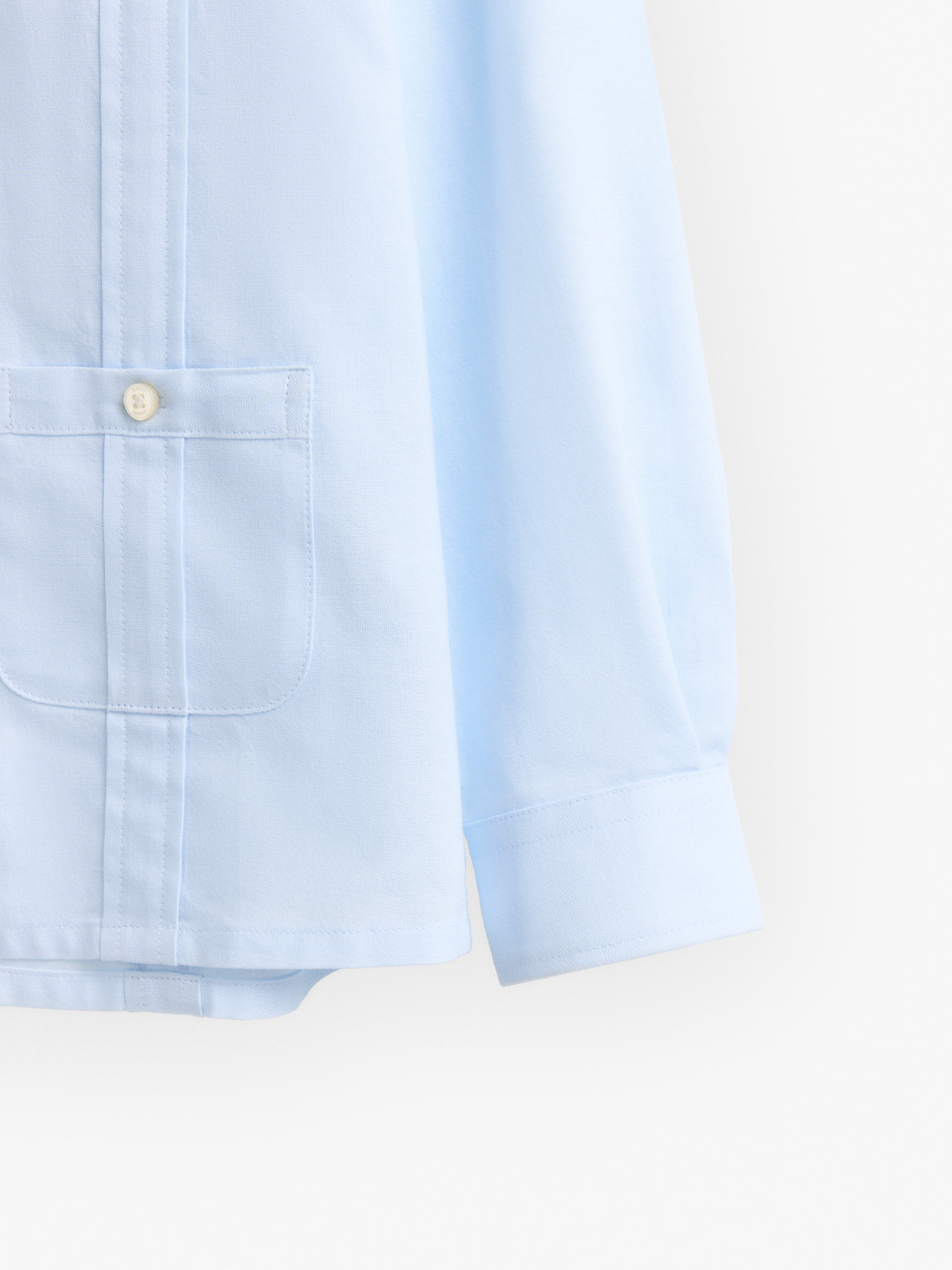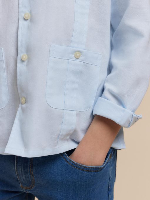 Camisa estilo cubana con cuatro bolsillos en el frontal confeccionada en algodón. Cuello de solapa, manga larga con terminación de botones y abertura en el bajo con cierre de botón. Corte regular fit.