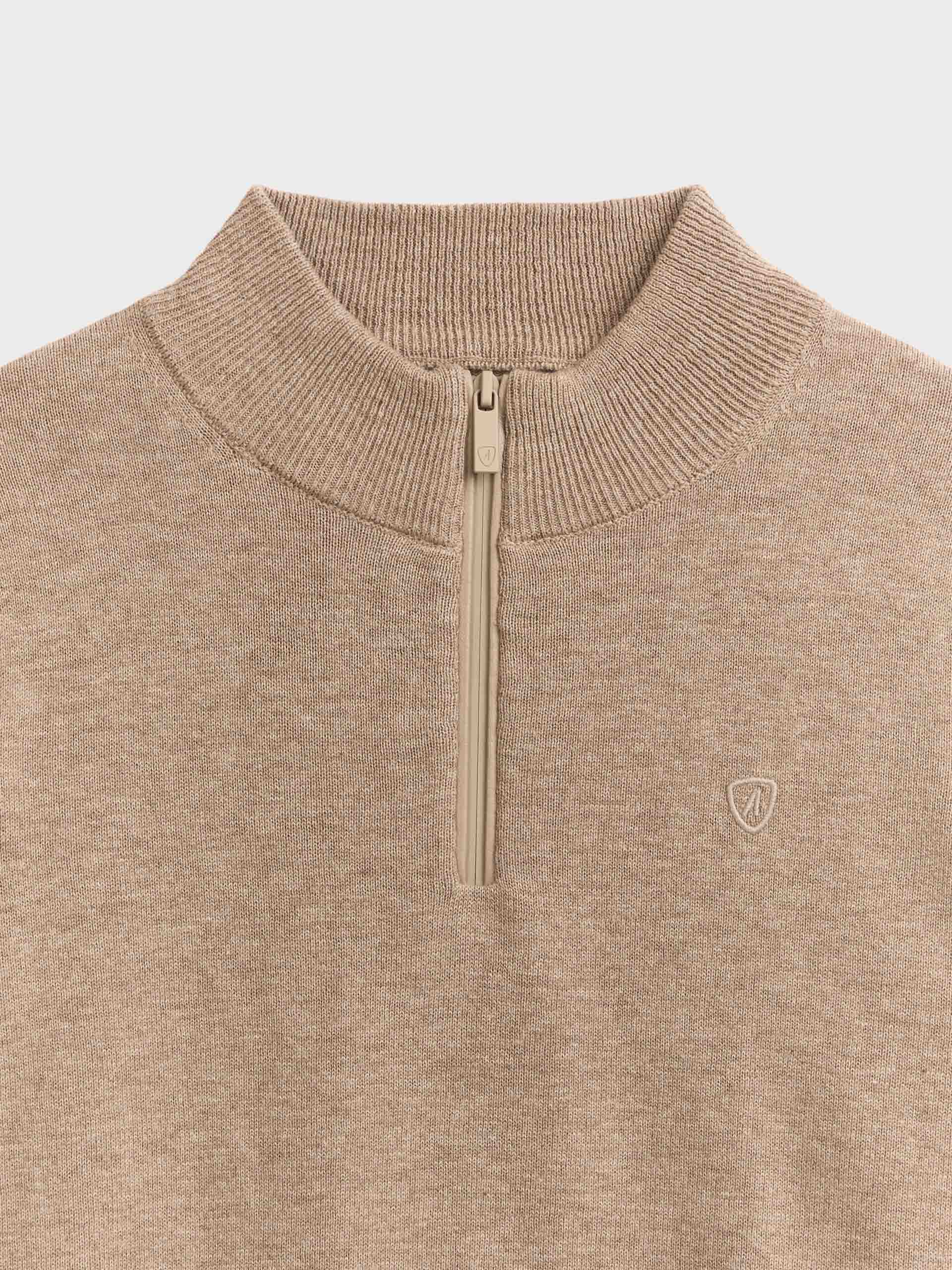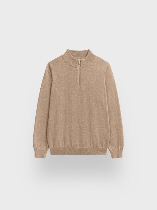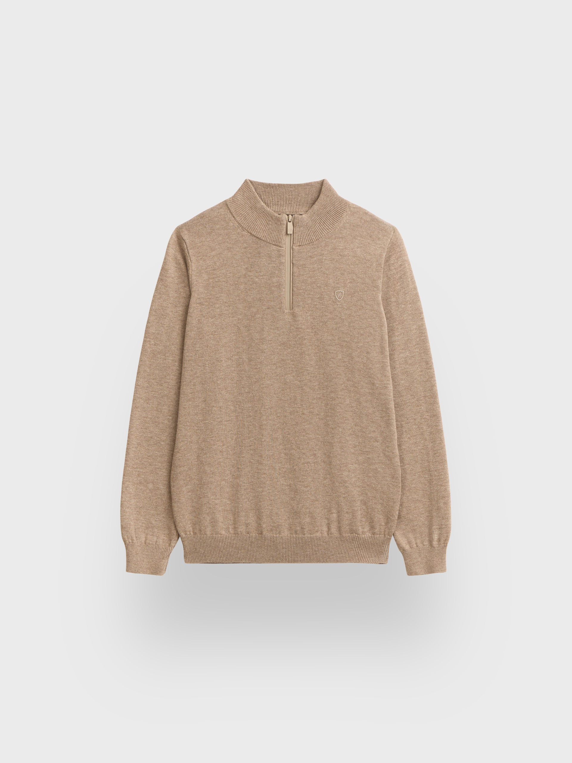 Jersey de corte regular con cuello alto de medio cierre mediante cremallera. Confeccionado en algodón, logo bordado en el frontal al tono y cuello, puños y bajo en acabado ribeteado.