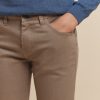 Pantalón de corte slim fit con 5 bolsillos. Cierre delantero mediante cremallera y botón, dos bolsillos tipo parche en la parte trasera con etiqueta en efecto piel sobre uno de ellos y fornituras personalizadas.