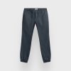 Pantalón con cinturilla elástica ajustable por cordones al tono y bajo con terminación de puño elástico. Cierre central mediante botón y cremallera, dos bolsillos en la parte delantera y dos en la parte trasera con detalle personalizado sobre uno de ellos.