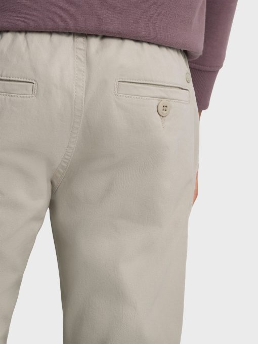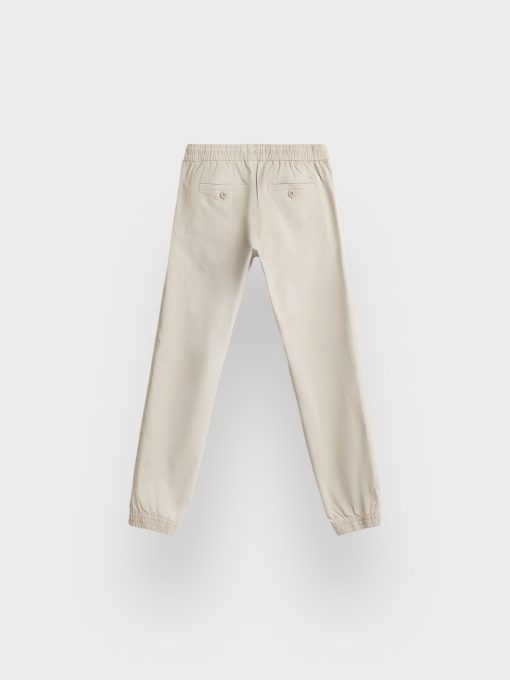 Pantalón con cinturilla elástica ajustable por cordones al tono y bajo con terminación de puño elástico. Cierre central mediante botón y cremallera, dos bolsillos en la parte delantera y dos en la parte trasera con detalle personalizado sobre uno de ellos.